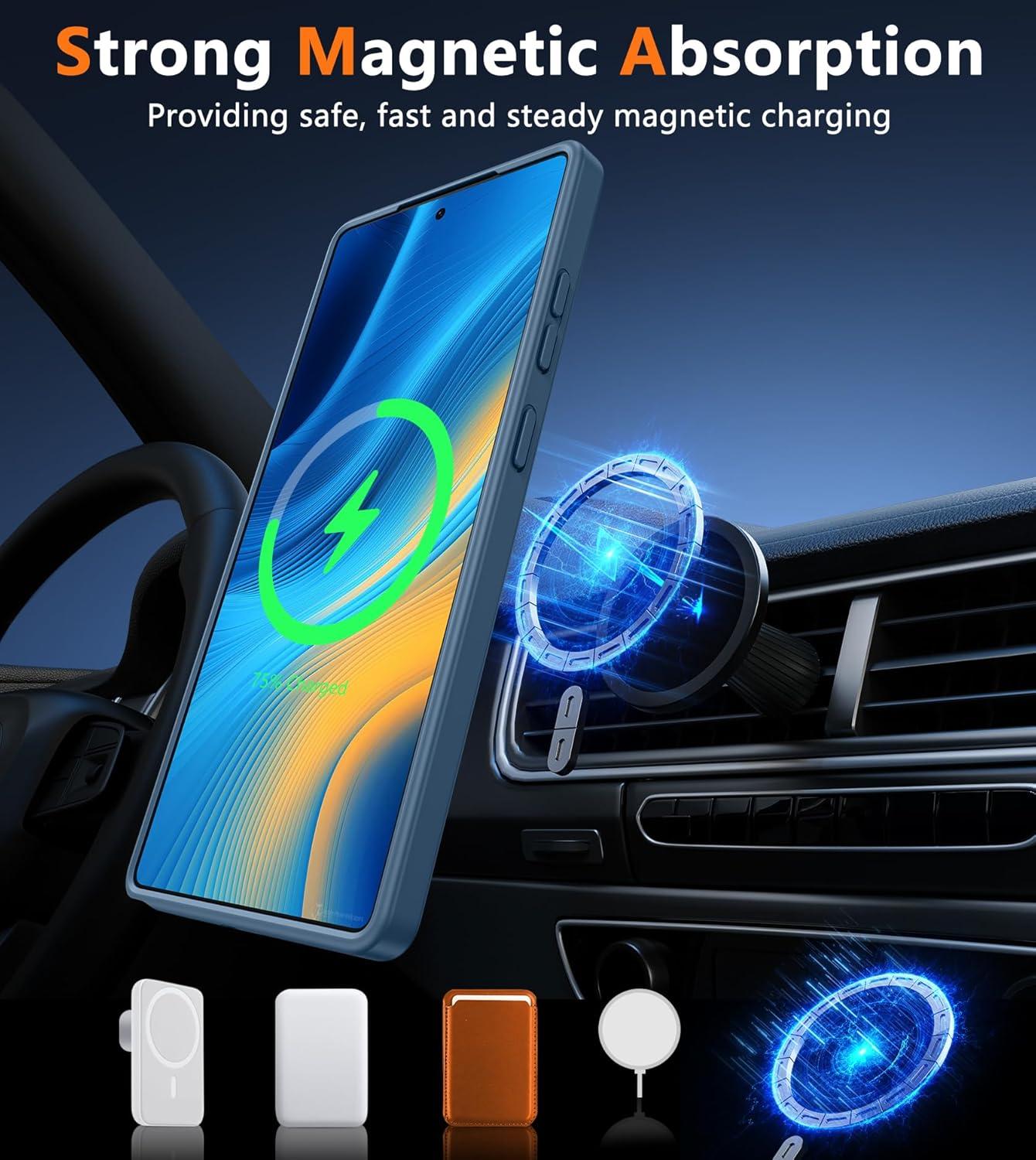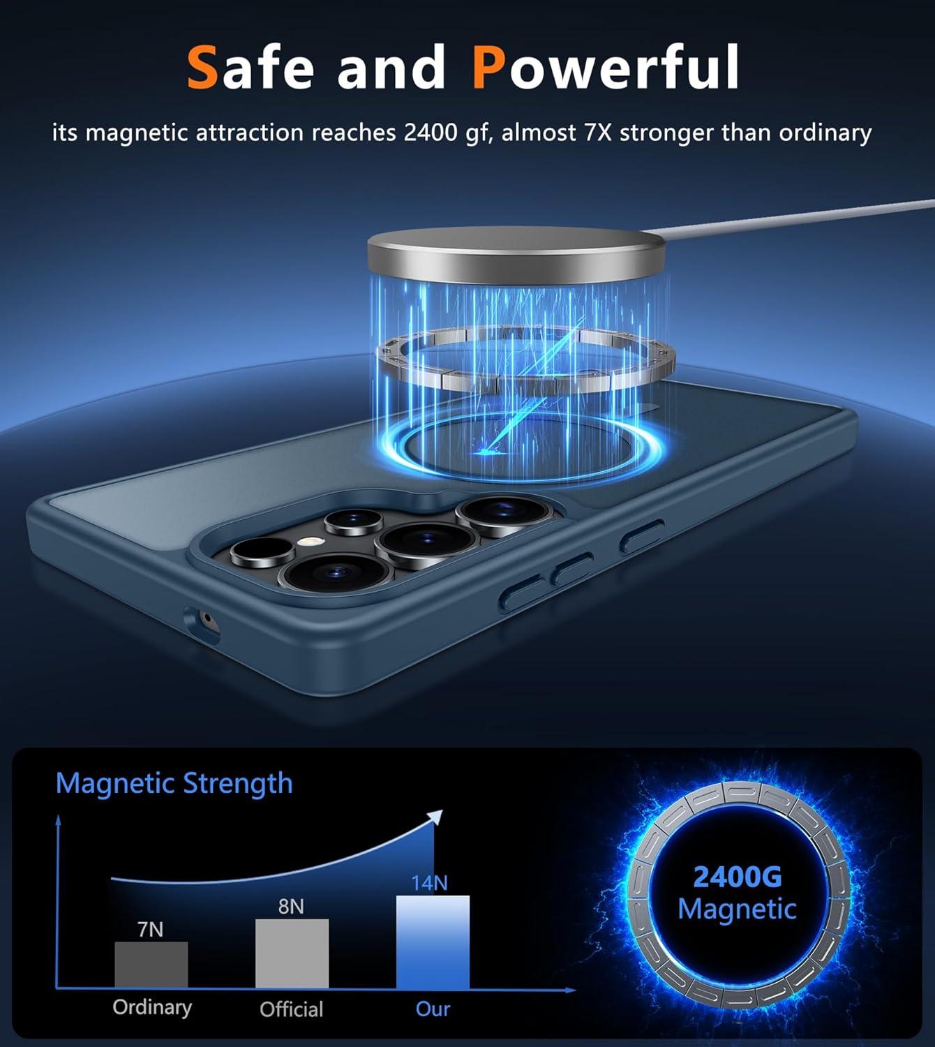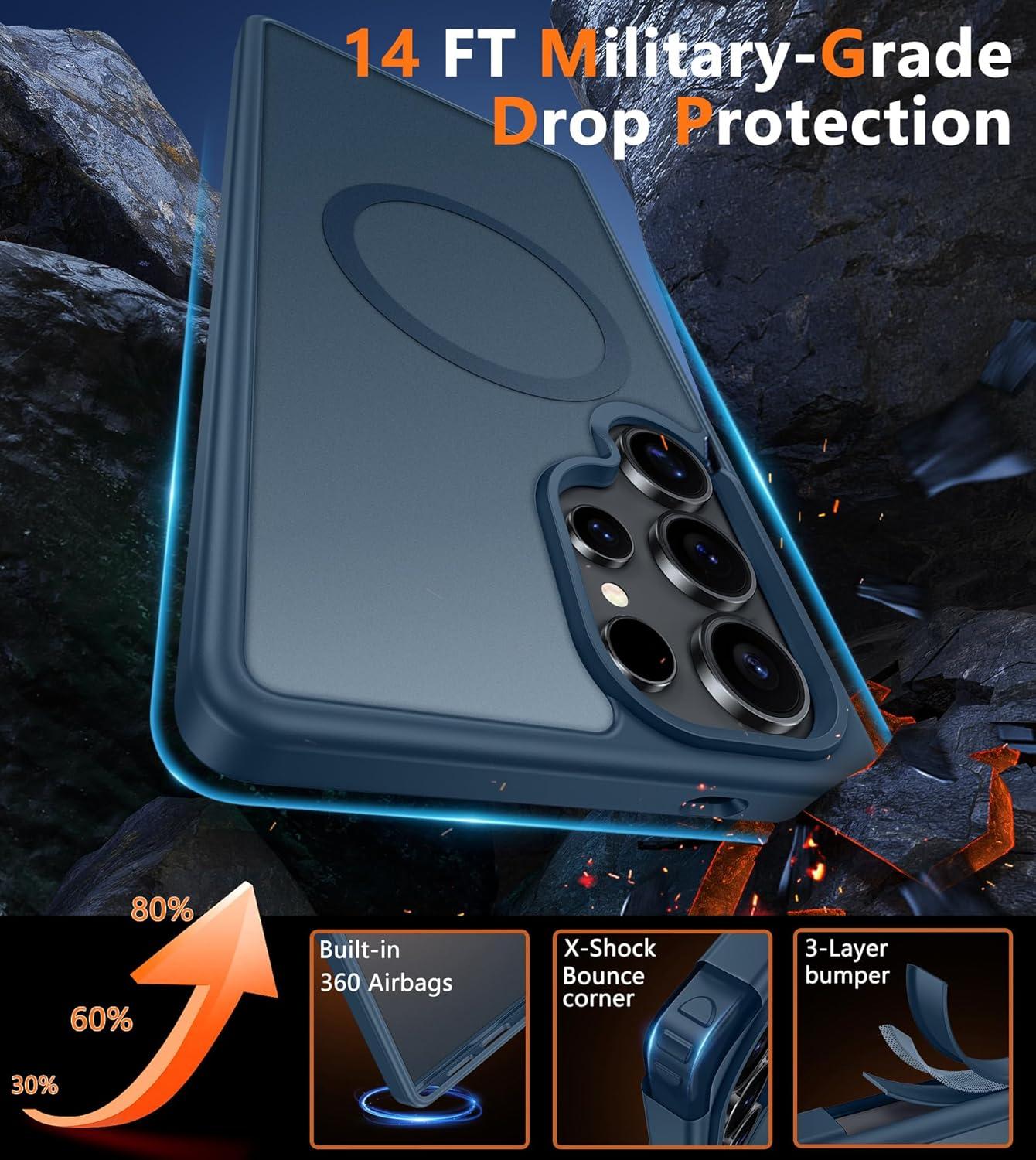 • FNTCASE for Samsung Galaxy S25 Case: Magnetic Matte Textured Military Grade Drop Protection Translucent Cell Phone Cover – Slim Rugged Durable Shockproof Protective Bumper Cases- 6.2 inches(Black)(Blue Matte)