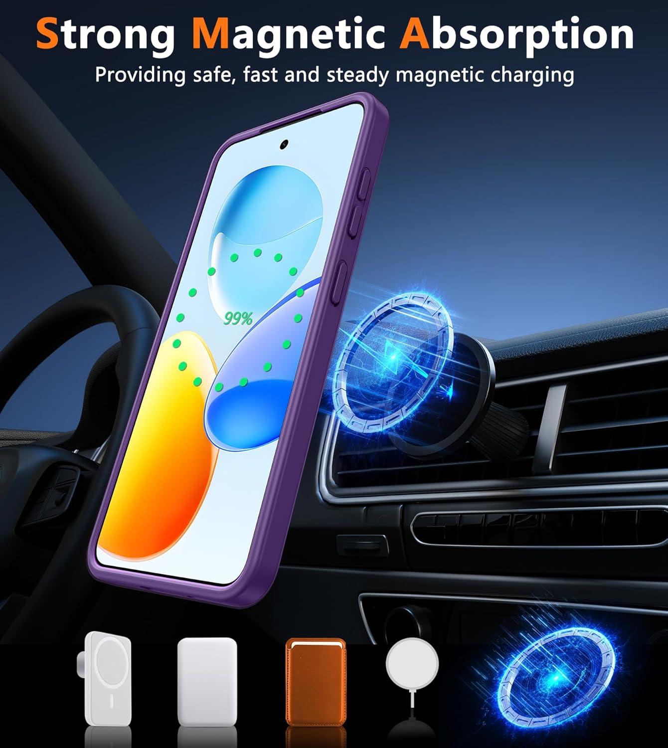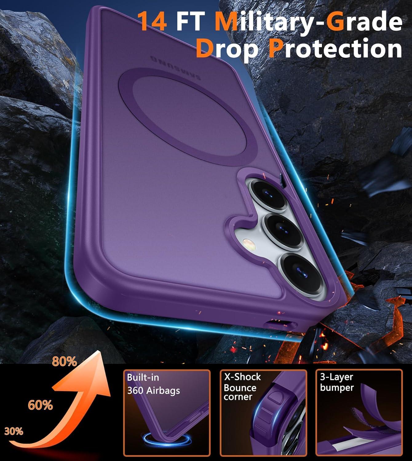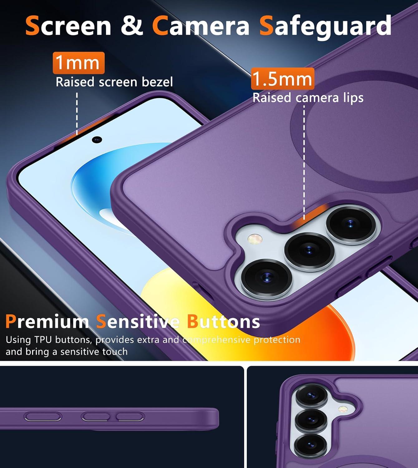 • FNTCASE for Samsung Galaxy S25 Case: Magnetic Matte Textured Military Grade Drop Protection Translucent Cell Phone Cover – Slim Rugged Durable Shockproof Protective Bumper Cases- 6.2 inches(Black)(Purple)