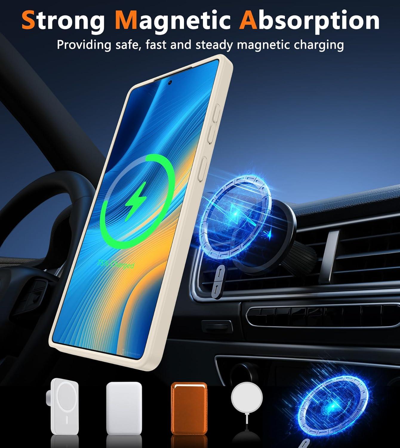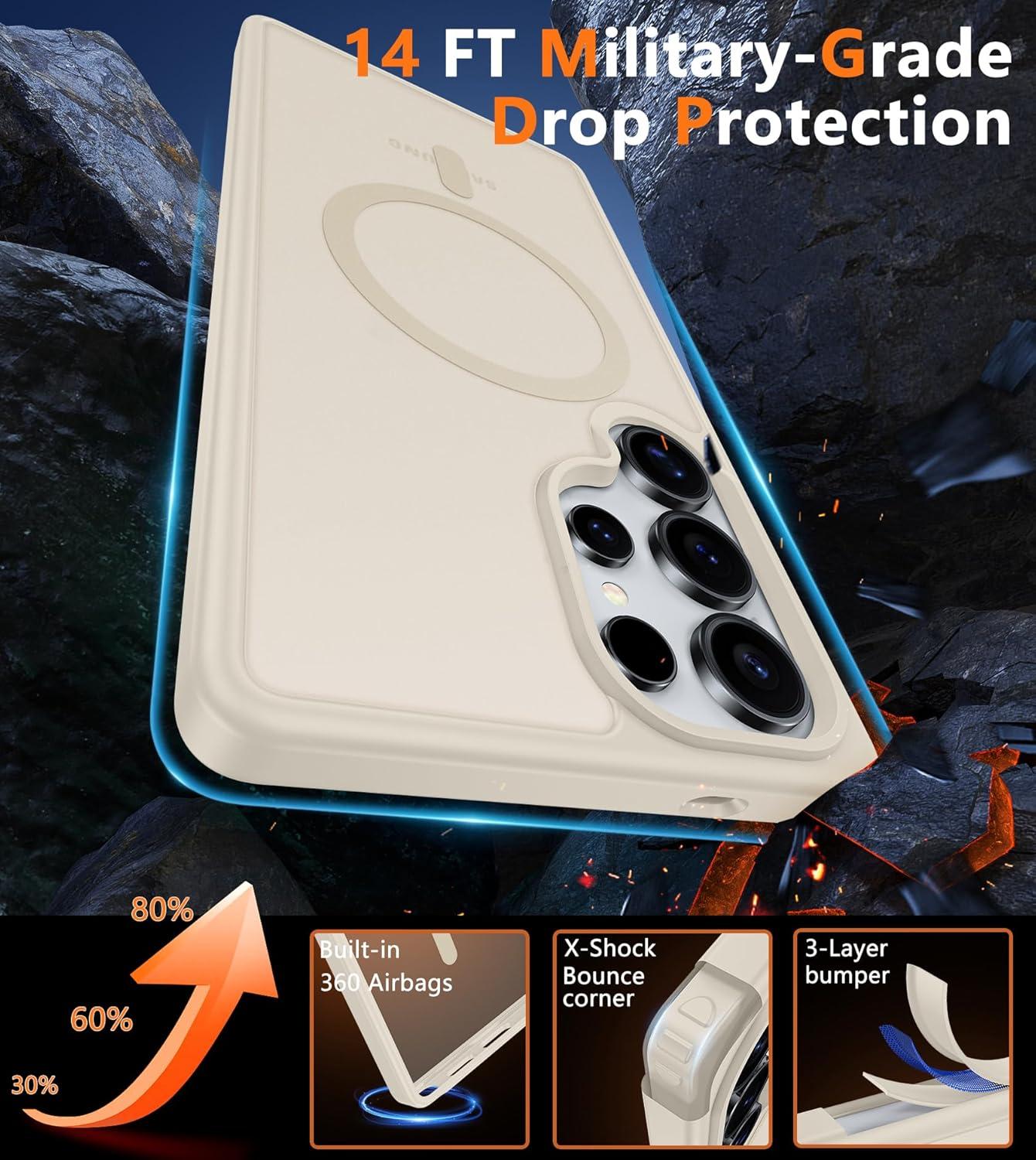 • FNTCASE for Samsung Galaxy S25 Case: Magnetic Matte Textured Military Grade Drop Protection Translucent Cell Phone Cover – Slim Rugged Durable Shockproof Protective Bumper Cases- 6.2 inches(Black)(Apricot)