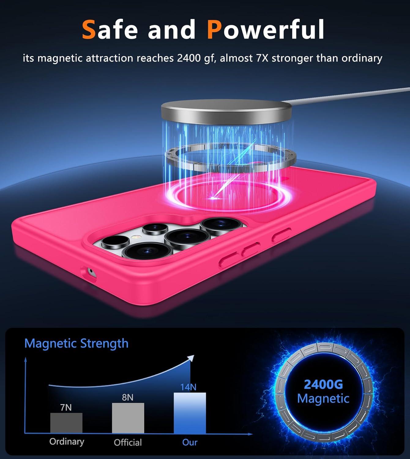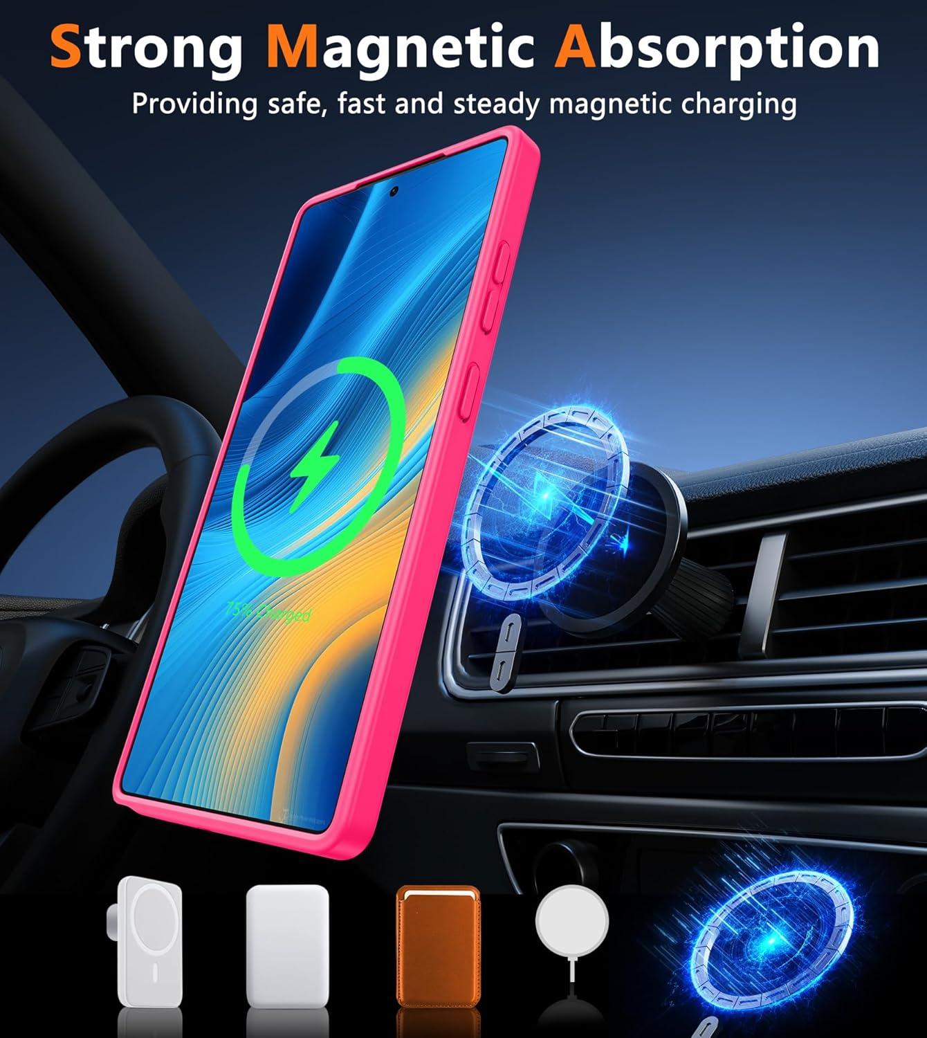 • FNTCASE for Samsung Galaxy S25 Case: Magnetic Matte Textured Military Grade Drop Protection Translucent Cell Phone Cover – Slim Rugged Durable Shockproof Protective Bumper Cases- 6.2 inches(Black)(Hot Pink)