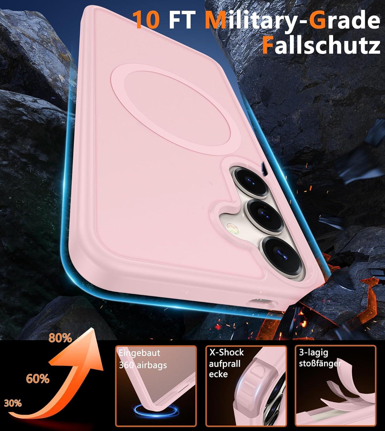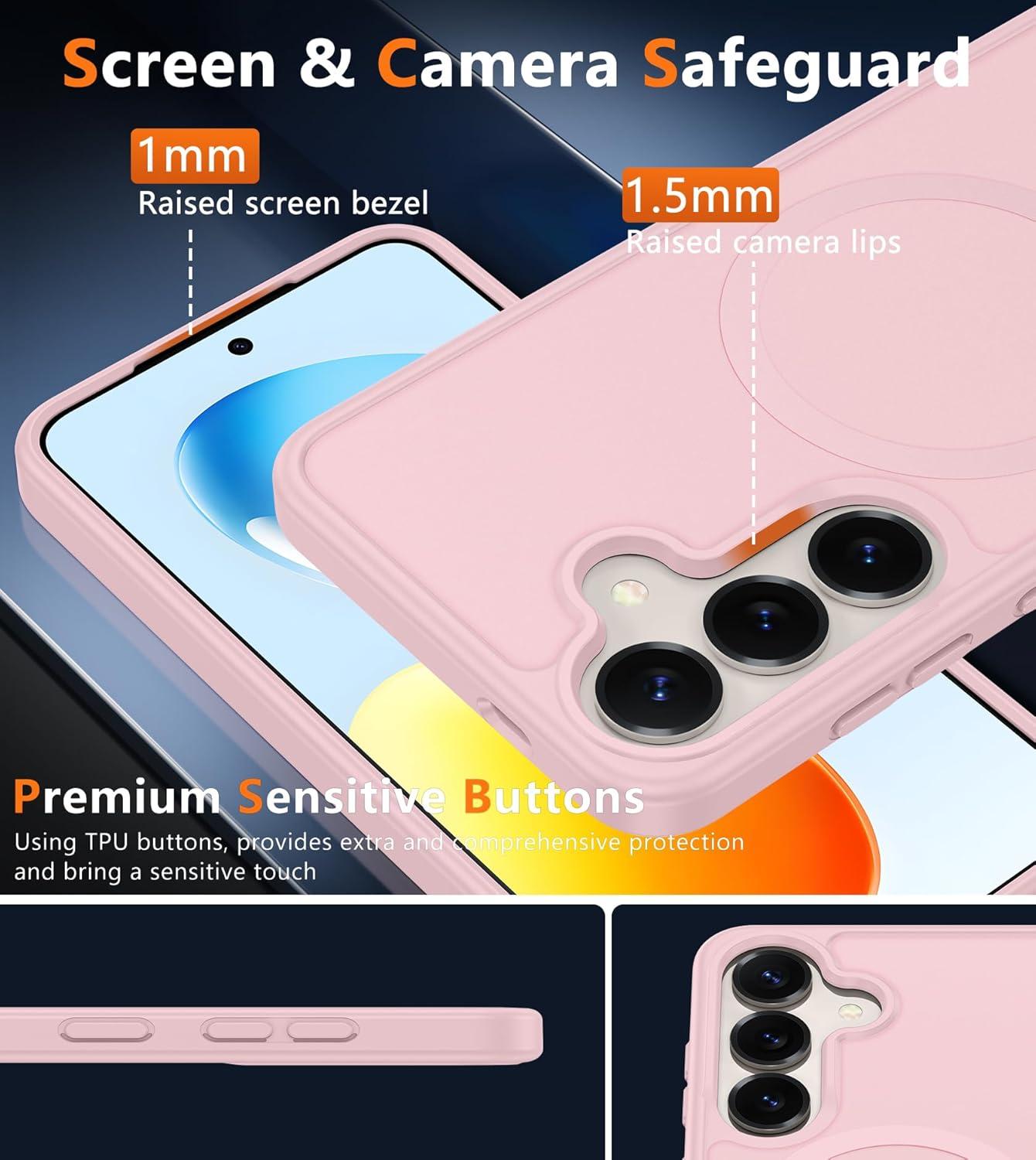 • FNTCASE for Samsung Galaxy S25 Case: Magnetic Matte Textured Military Grade Drop Protection Translucent Cell Phone Cover – Slim Rugged Durable Shockproof Protective Bumper Cases- 6.2 inches(Black)(Pink Matte)