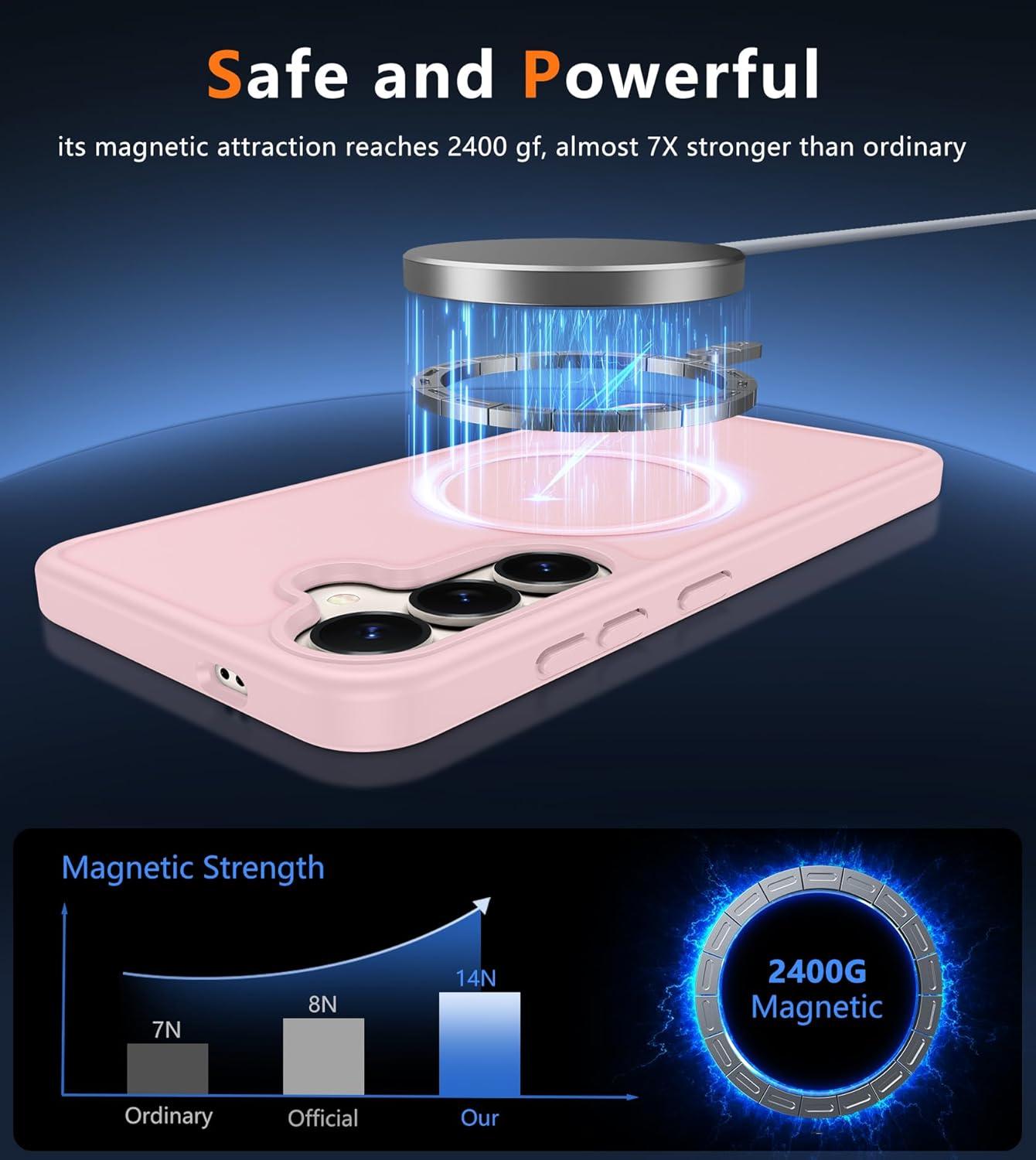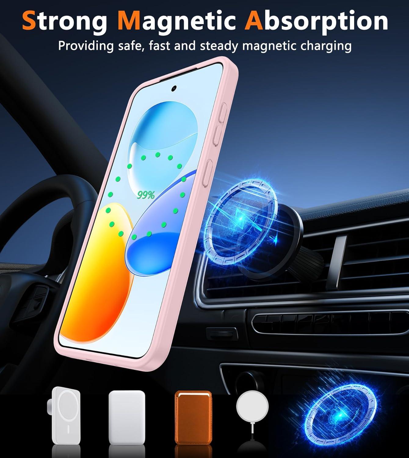 • FNTCASE for Samsung Galaxy S25 Case: Magnetic Matte Textured Military Grade Drop Protection Translucent Cell Phone Cover – Slim Rugged Durable Shockproof Protective Bumper Cases- 6.2 inches(Black)(Pink)
