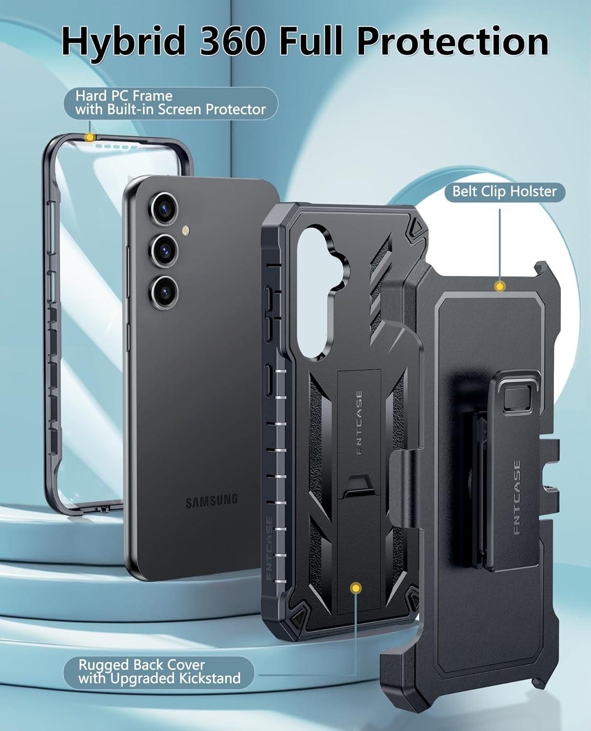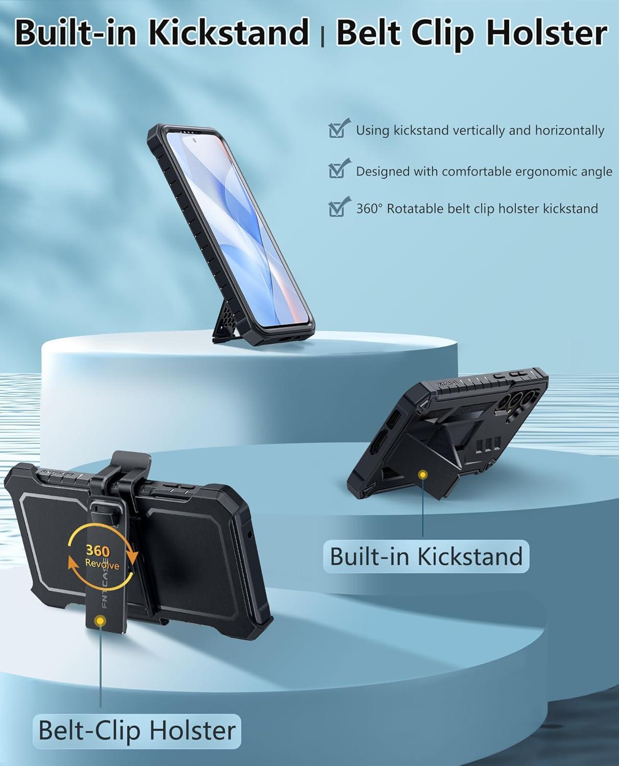 • FNTCASE for Samsung Galaxy S25-Edge Case: Military Grade Rugged Cell Phone Cover with Kickstand & Belt Clip Holster | Shockproof TPU Protection Bumper Matte Textured | Heavy Duty Protector (Black)(Black)