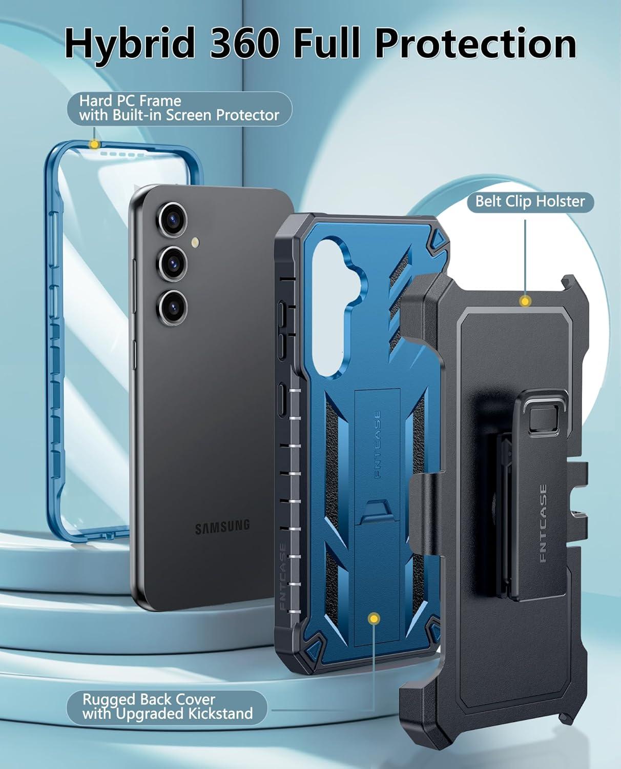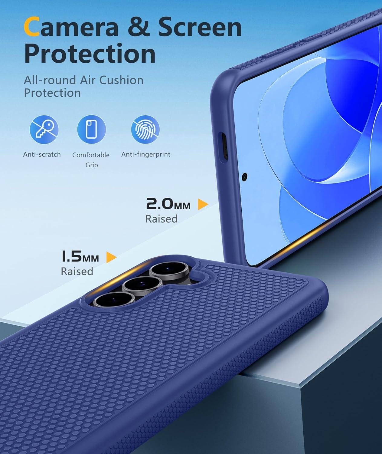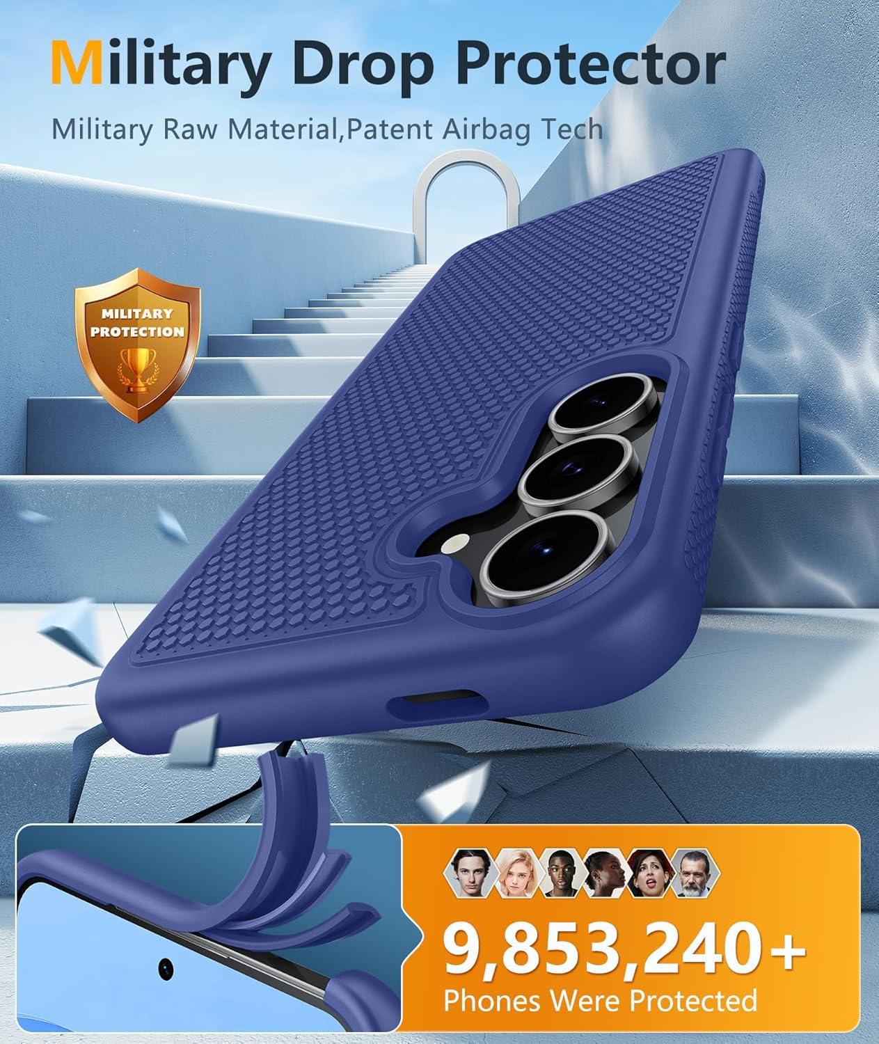 • FNTCASE for Samsung Galaxy S25 FE Case: Shockproof Protective Lightweight with Screen Protector Duty Rugged Cell Phone Cover Non Slip, Military Grade Drop Protection for S25FE(Navy Blue)