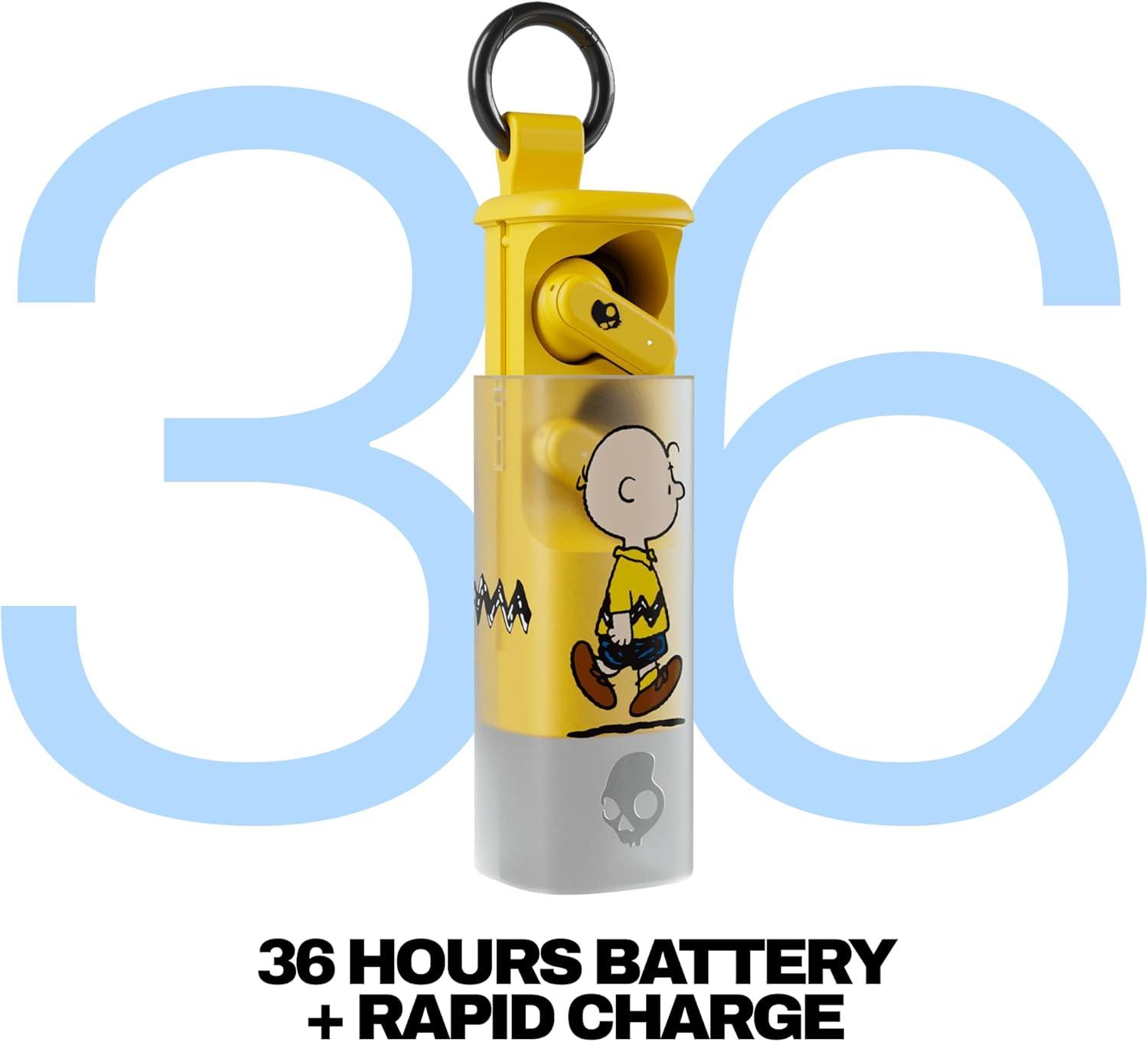 Skullcandy Dime Evo Wireless Earbuds, Bluetooth Headphones, Noise Isolating Fit, Up to 36 Hours Battery, Microphone for iPhone Android, Easy Carry with Clip-Anywhere Case – Preppy Sage(Peanuts Charlie Brown)