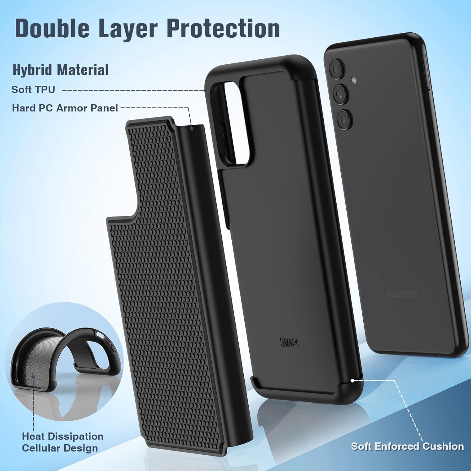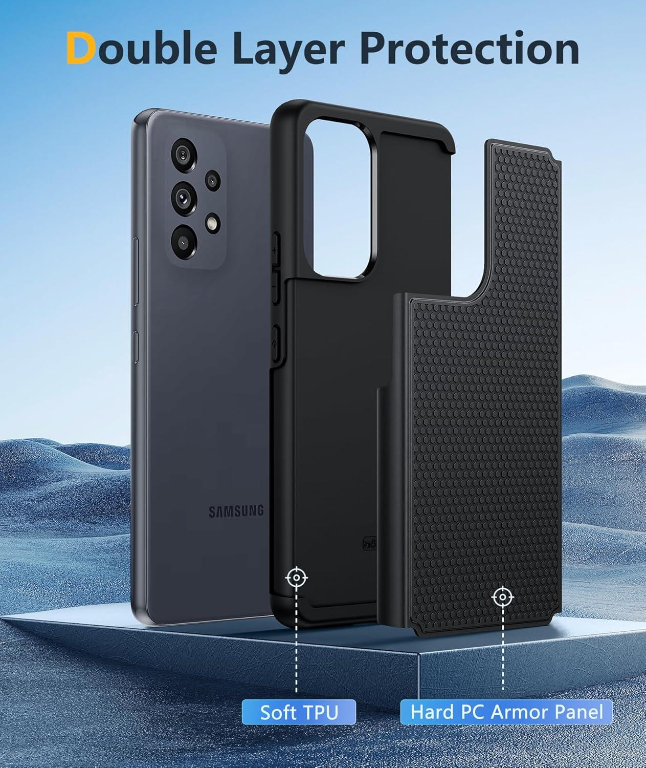 BNIUT for Samsung Galaxy A53-5G Phone Case: Dual Layer Protective Heavy Duty Cell Phone Cover Shockproof Rugged with Non Slip Textured Back – Military Protection – 6.5inch (Matte Black)(Black)