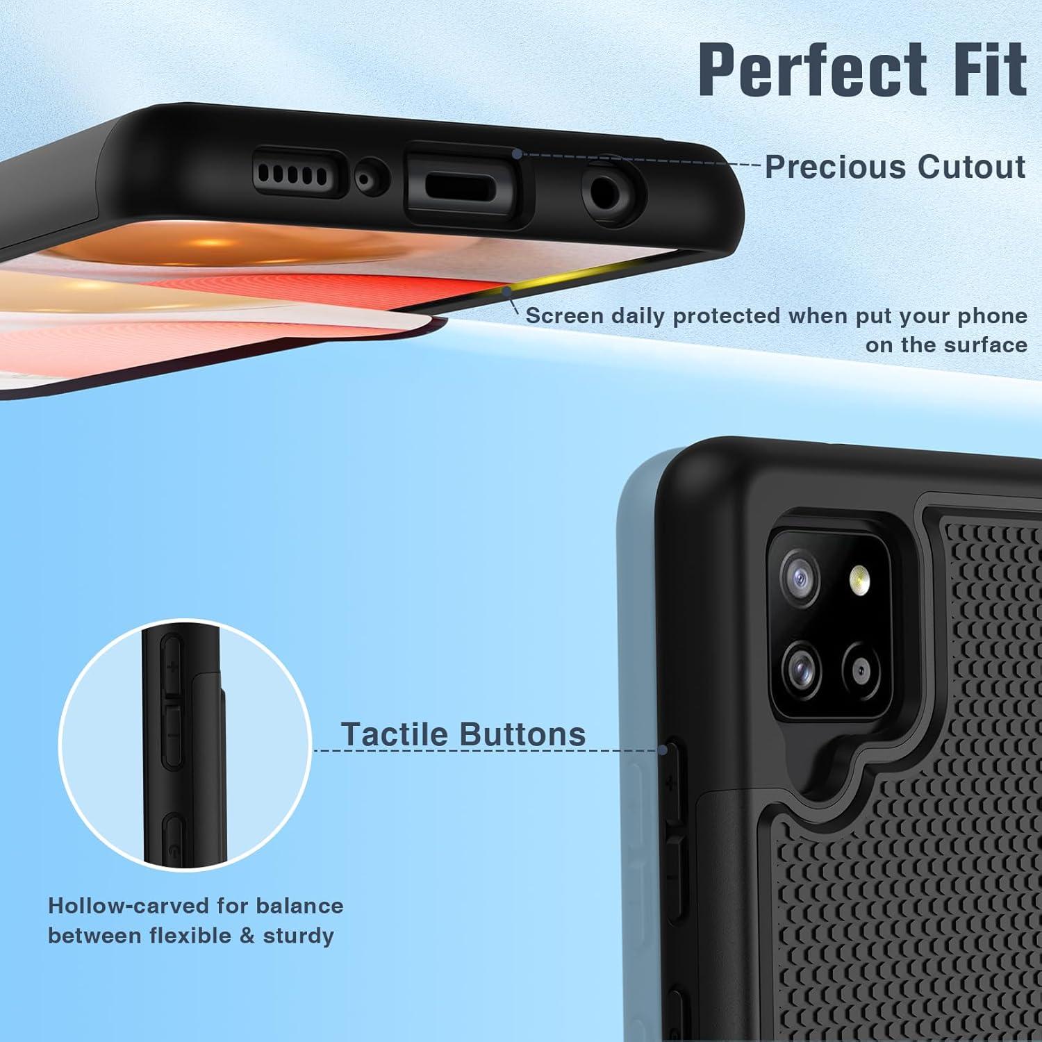 Two Piece Durable Hybrid Cases: soft TPU inner cases – shock absorbing; hard PC back outer shell – strong impact resistant. Double guard protection with reinforced corner, specially designed to protect your Samsung Galaxy A53 5G & Samsung Galaxy A53 5G UW
