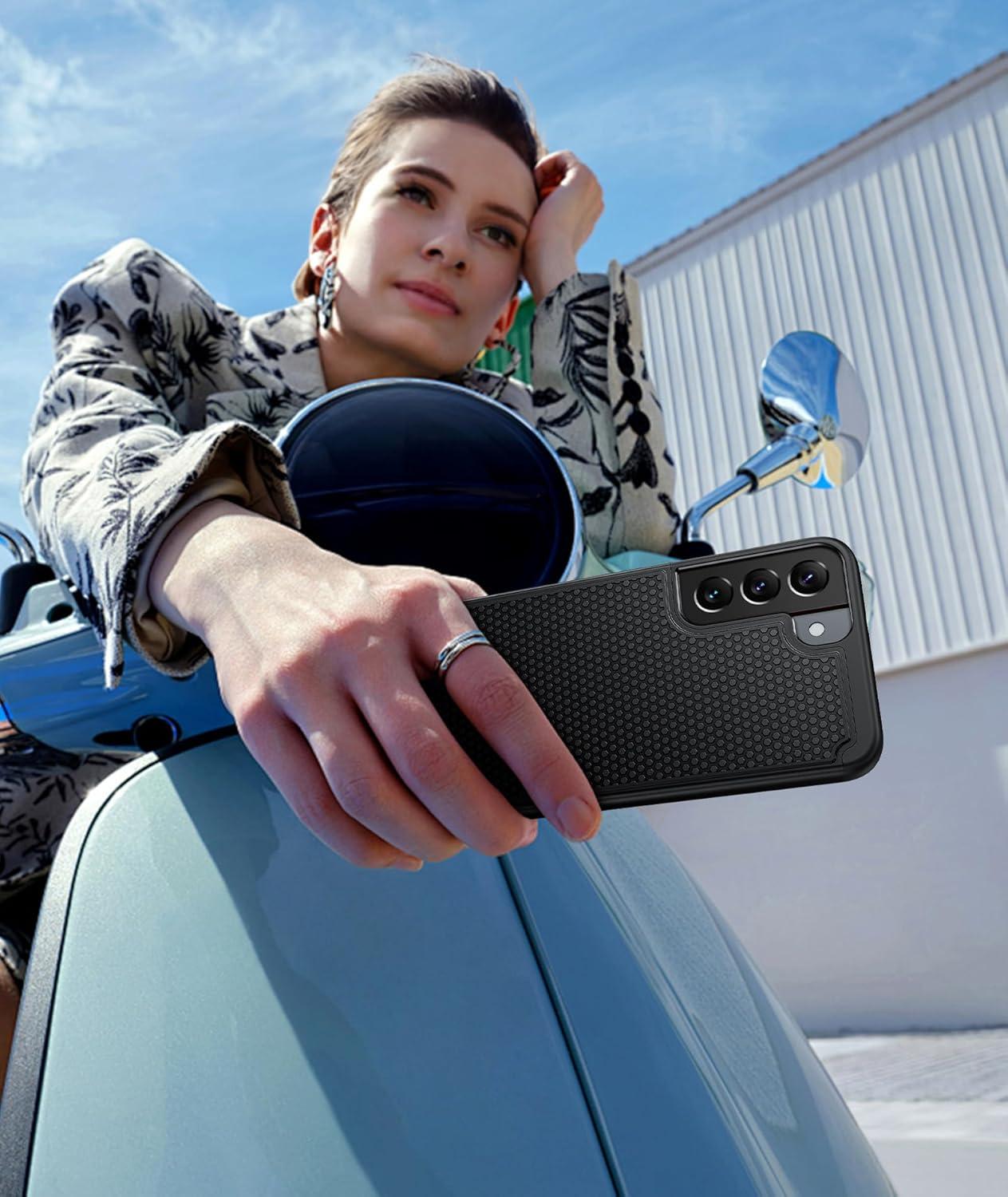 Slip Proof Texture Design: sturdy armored phonecase with hexagon grip rear shield prevent your smartphone from unexpected drop. Also, simple classic & stylish