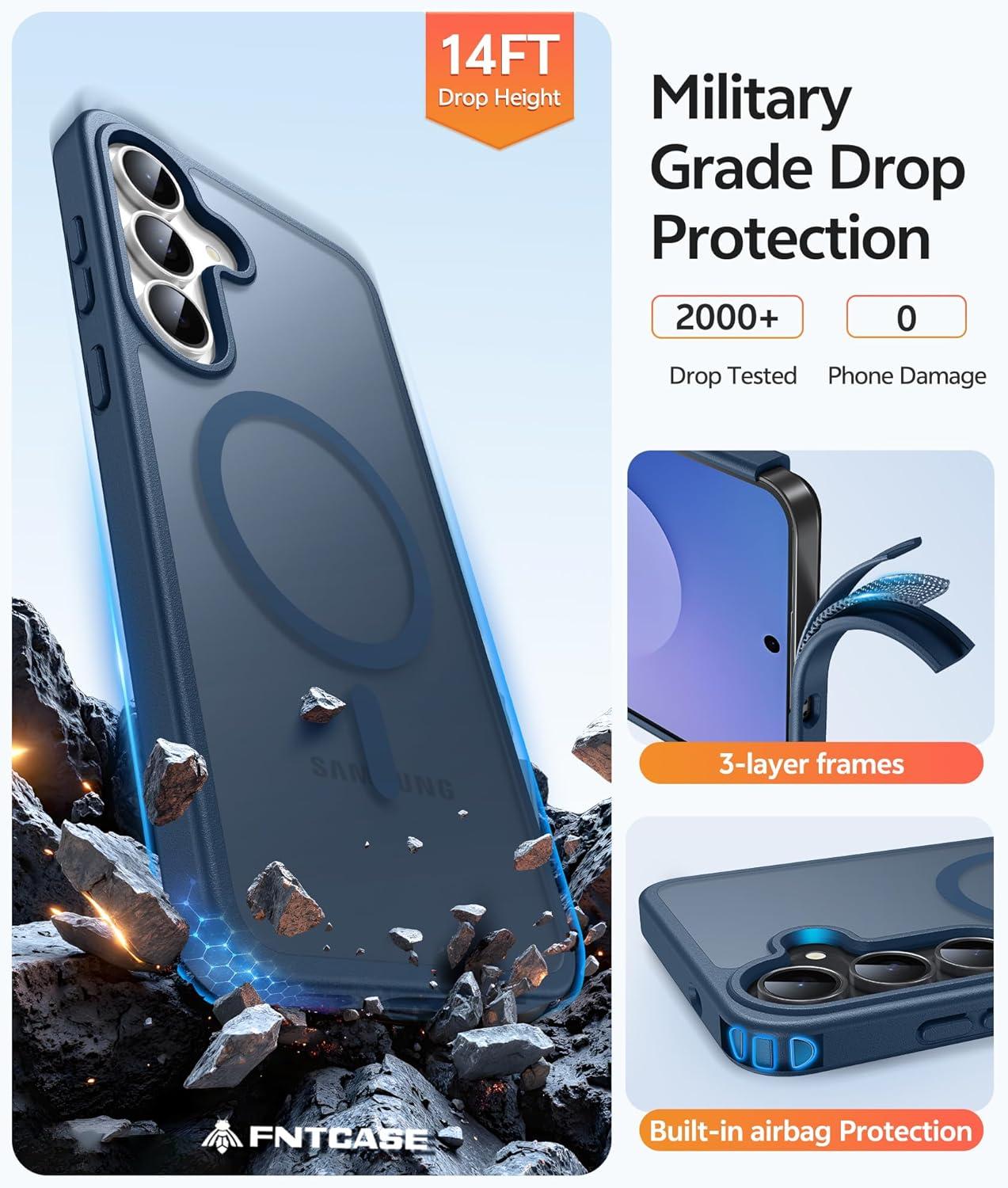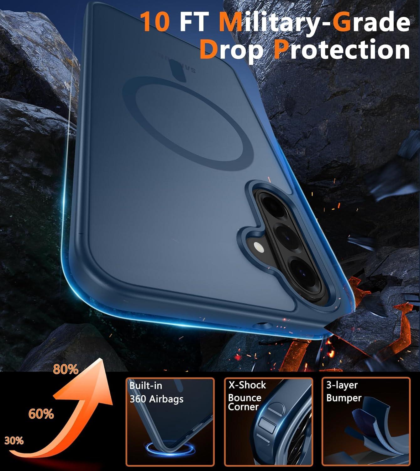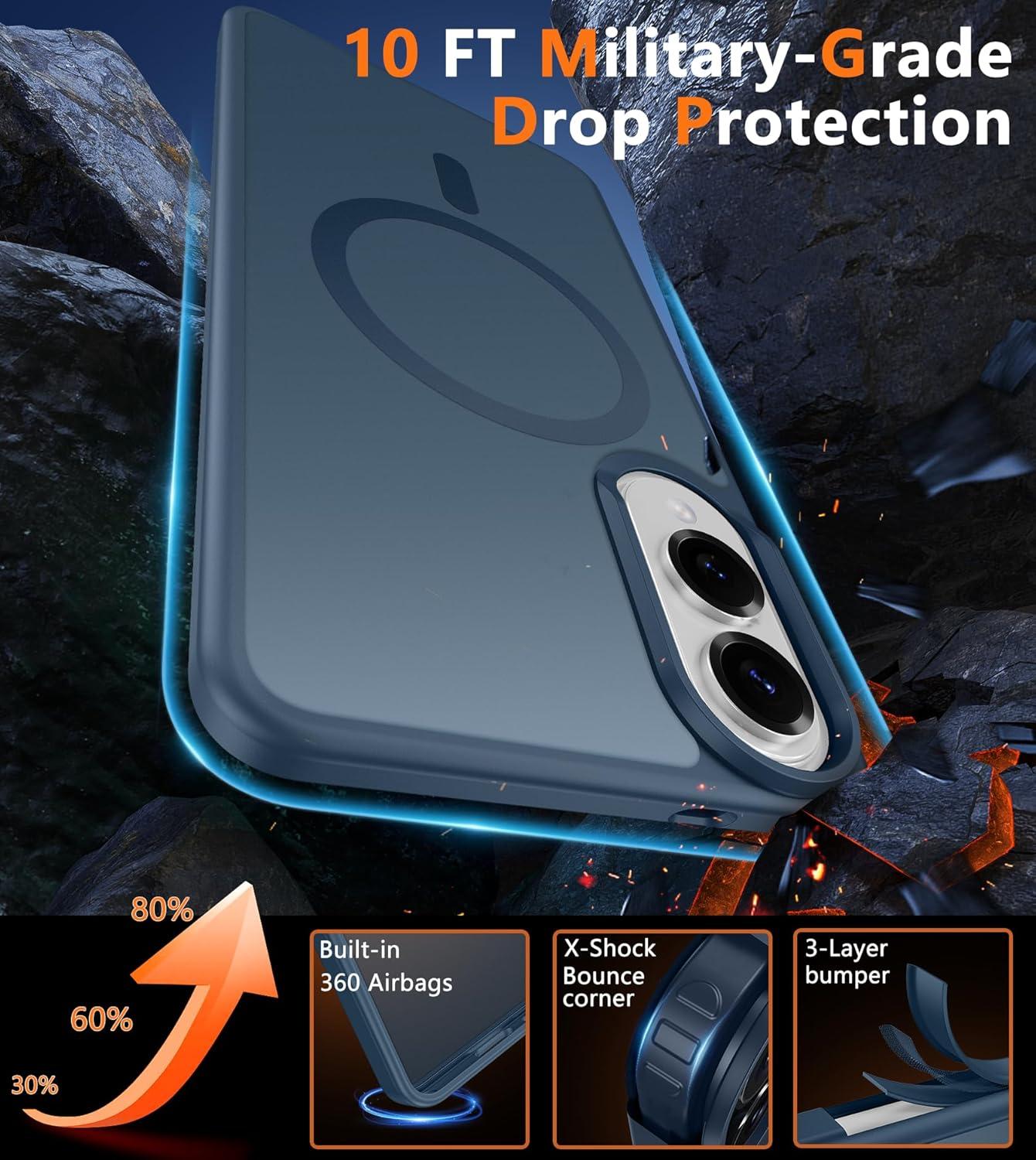 14FT Military Grade Protection: Passed Military Drop Tested up to 14FT. This Samsung Galaxy A16 5G phone case backplane is made with rigid polycarbonate and flexible shockproof TPU bumpers around the edge and features 4 built-in corner Airbags to absorb impact, which can prevent your Phone from accidental drops, bumps, and scratches