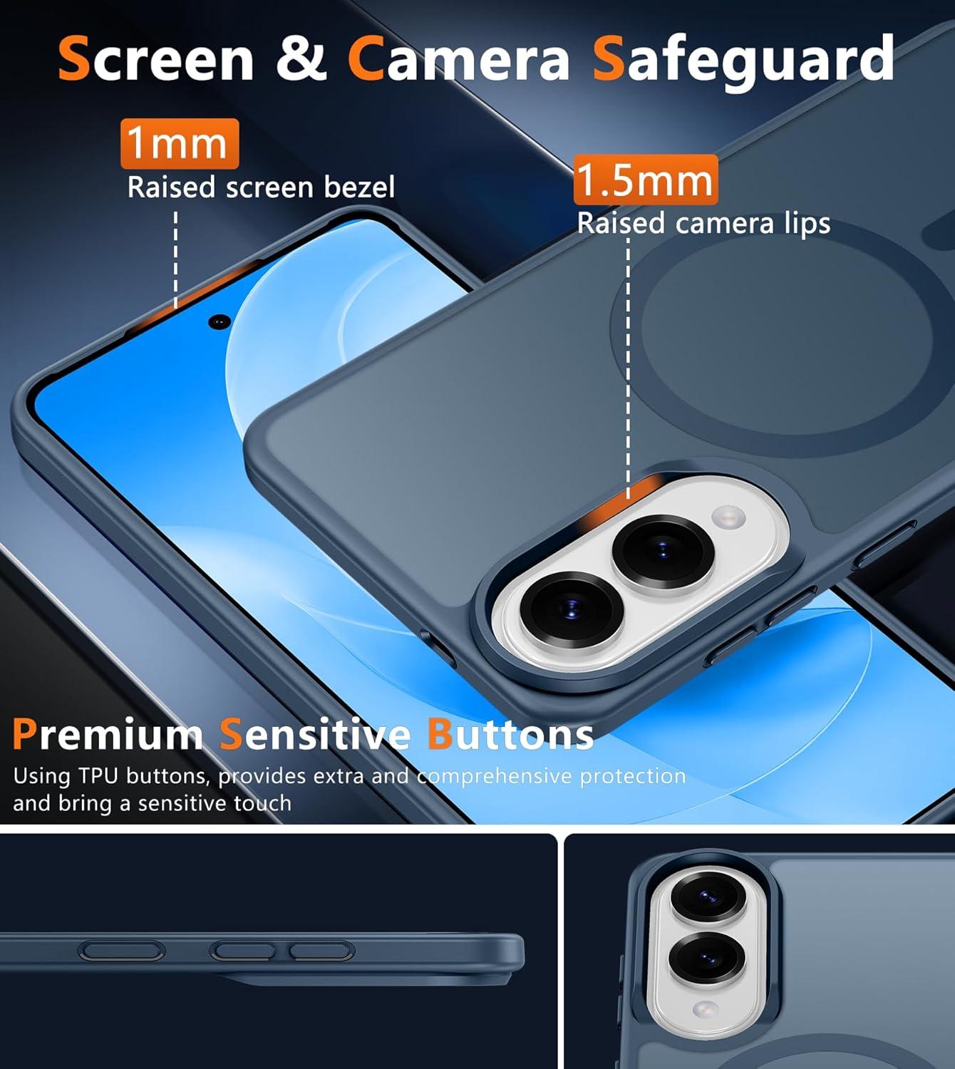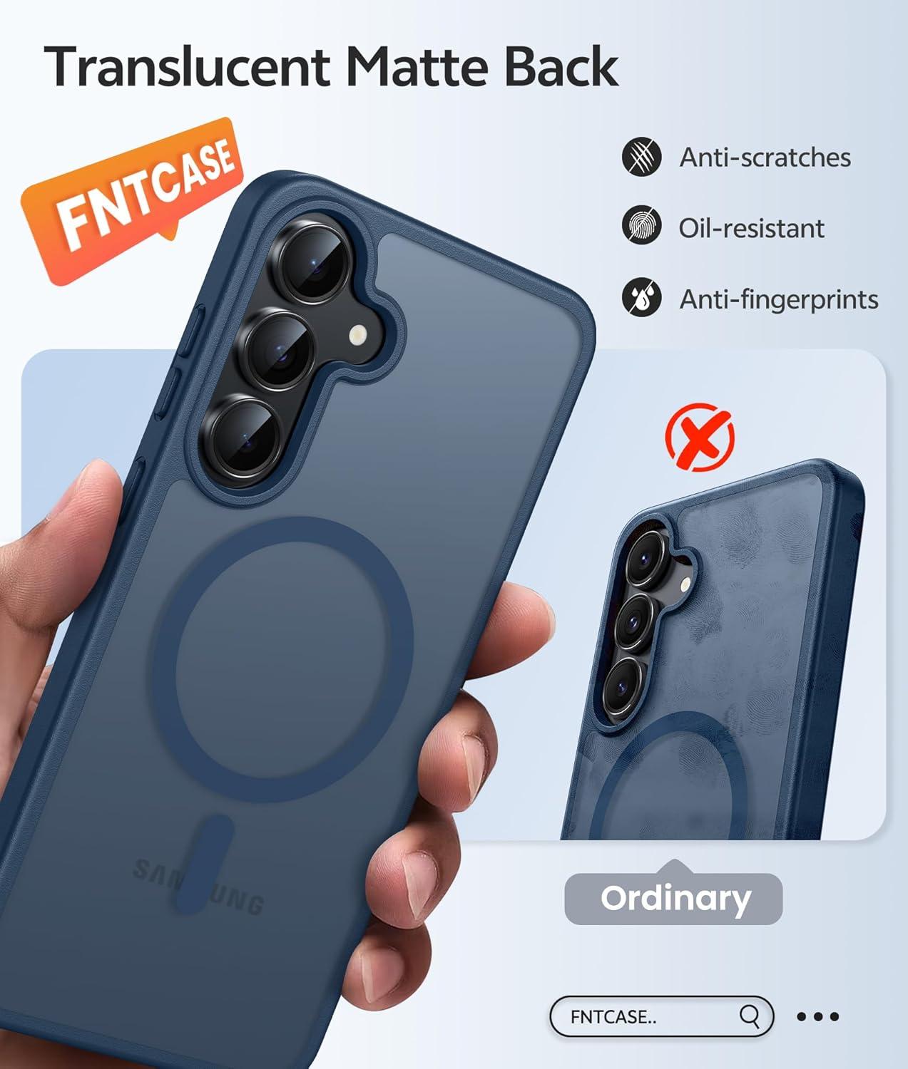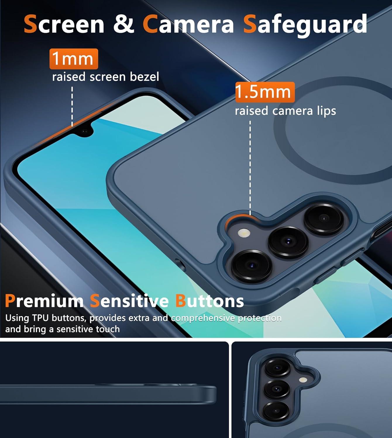 FNTCASE for Galaxy A16 5G Phone Case: Magnetic Matte Translucent Military Grade Drop Protection Cell Phone Cover – Slim Rugged Durable Shockproof Protective for Samsung A16 Cases – Black(Blue)