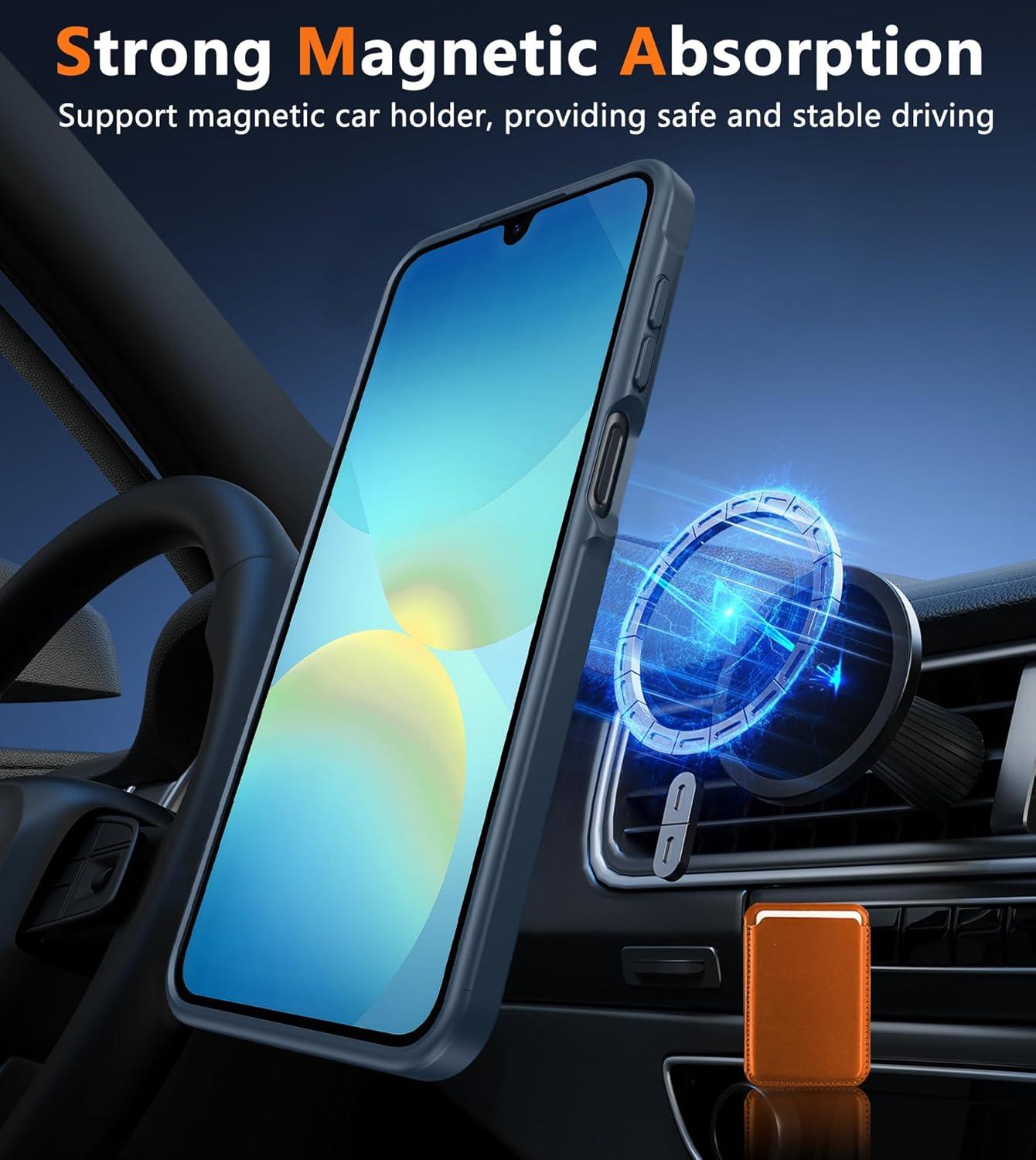 Strong Magnetic Attraction: The Samsung Galaxy A16 5G cell phone magnetic case is built-in with 38 pieces of super N52 magnets, with strong magnetic attraction of up to 2400 gf, which is firmly adsorbed and not easy to fall off. The phone case can be easily adsorbed to magnetic car bracket, making car navigation safer and more convenient. The back of the phone case can adsorb a magnetic card holder wallet, making card storage more convenient and travel more lightweight