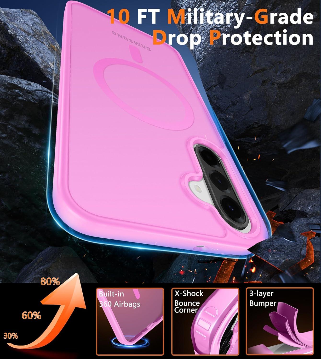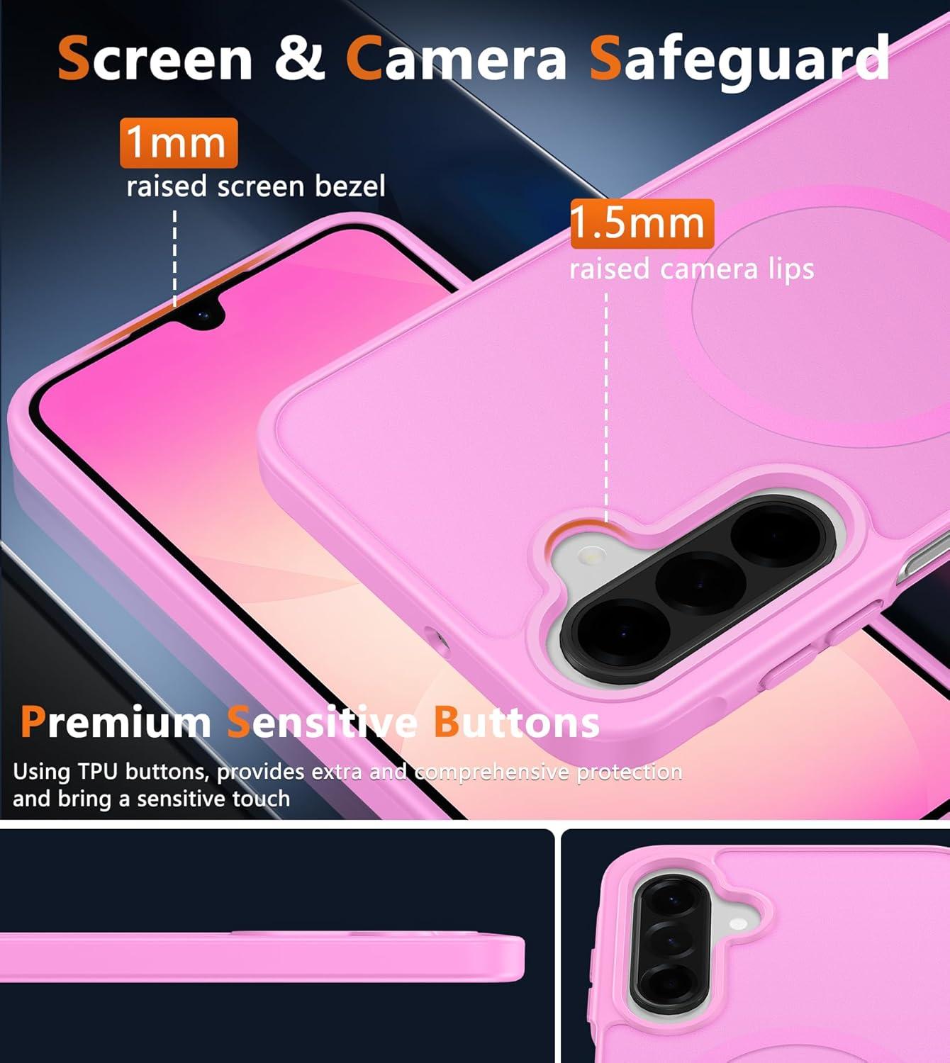 FNTCASE for Galaxy A16 5G Phone Case: Magnetic Matte Translucent Military Grade Drop Protection Cell Phone Cover – Slim Rugged Durable Shockproof Protective for Samsung A16 Cases – Black(Pink)