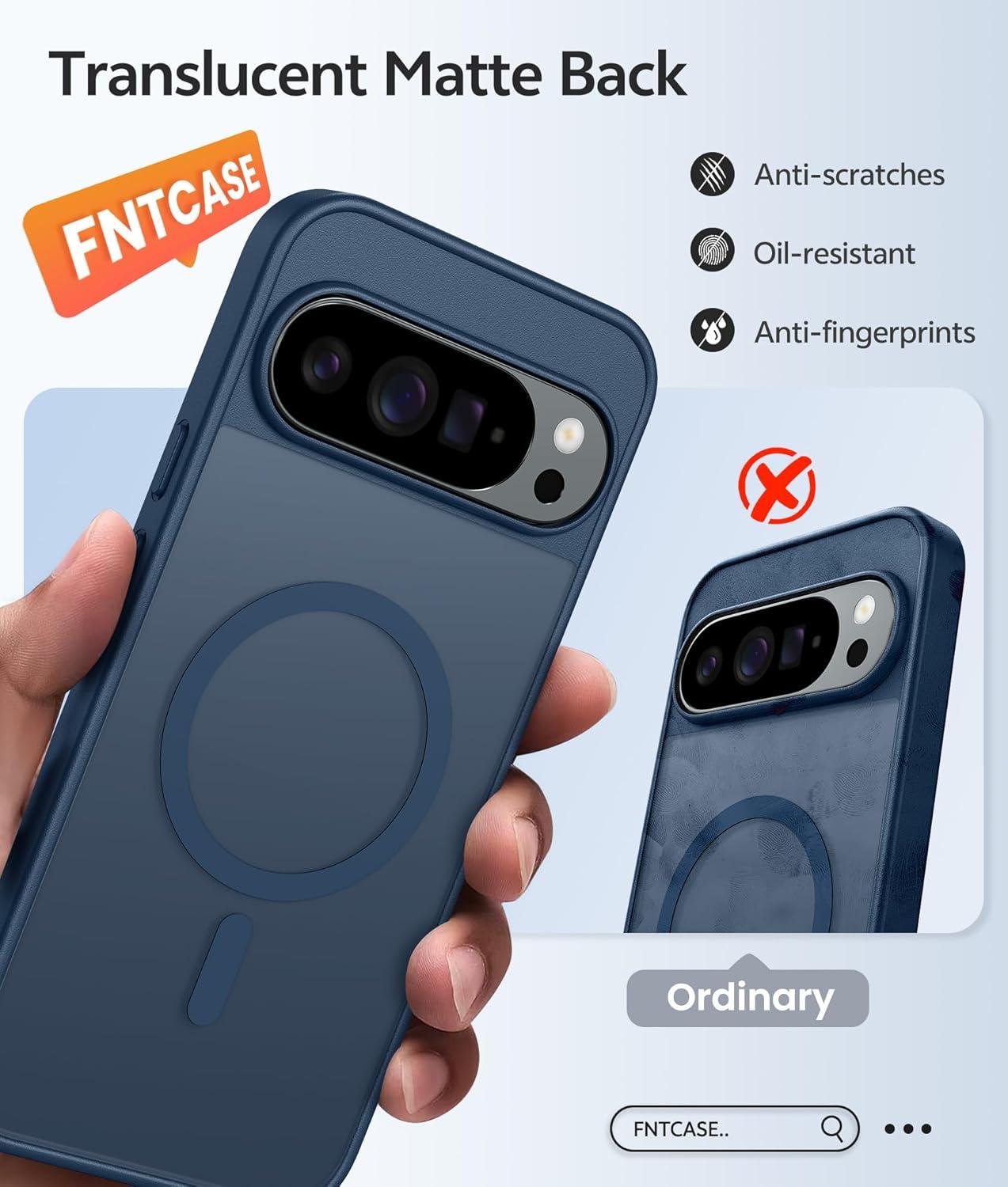 FNTCASE for Google Pixel 10 Case: for Pixel 10 Pro Case | Magnetic Matte Shockproof Rugged Translucent Phone Cover – Military Grade Drop Proof Sturdy Slim Protective Cases (6.3 inch/Black)(Blue)