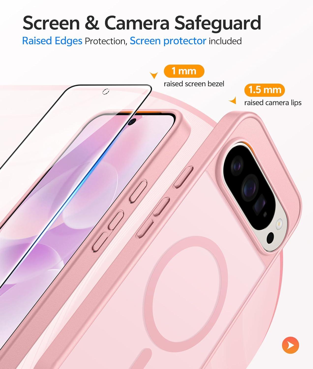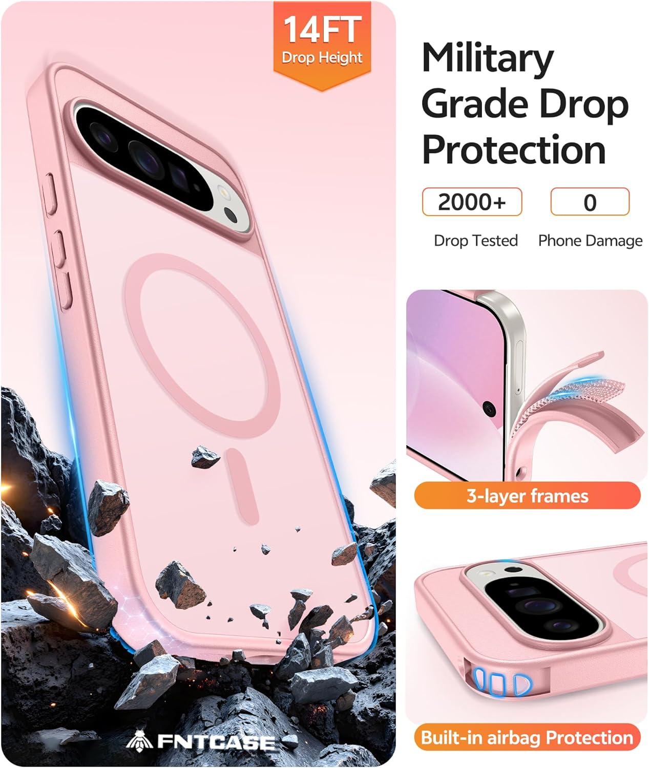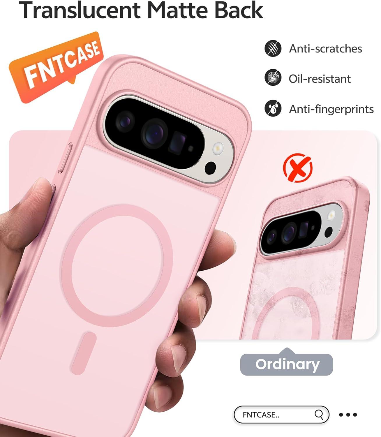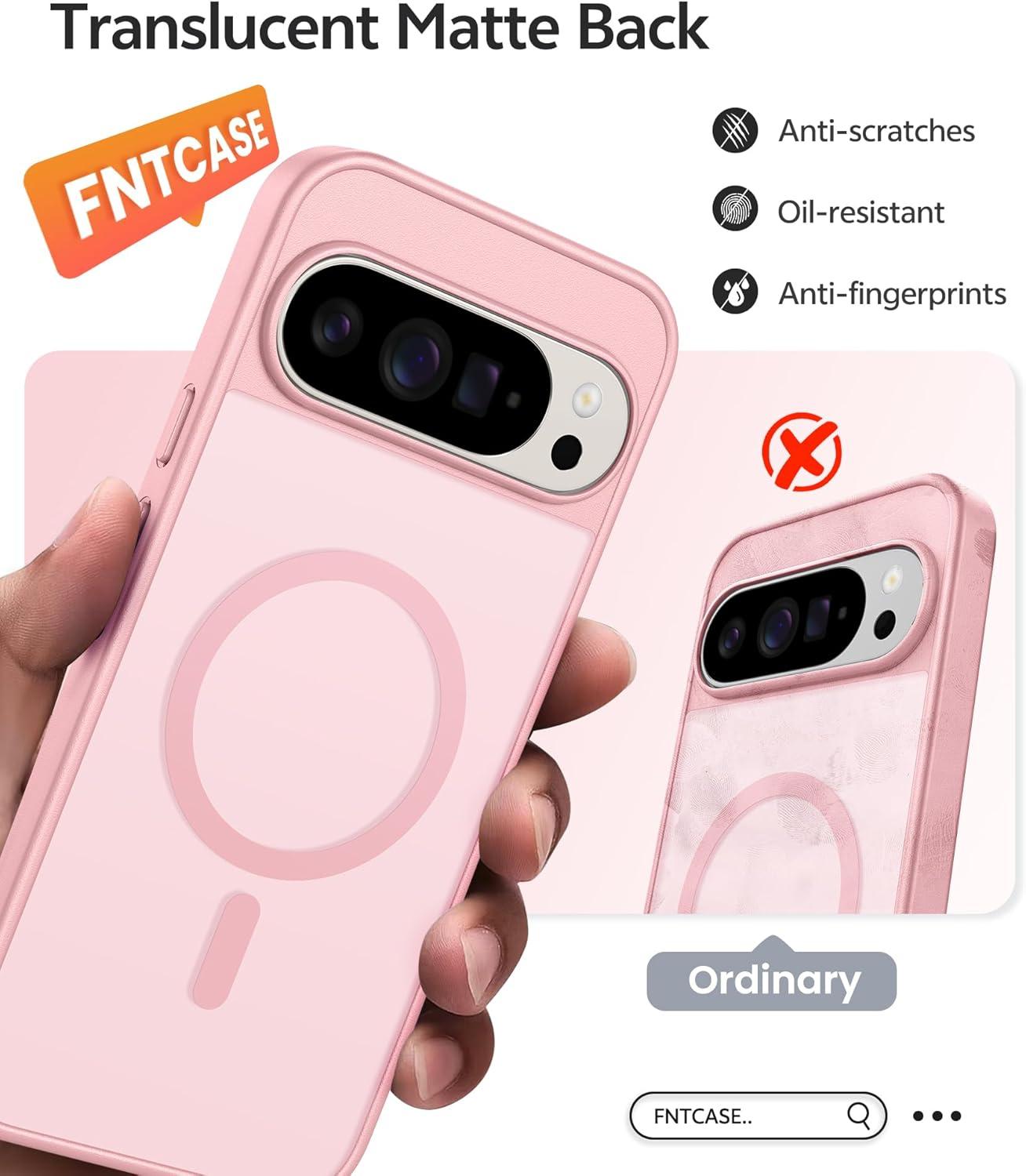 FNTCASE for Google Pixel 10 Case: for Pixel 10 Pro Case | Magnetic Matte Shockproof Rugged Translucent Phone Cover – Military Grade Drop Proof Sturdy Slim Protective Cases (6.3 inch/Black)(Light Pink)