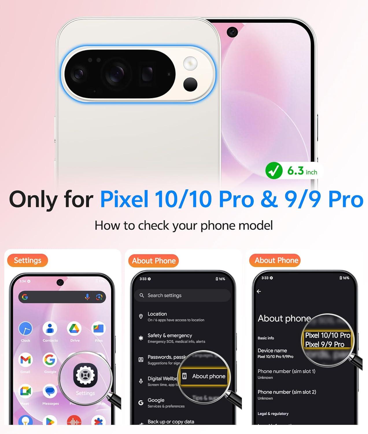 Compatibility: This case Fits for Google Pixel 10 (6.3 inch-2025), Google Pixel 10 Pro (6.3 inch-2025). Please confirm your phone moderl before purchasing