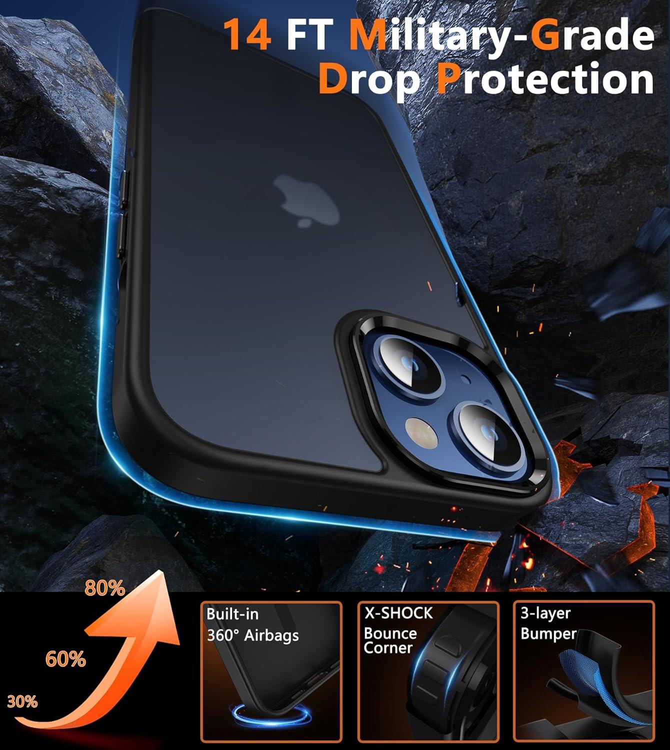 14FT Military Grade Drop Protection: This Google Pixel 10 Pro Case backplane is made with rigid polycarbonate and flexible shockproof TPU bumpers around the edge, and features 4 built-in corner Airbags to absorb impact, which can protect your phone from accidental drops, bumps, and scratches