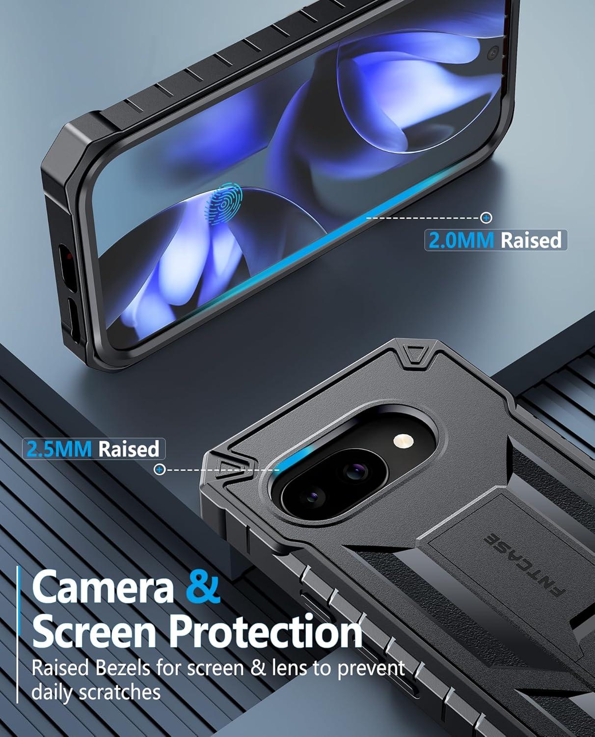 FNTCASE for Google Pixel 9A Case: Military Grade Drop Proof Protection Mobile Cover with Kickstand | Matte Textured Rugged Shockproof TPU | Protective Sturdy Phone Case – Black(Black)