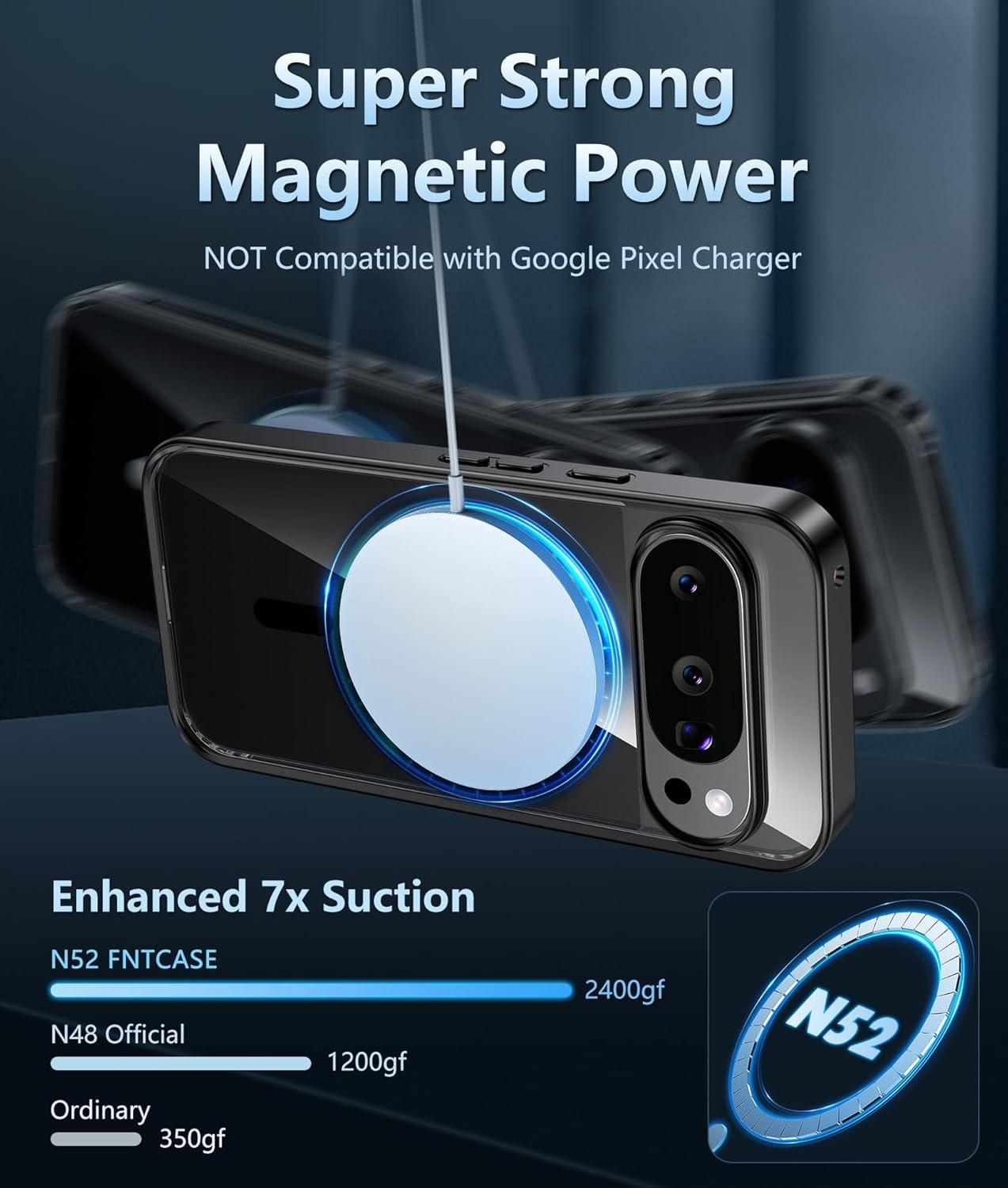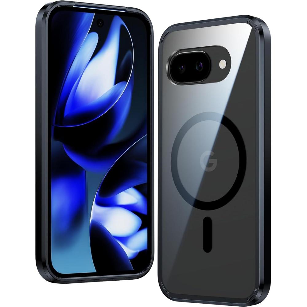 FNTCASE for Google Pixel 9a Case: Military Grade Drop Protection Anti Yellowing Cell Phone Cover – Rugged Shockproof Protective Bumper Transparent Cases(Clear)(Black Magnetic)