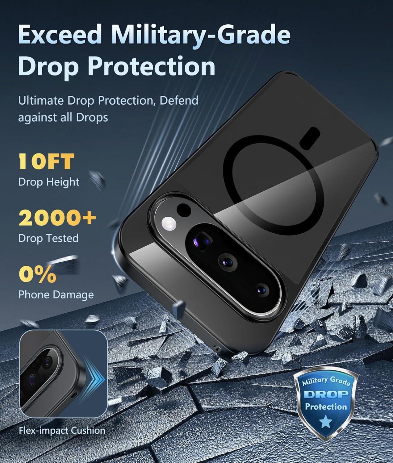10FT Military Grade Protection: Passed Military Drop Tested up to 10 FT. This Google Pixel 9a clear case backplane is made with rigid polycarbonate and flexible shockproof TPU bumpers around the edge and features 4 built-in corner Airbags to absorb impact