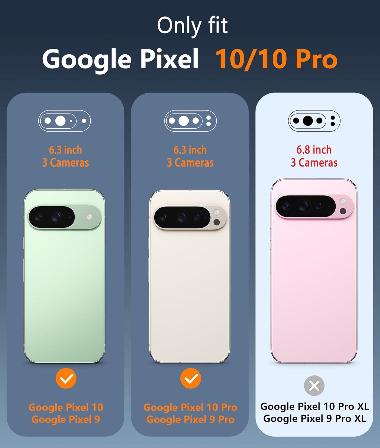 | Size | for Google Pixel 9 Pro XL(6.8 inch), for Google Pixel 9a(6.3 inch), for Pixel 10/10 Pro/9/9 Pro(6.3 inch), for Pixel 10/9 Pro XL(6.8 inch) |