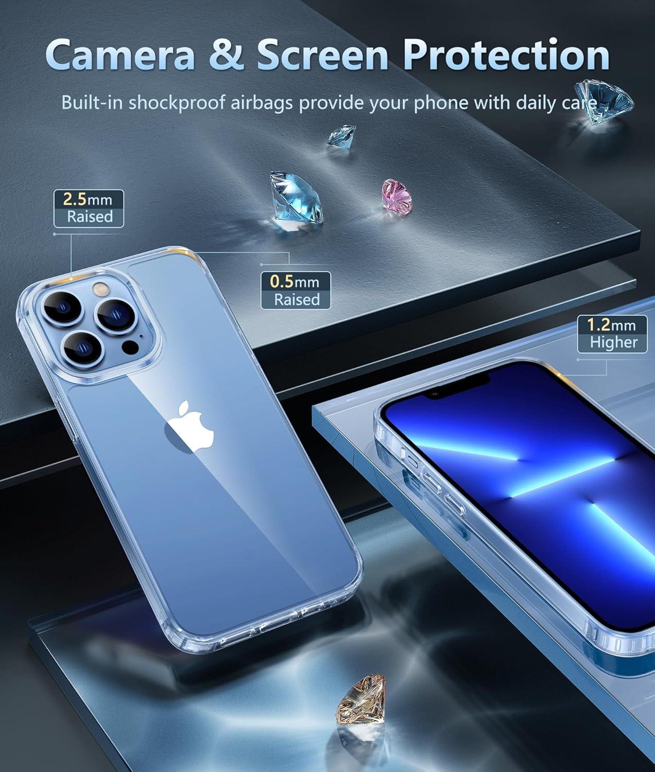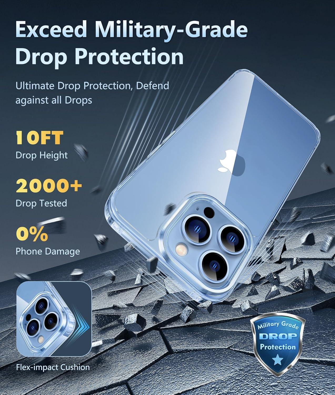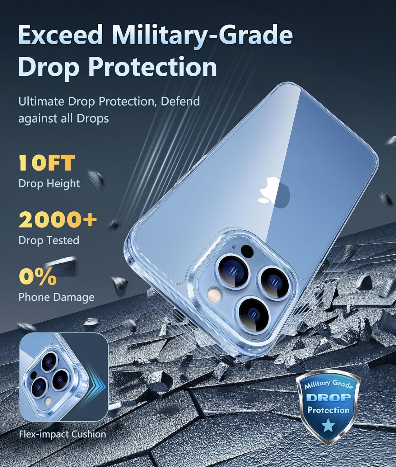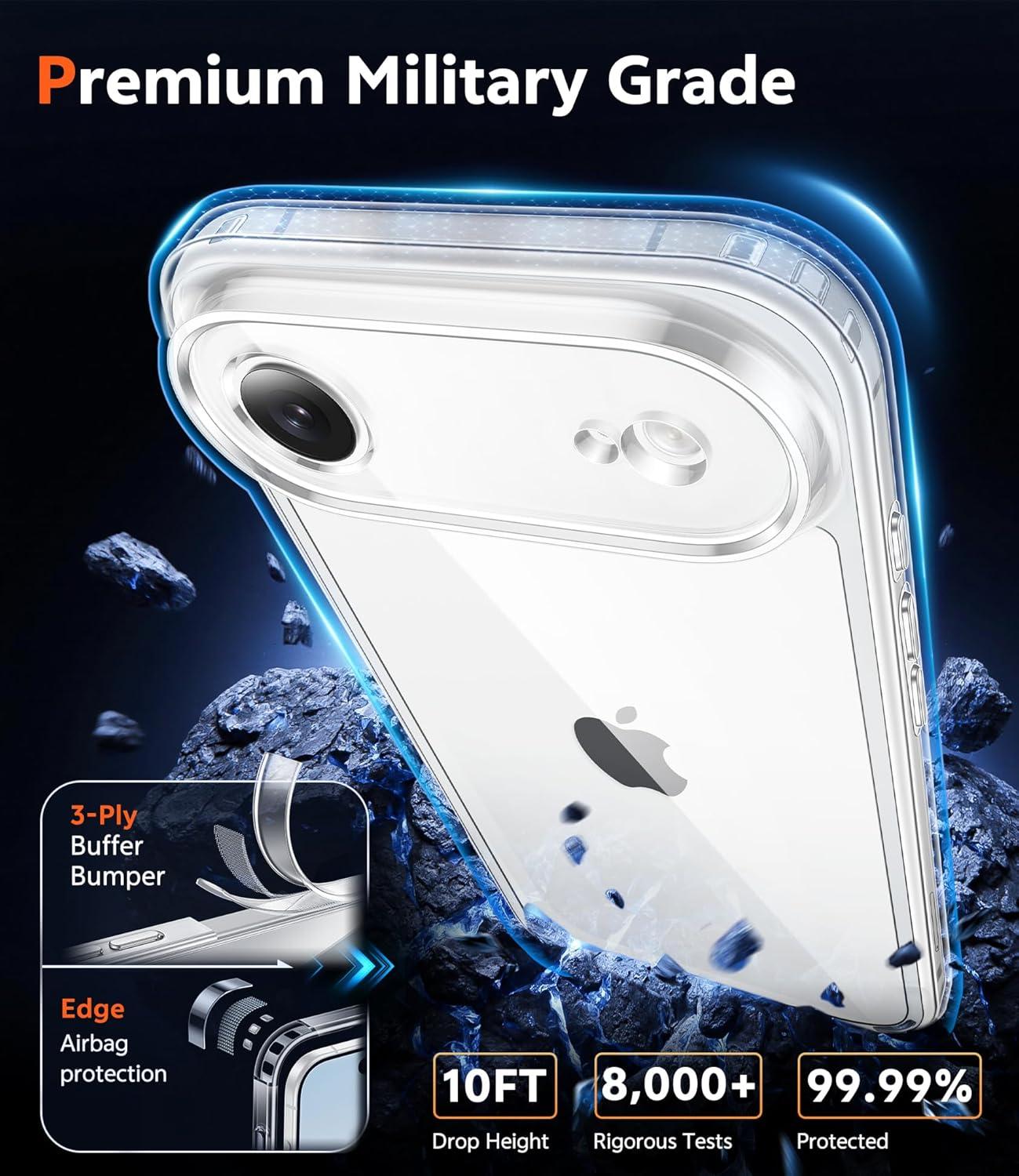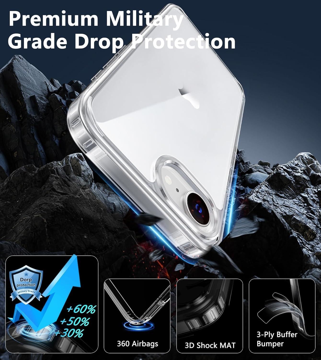 10FT Military Grade Protection: Passed Military Drop Tested up to 10 FT. This iPhone 16 Pro clear case backplane is made with rigid polycarbonate and flexible shockproof TPU bumpers around the edge and features 4 built-in corner Airbags to absorb impact