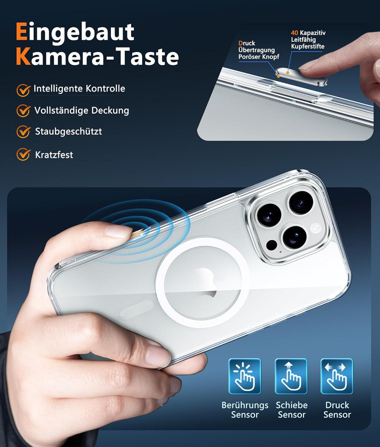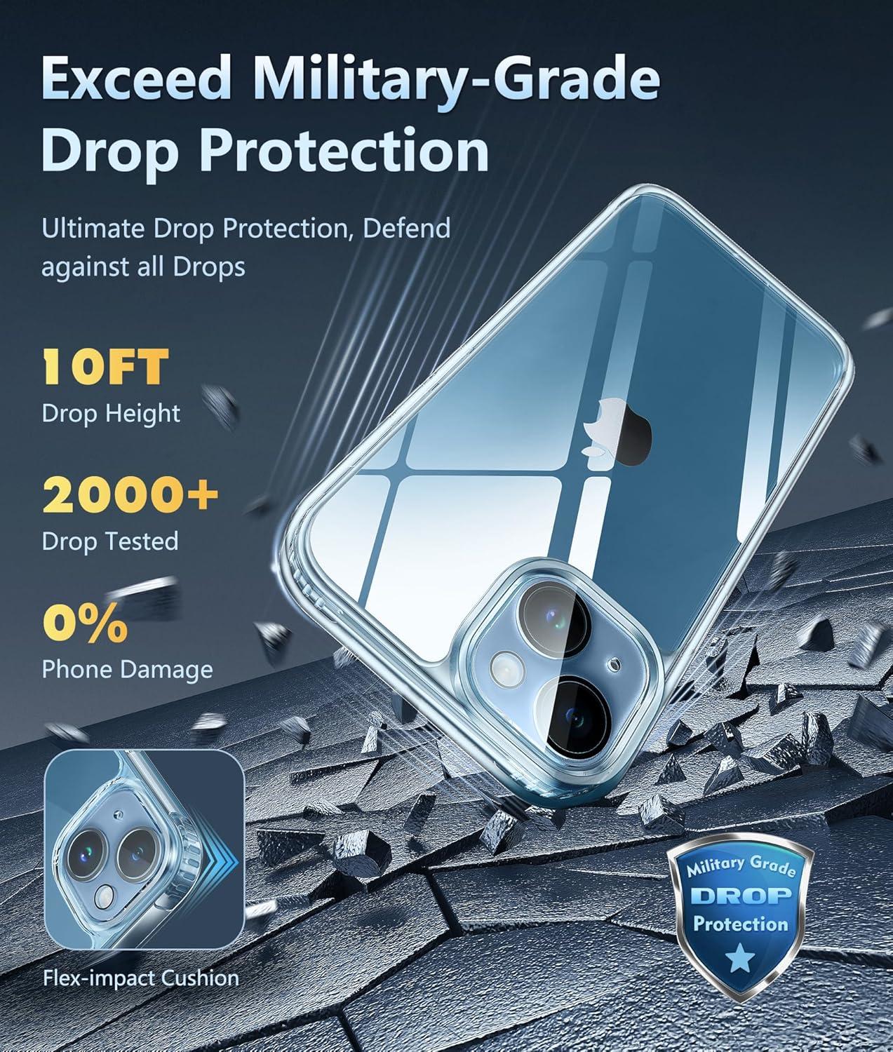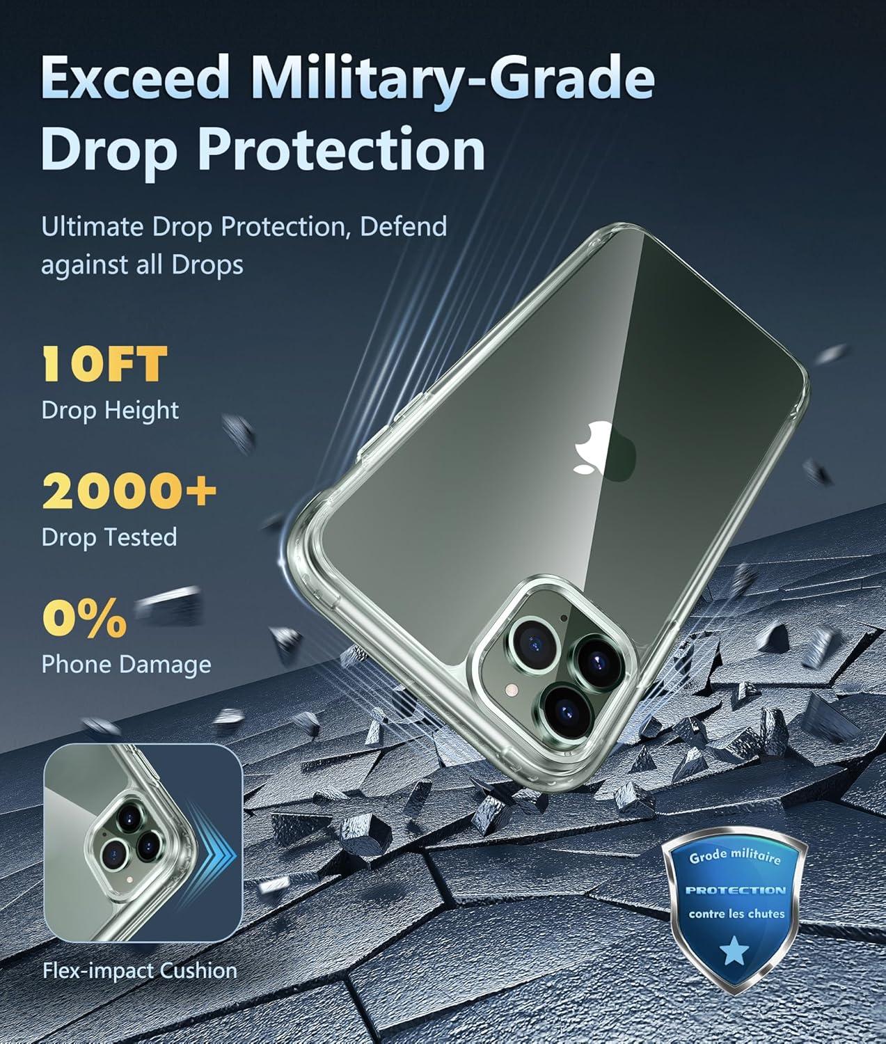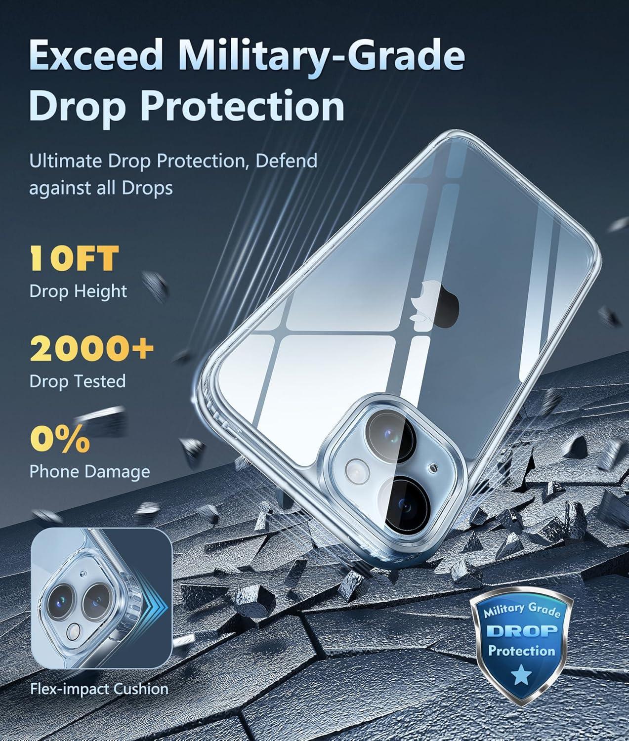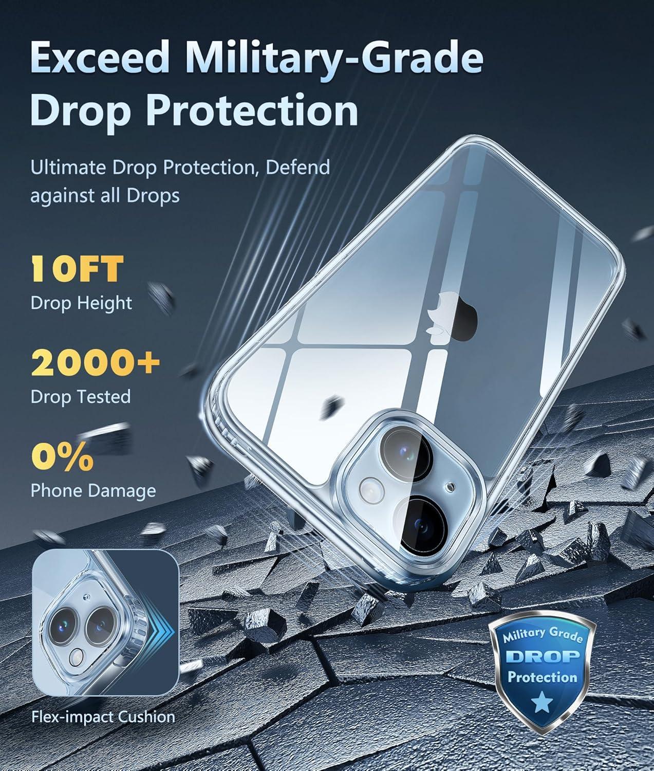 10FT Military Grade Protection: Passed Military Drop Tested up to 10 FT. This iPhone 16 Pro clear case backplane is made with rigid polycarbonate and flexible shockproof TPU bumpers around the edge and features 4 built-in corner Airbags to absorb impact