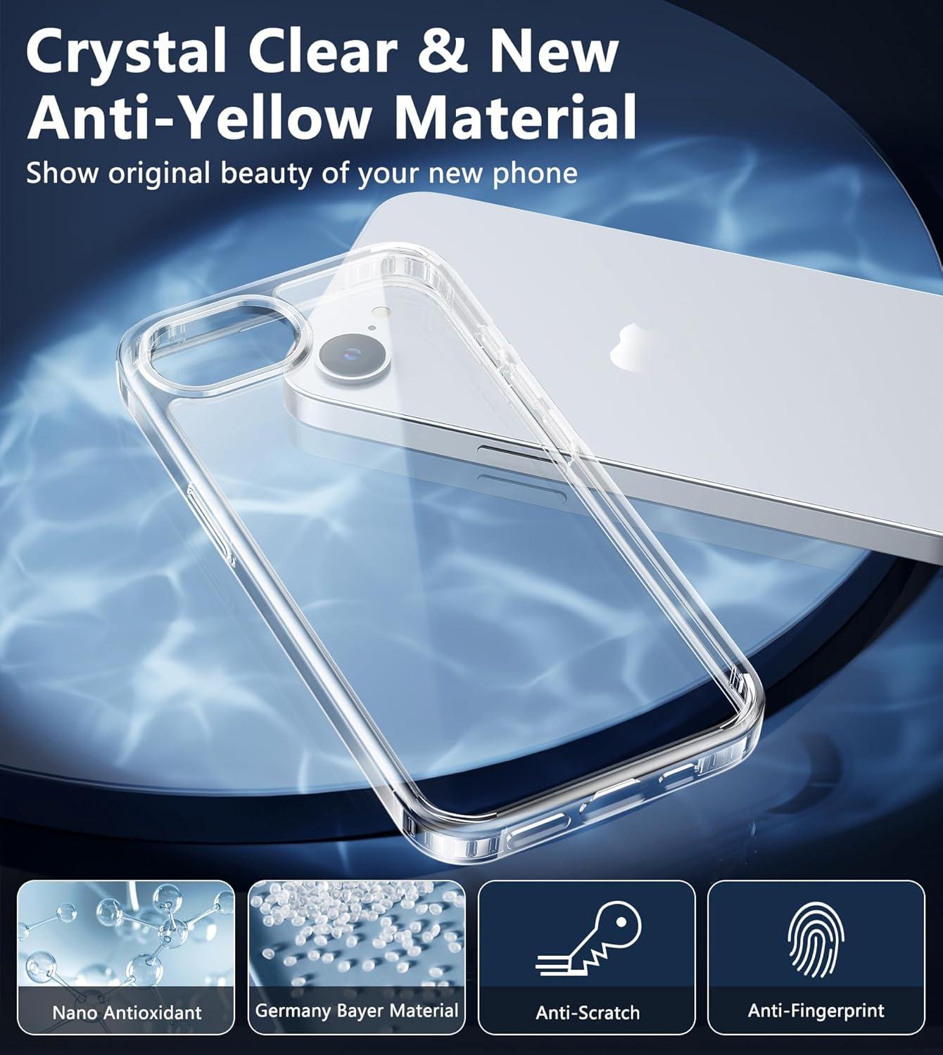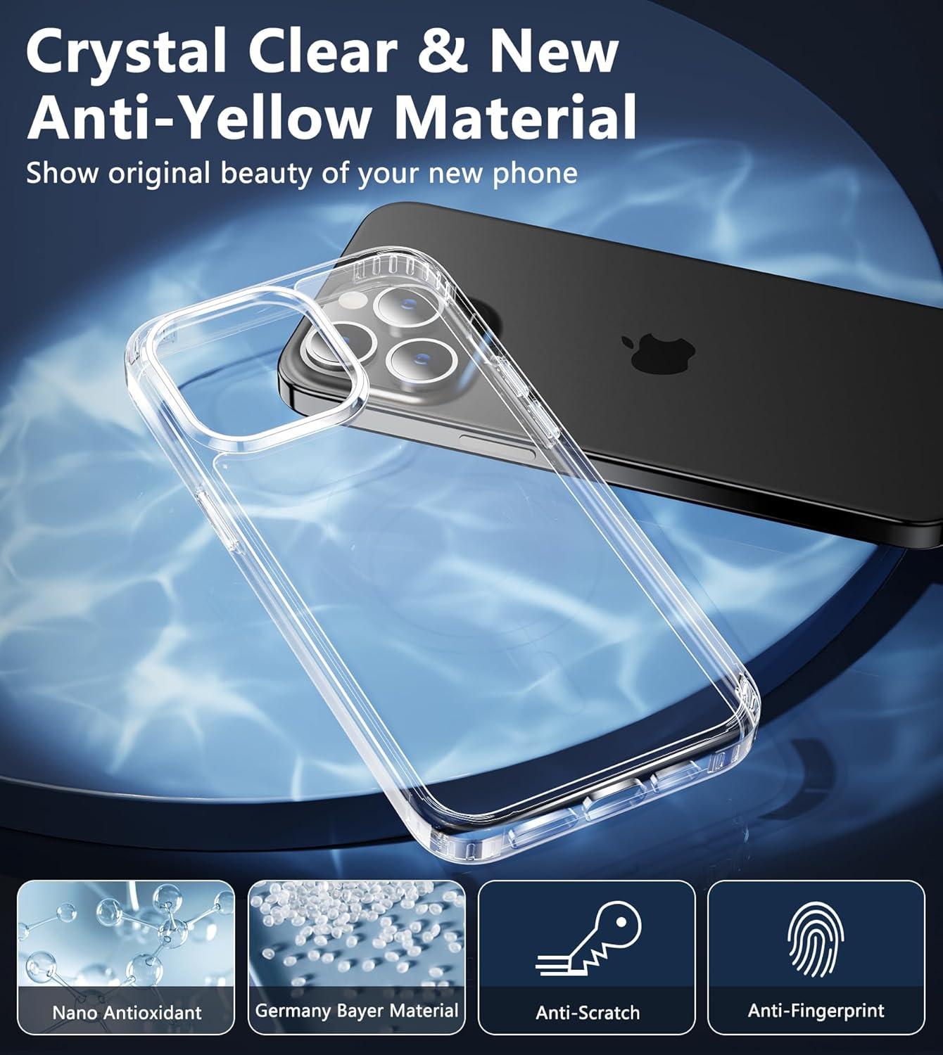 Crystal Clear & Never Yellow: Using high-grade Bayer's ultra-clear TPU and PC material, allowing you to admire the original sublime beauty for iPhone 16 Pro while won't get oily when used. The Nano antioxidant layer effectively resists stains and sweat