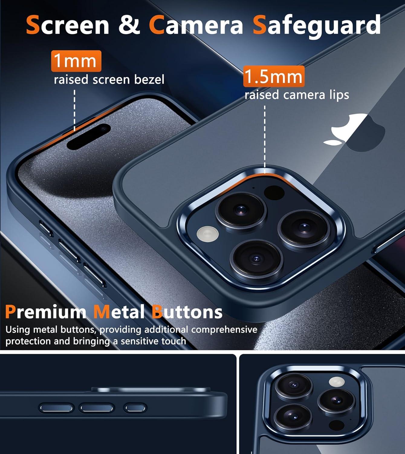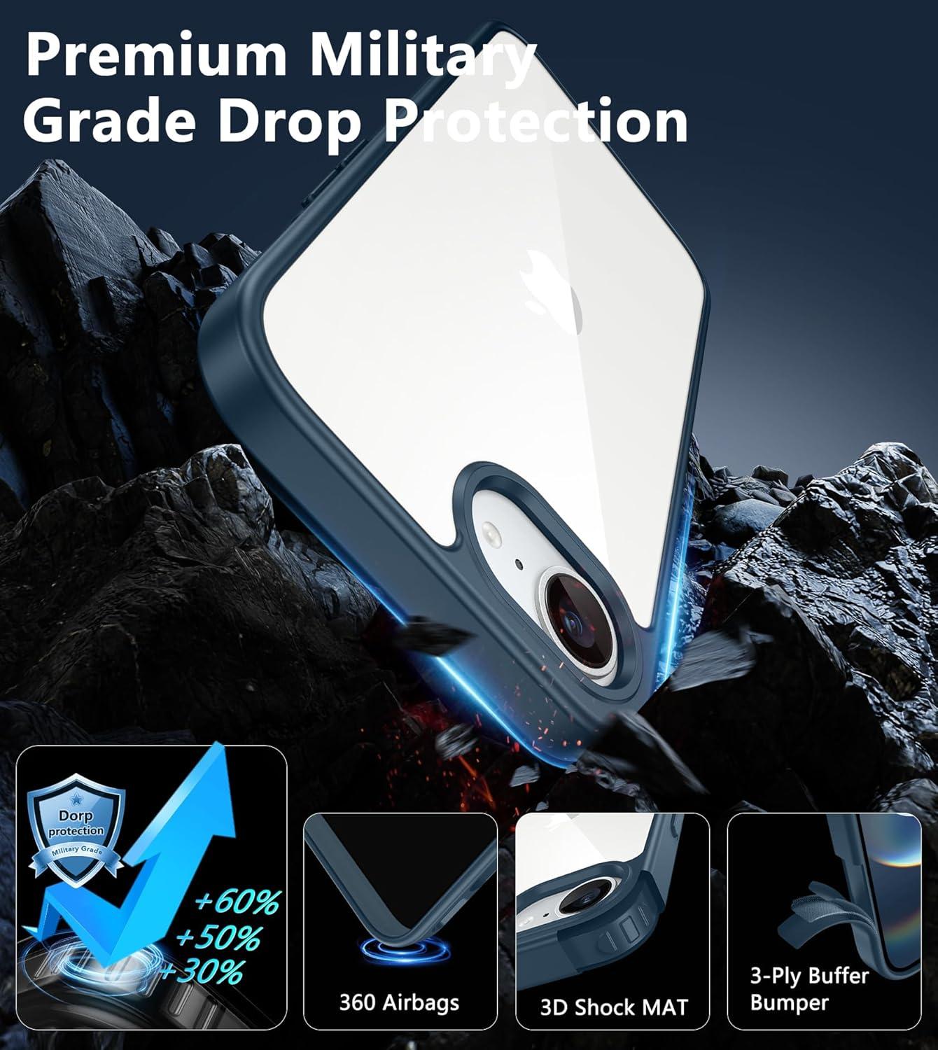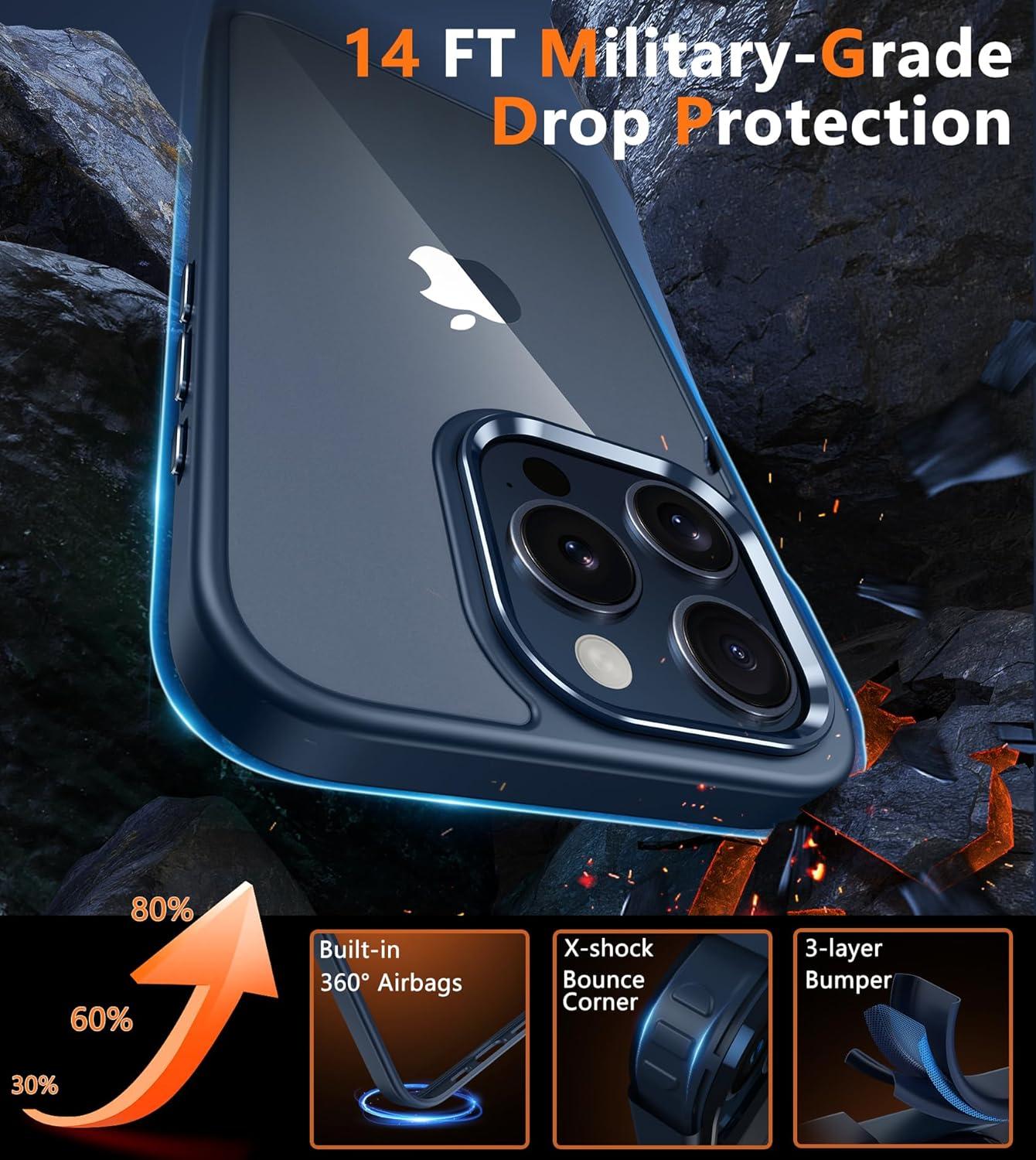 10FT Military Grade Protection: Passed Military Drop Tested up to 10 FT. This iPhone 16 Pro clear case backplane is made with rigid polycarbonate and flexible shockproof TPU bumpers around the edge and features 4 built-in corner Airbags to absorb impact