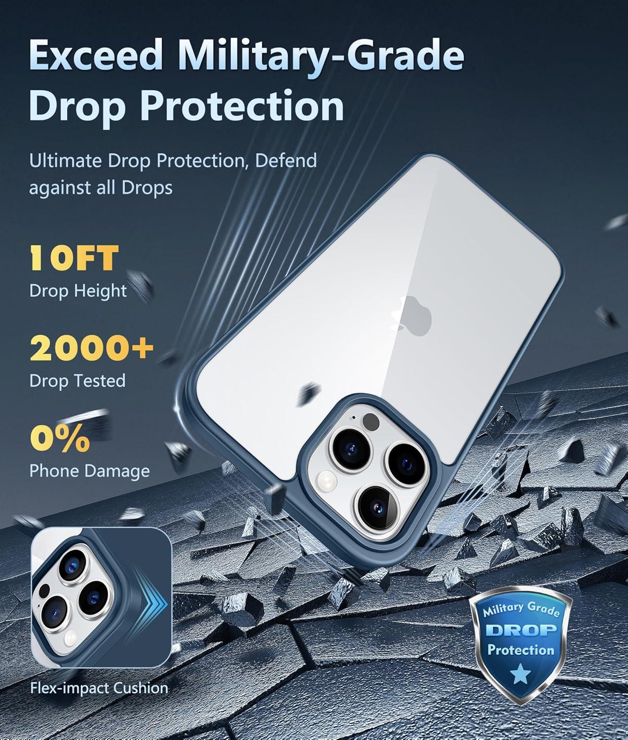 FNTCASE for iPhone 16 Pro Case: Clear Phone Cases Compatible with Magsafe Slim Anti Yellowing Military Grade Drop Protection Rugged Shockproof Protective Transparent Cell Phone Cover (B-Clear)(D-Blue)