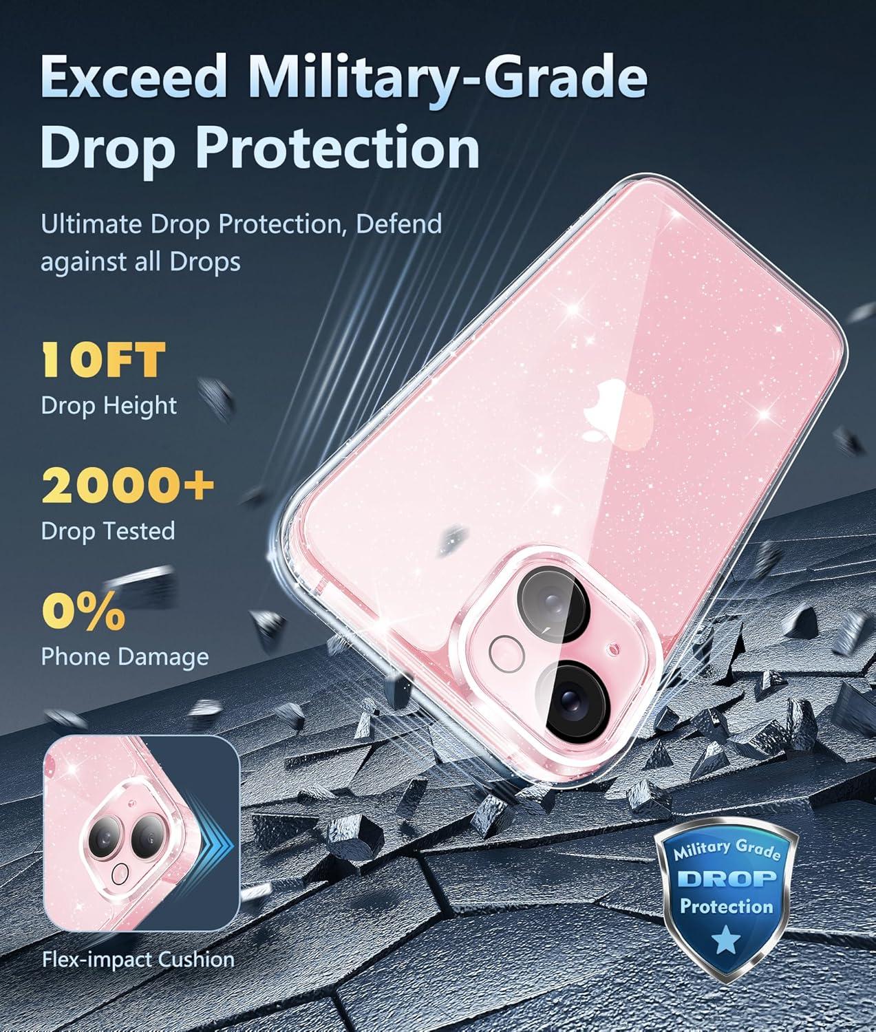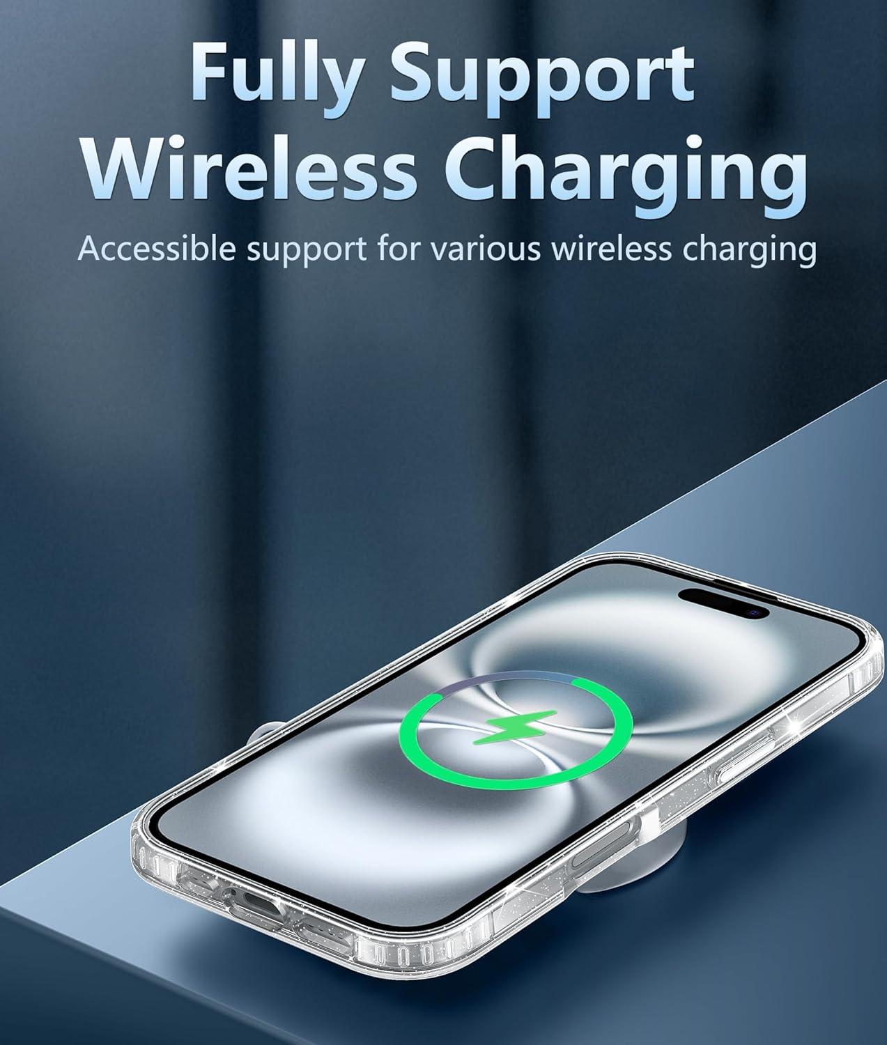 10FT Military Grade Protection: Passed Military Drop Tested up to 10 FT. This iPhone 16 Pro clear case backplane is made with rigid polycarbonate and flexible shockproof TPU bumpers around the edge and features 4 built-in corner Airbags to absorb impact