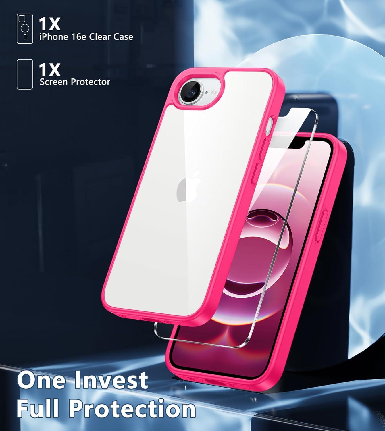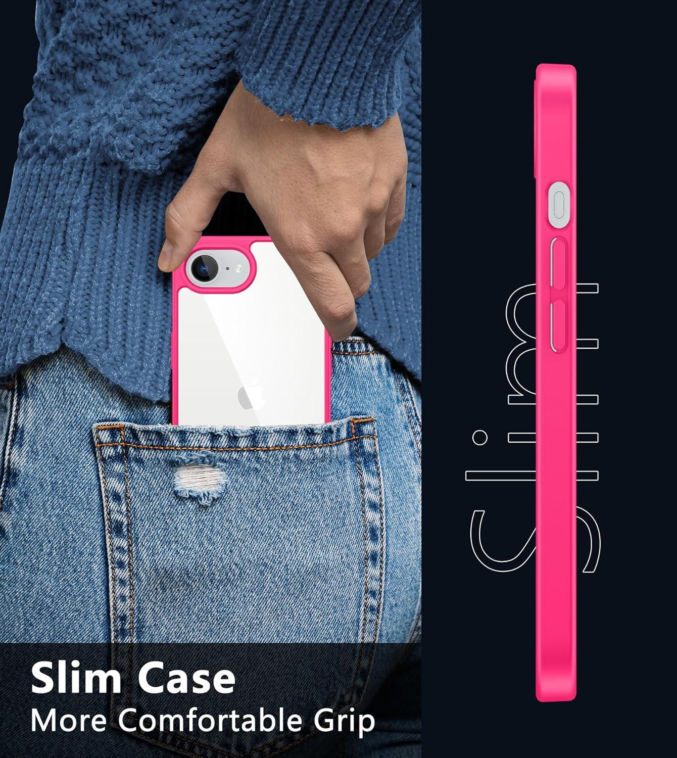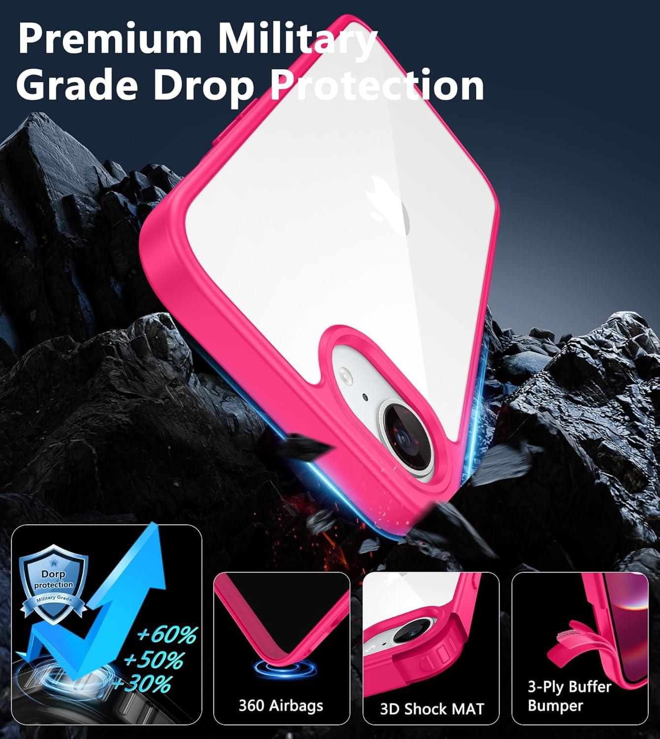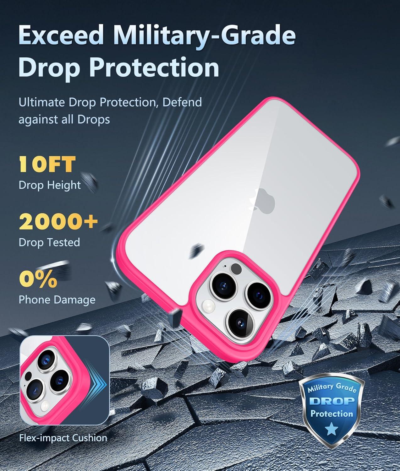 FNTCASE for iPhone 16 Pro Case: Clear Phone Cases Compatible with Magsafe Slim Anti Yellowing Military Grade Drop Protection Rugged Shockproof Protective Transparent Cell Phone Cover (B-Clear)(D-Hot Pink)