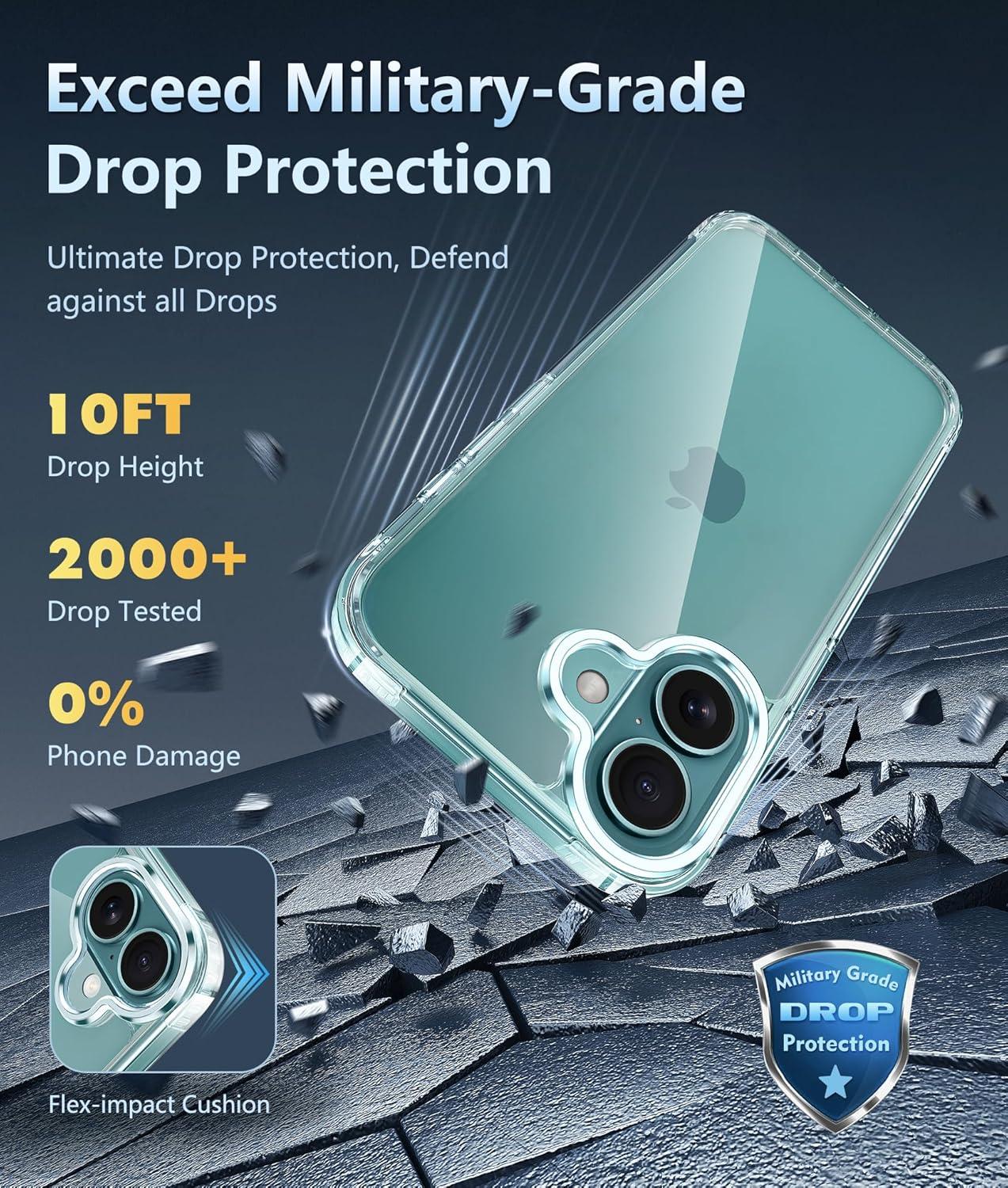 10FT Military Grade Protection: Passed Military Drop Tested up to 10 FT. This iPhone 16 Pro clear case backplane is made with rigid polycarbonate and flexible shockproof TPU bumpers around the edge and features 4 built-in corner Airbags to absorb impact