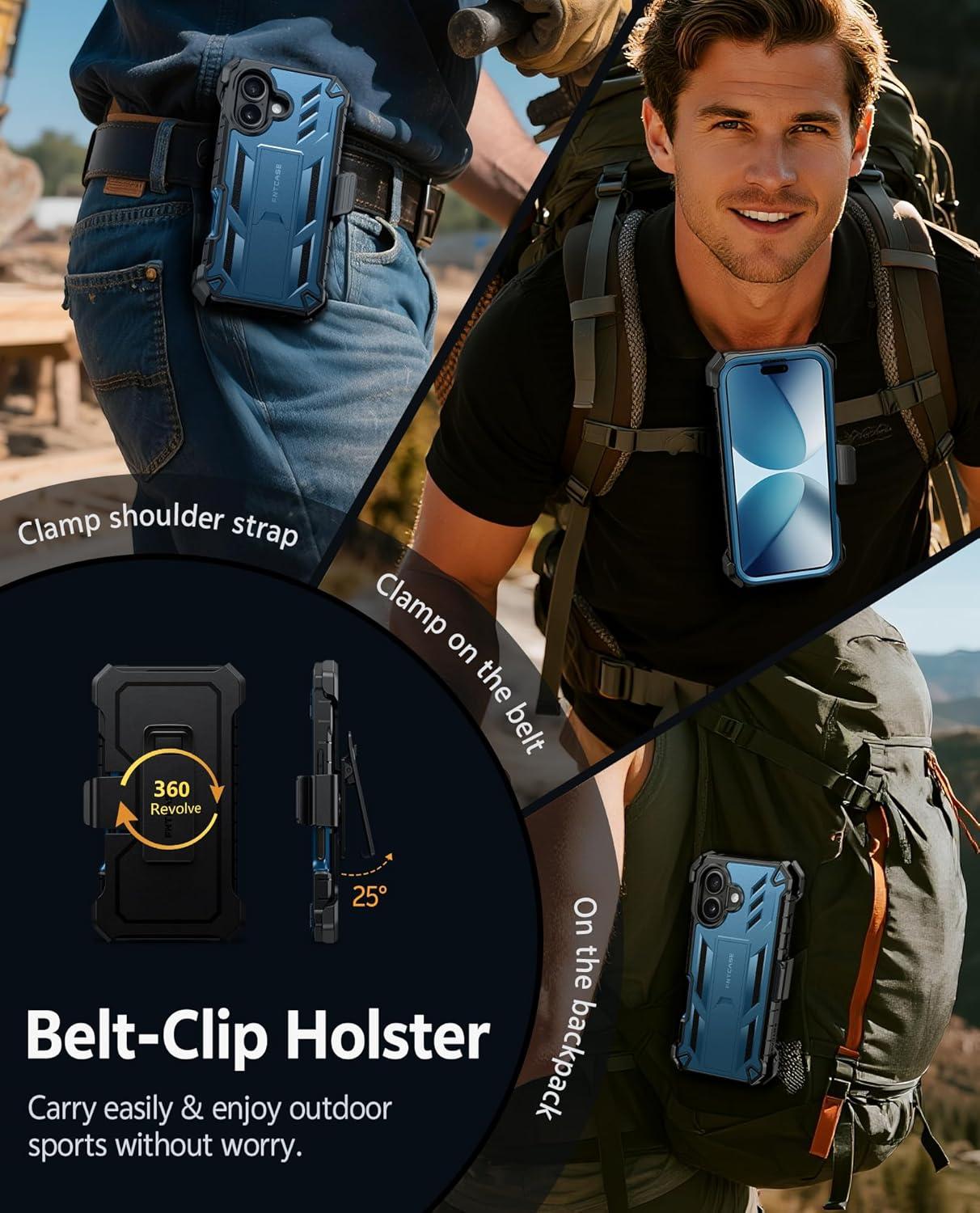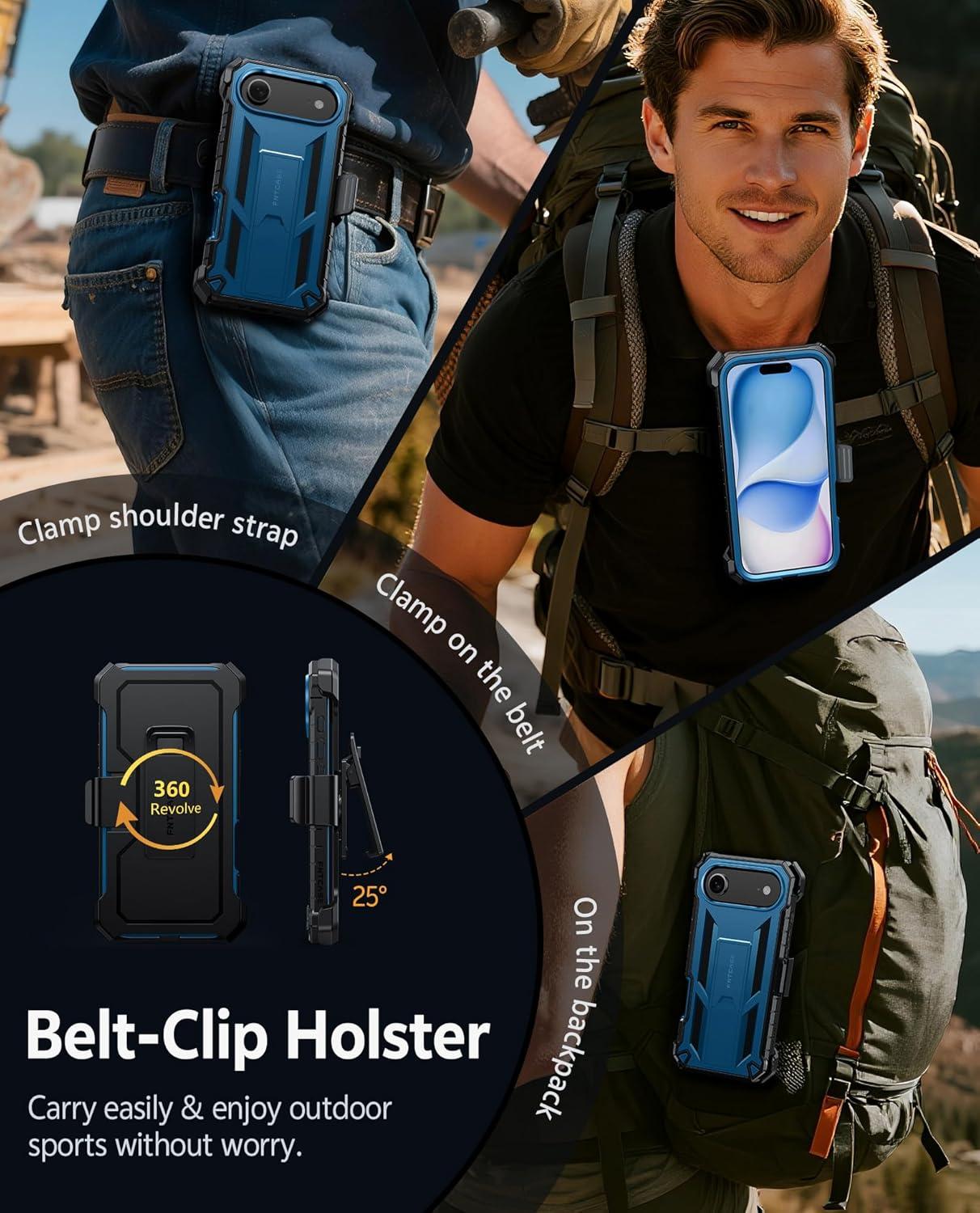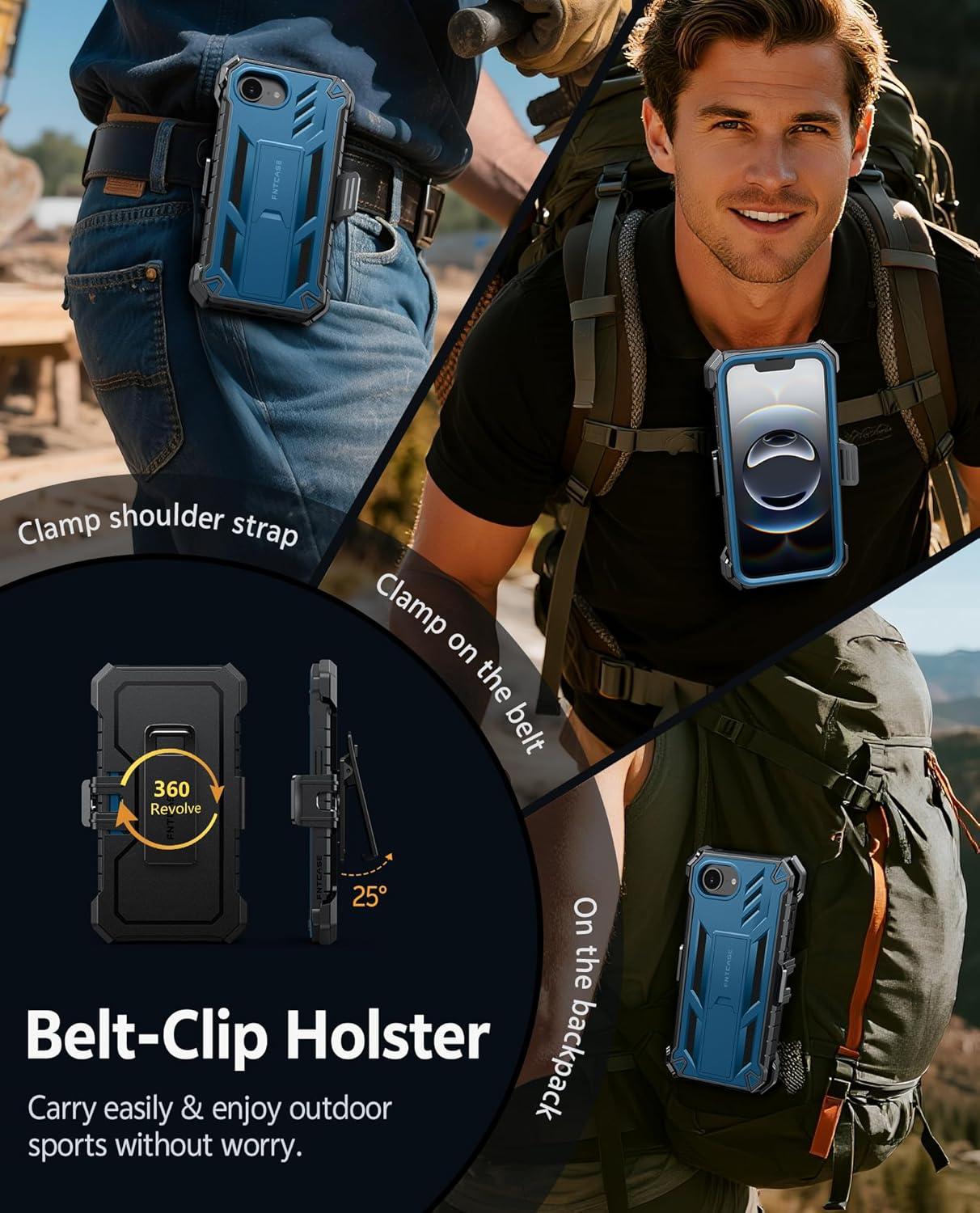 360 Rotatable Belt-Clip: The iPhone SE 4/16E Case can be rotated 360,and you can rotate it to your liking.Detachable swivel belt clip holster for convenient,hands-free,pocket-free carrying.Provides all round protection for your mobile phone case in all activities,especially when working outdoors,doing sports,camping,traveling