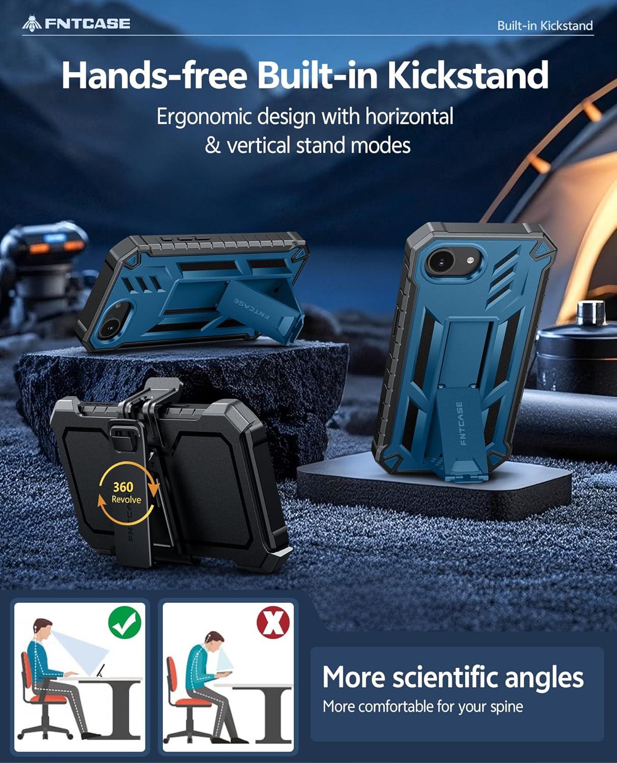Built-In Kickstand: The iPhone SE 4/16E Case with stand works perfectly both in vertical and horizontal positions.Convenient for reading,watching movies,playing games,browsing the web and face-to-face chatting with friends.Provides hands-free portrait and landscape viewing angles
