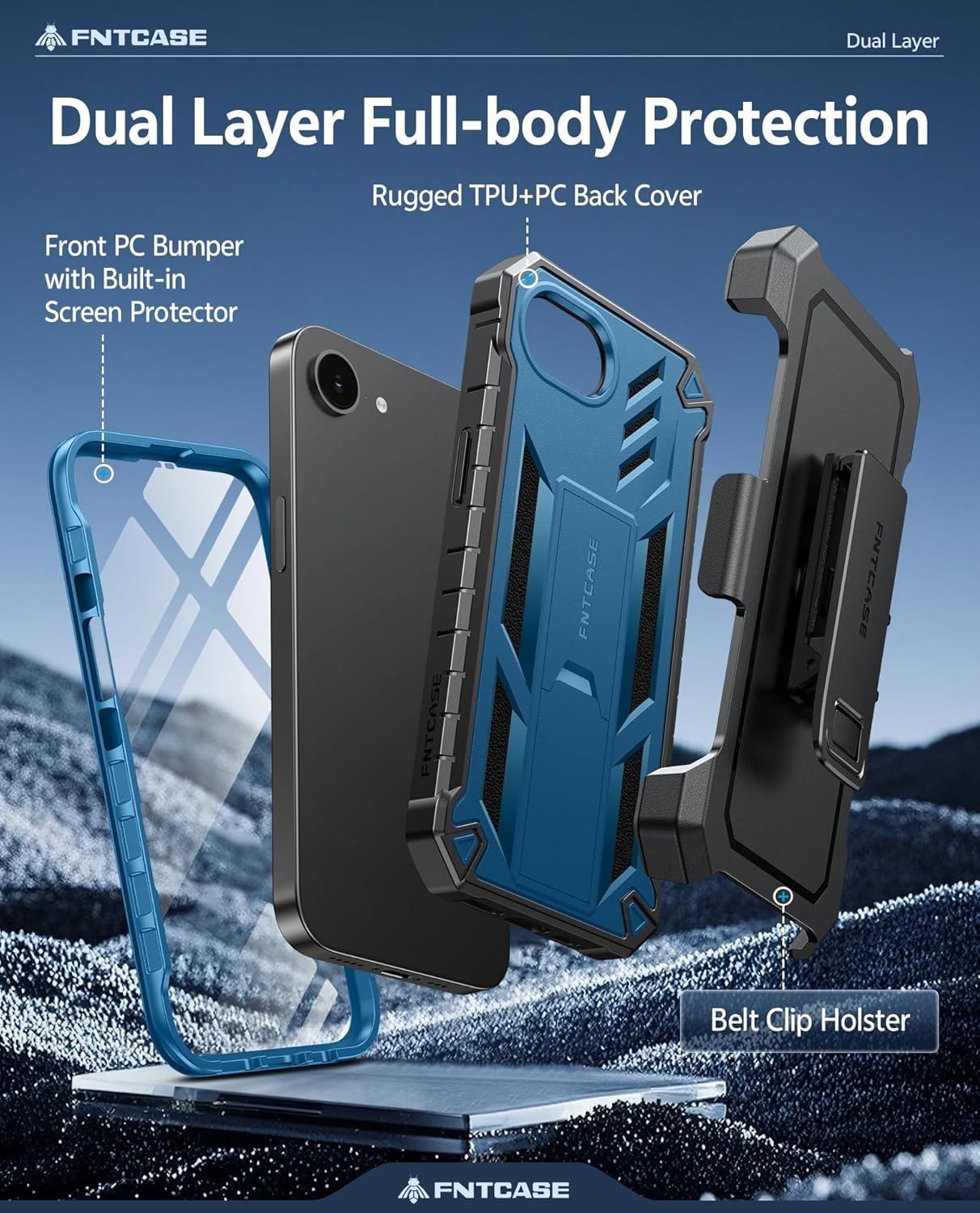 Be the first to review “FNTCASE for iPhone 16e 2025 Case: for iPhone 16E Military Grade Rugged Phone Cover with Kickstand & Holster | Shockproof TPU Protection Bumper Matte Textured Design | Heavy Duty Protector (Black)(Blue)”