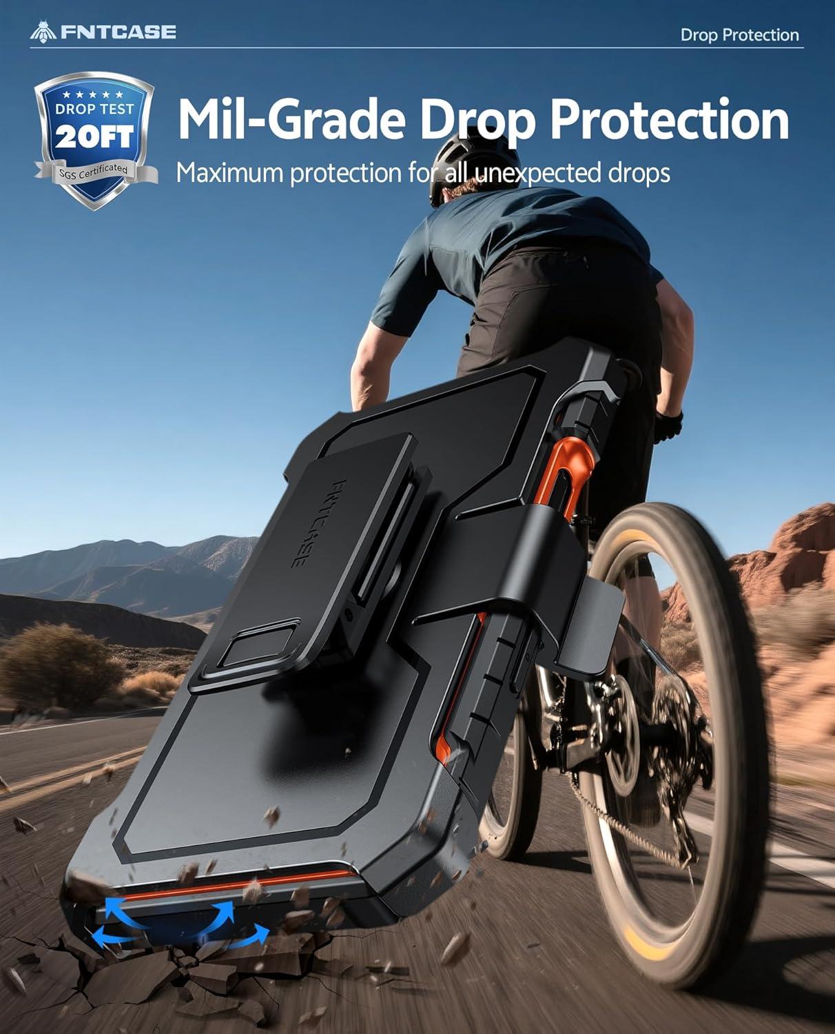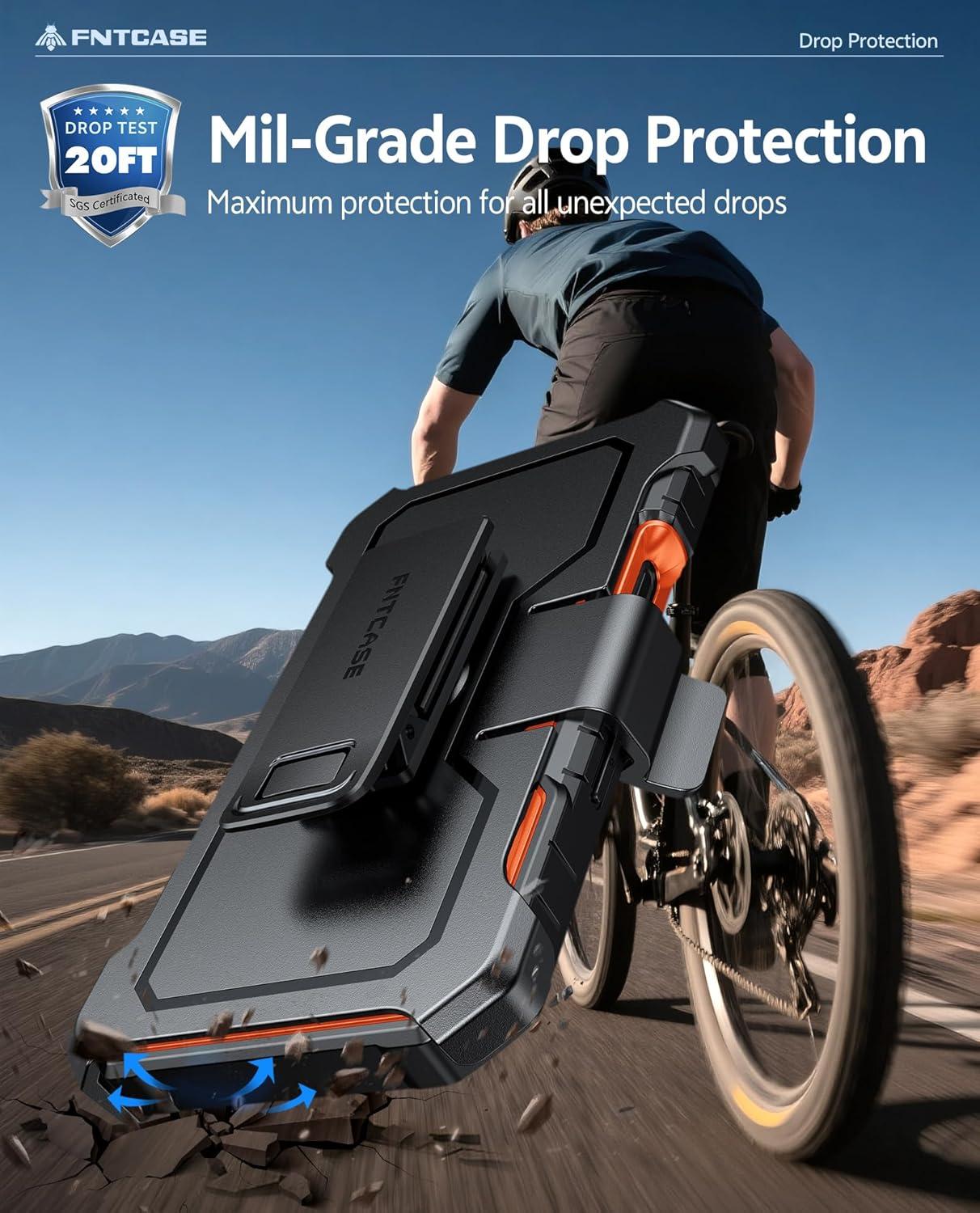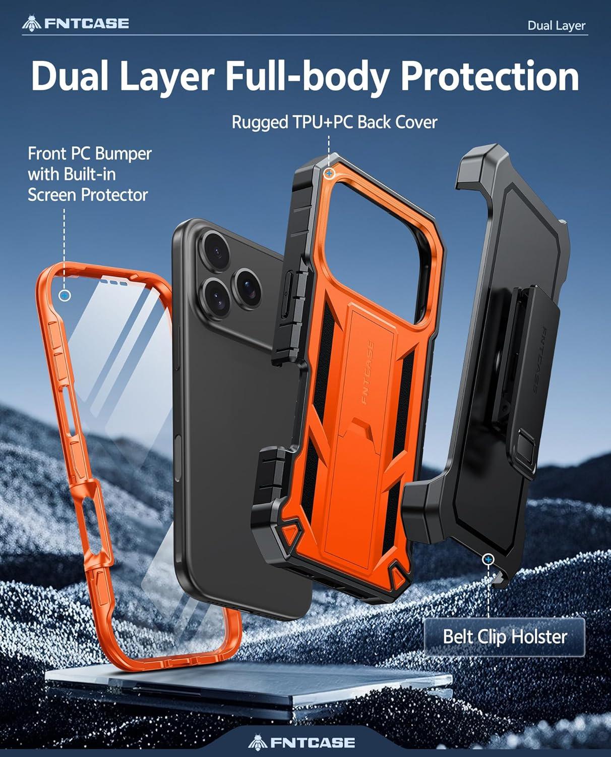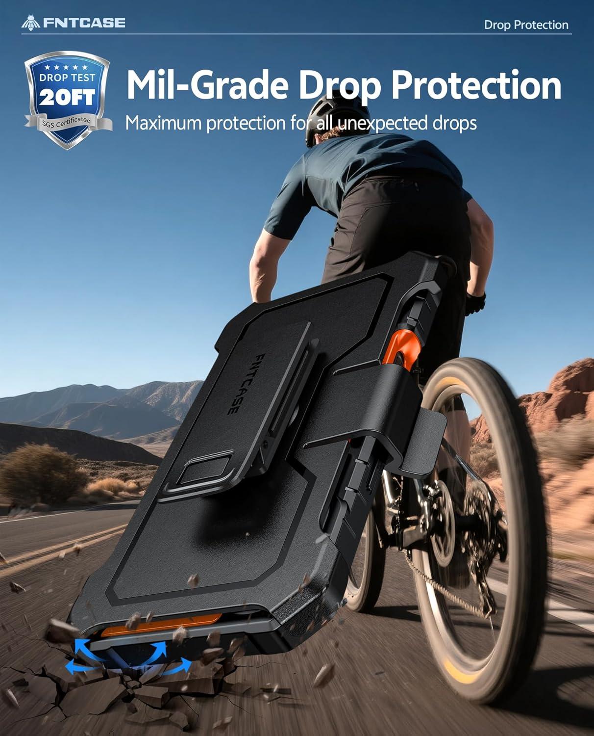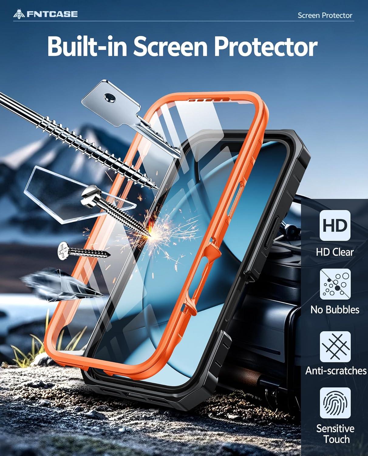 FNTCASE for iPhone 16e 2025 Case: for iPhone 16E Military Grade Rugged Phone Cover with Kickstand & Holster | Shockproof TPU Protection Bumper Matte Textured Design | Heavy Duty Protector (Black)(Orange)