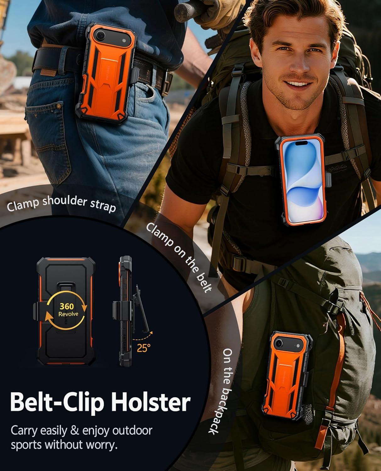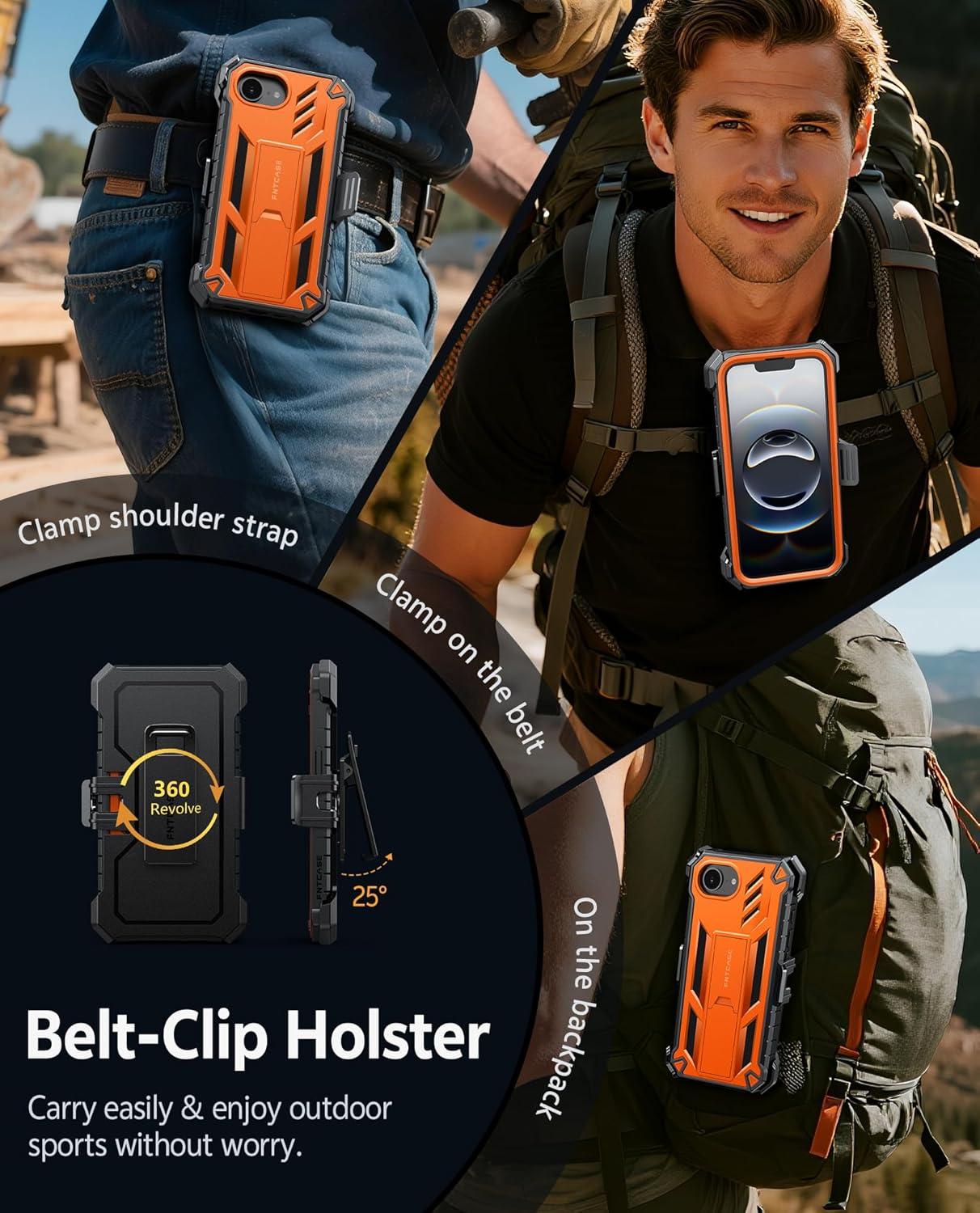360 Rotatable Belt-Clip: The iPhone SE 4/16E Case can be rotated 360,and you can rotate it to your liking.Detachable swivel belt clip holster for convenient,hands-free,pocket-free carrying.Provides all round protection for your mobile phone case in all activities,especially when working outdoors,doing sports,camping,traveling