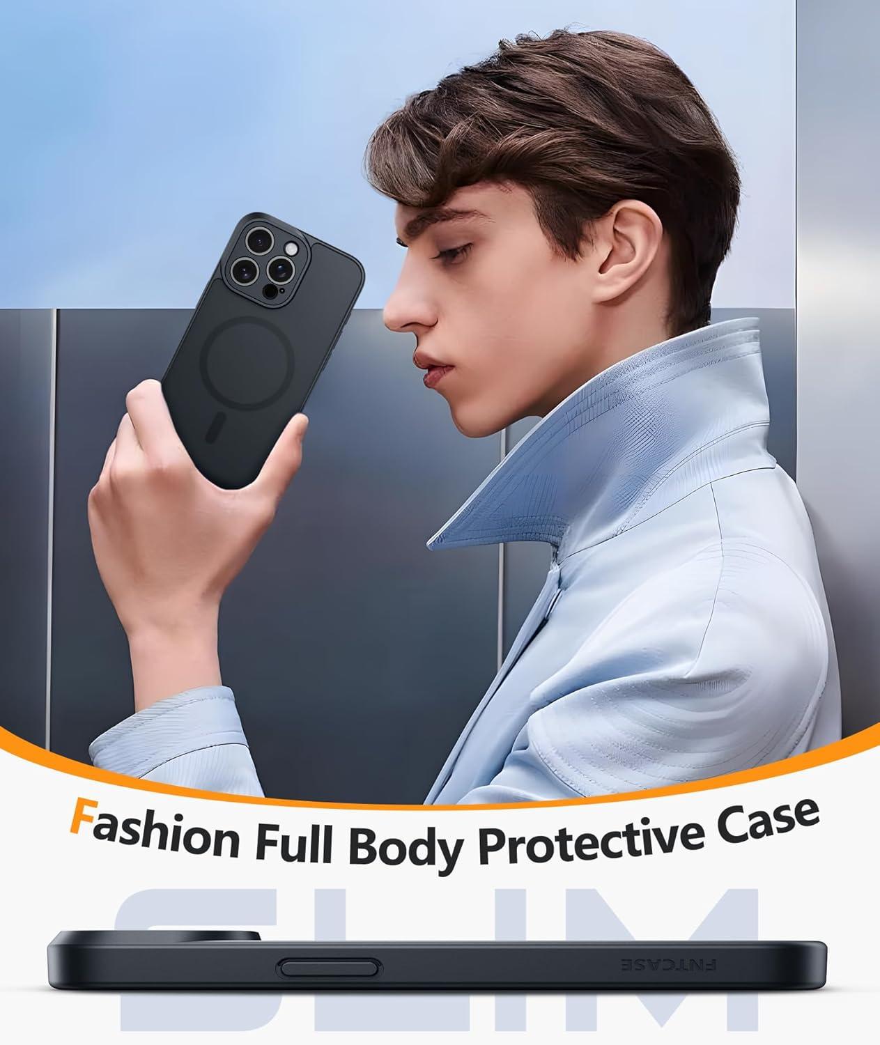 FNTCASE for iPhone 16e Phone Case: Magnetic Matte Textured Silicone Shockproof Military Grade Drop Protection Cell Phone Cover | Compatible with Magsafe | Slim Rugged Anti-Slip Protective Bumper(Black)