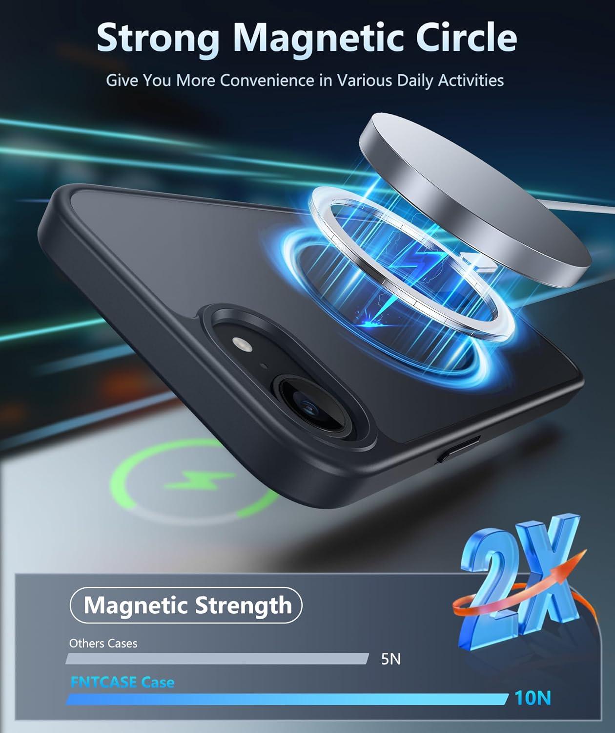 Strong Magnetic Attraction: Compatible for Magnetic chargers and other Qi Wireless chargers without signal interference. Our FNTCASE for iPhone 16E case has 38 super N52 magnets built in. Its magnetic attraction reaches 2400 gf, which is almost 7X stronger than ordinary, so it won't fall off no matter how it shakes while charging
