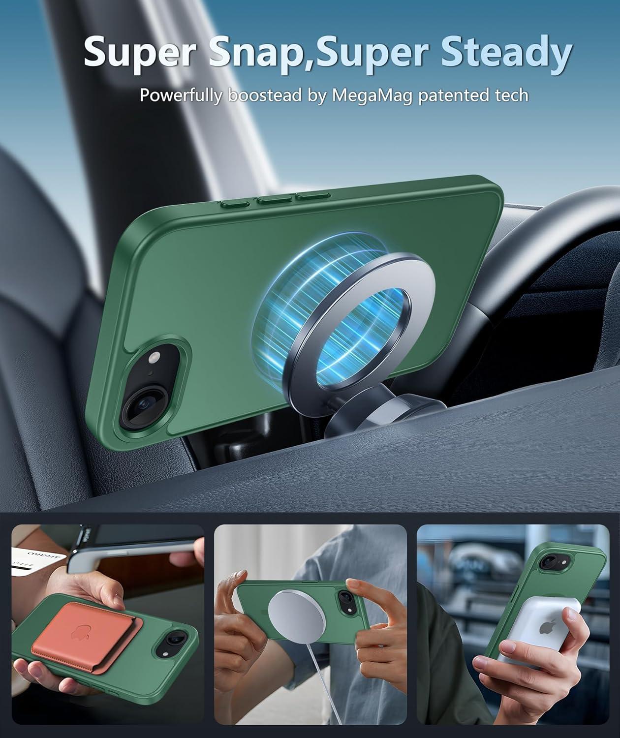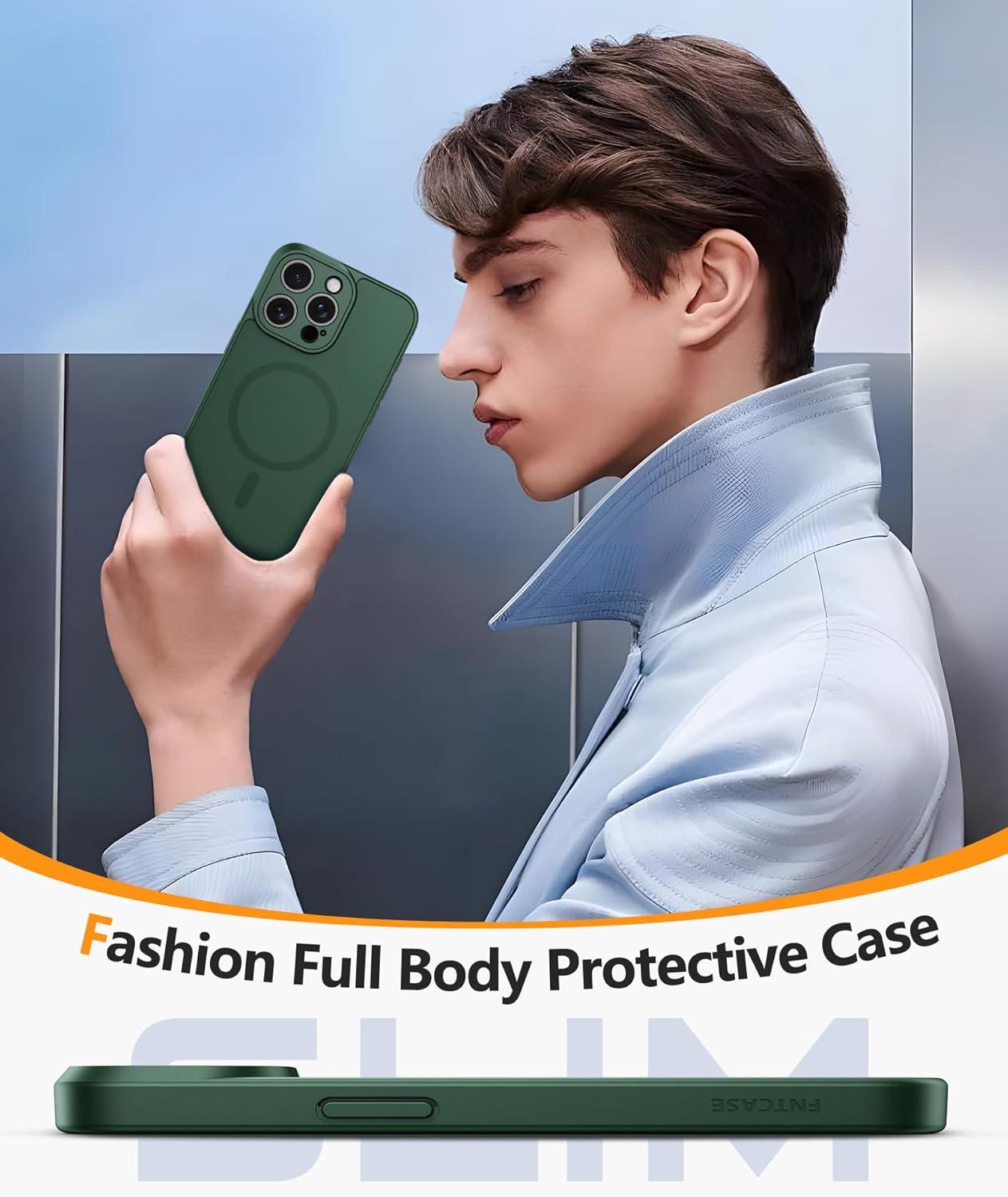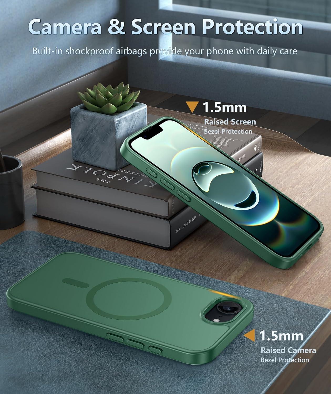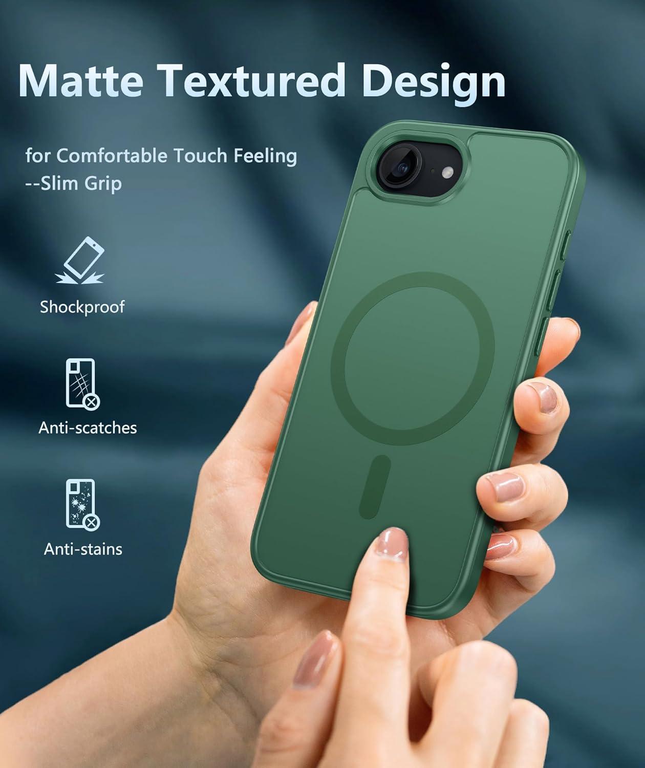 FNTCASE for iPhone 16e Phone Case: Magnetic Matte Textured Silicone Shockproof Military Grade Drop Protection Cell Phone Cover | Compatible with Magsafe | Slim Rugged Anti-Slip Protective Bumper(Green)