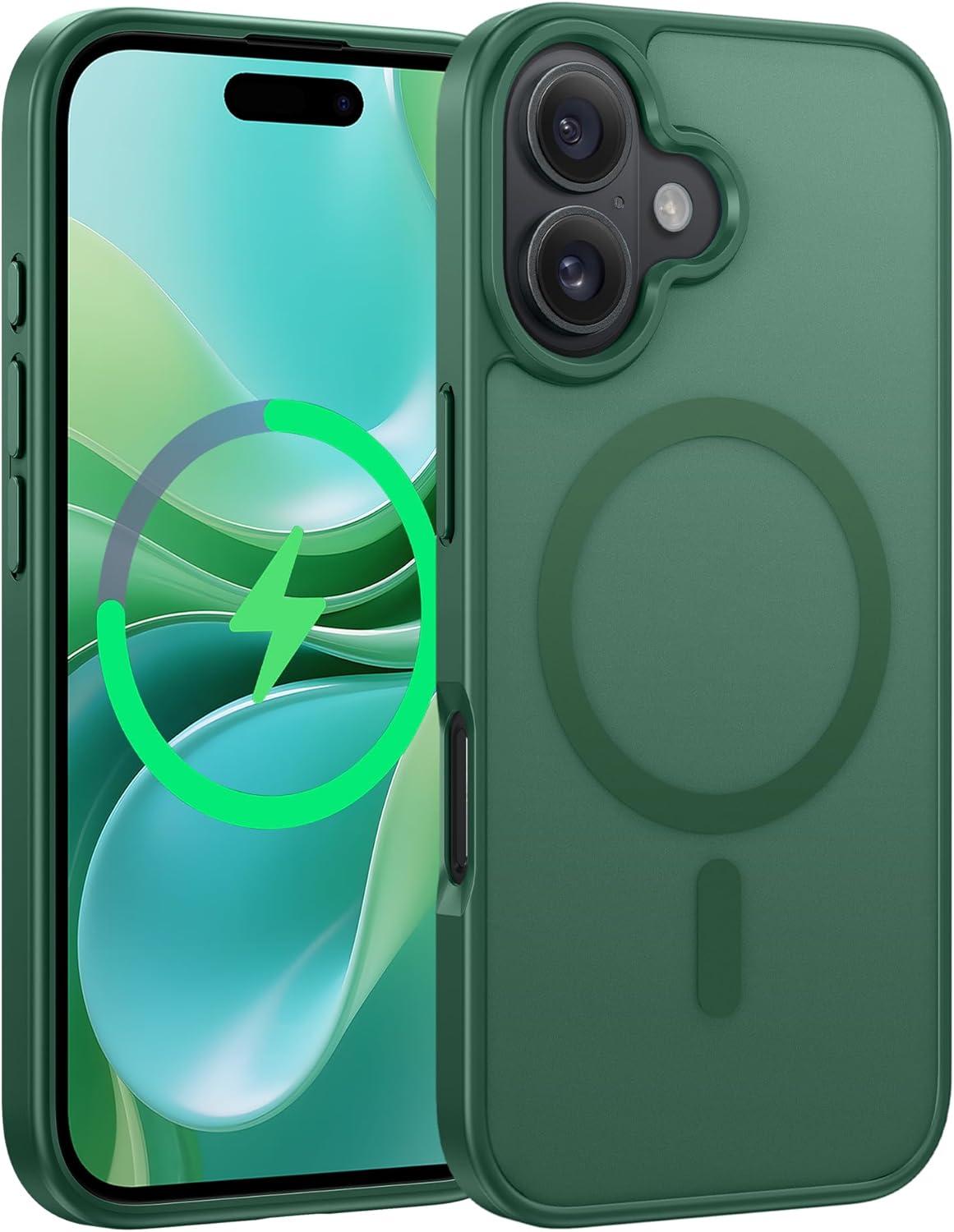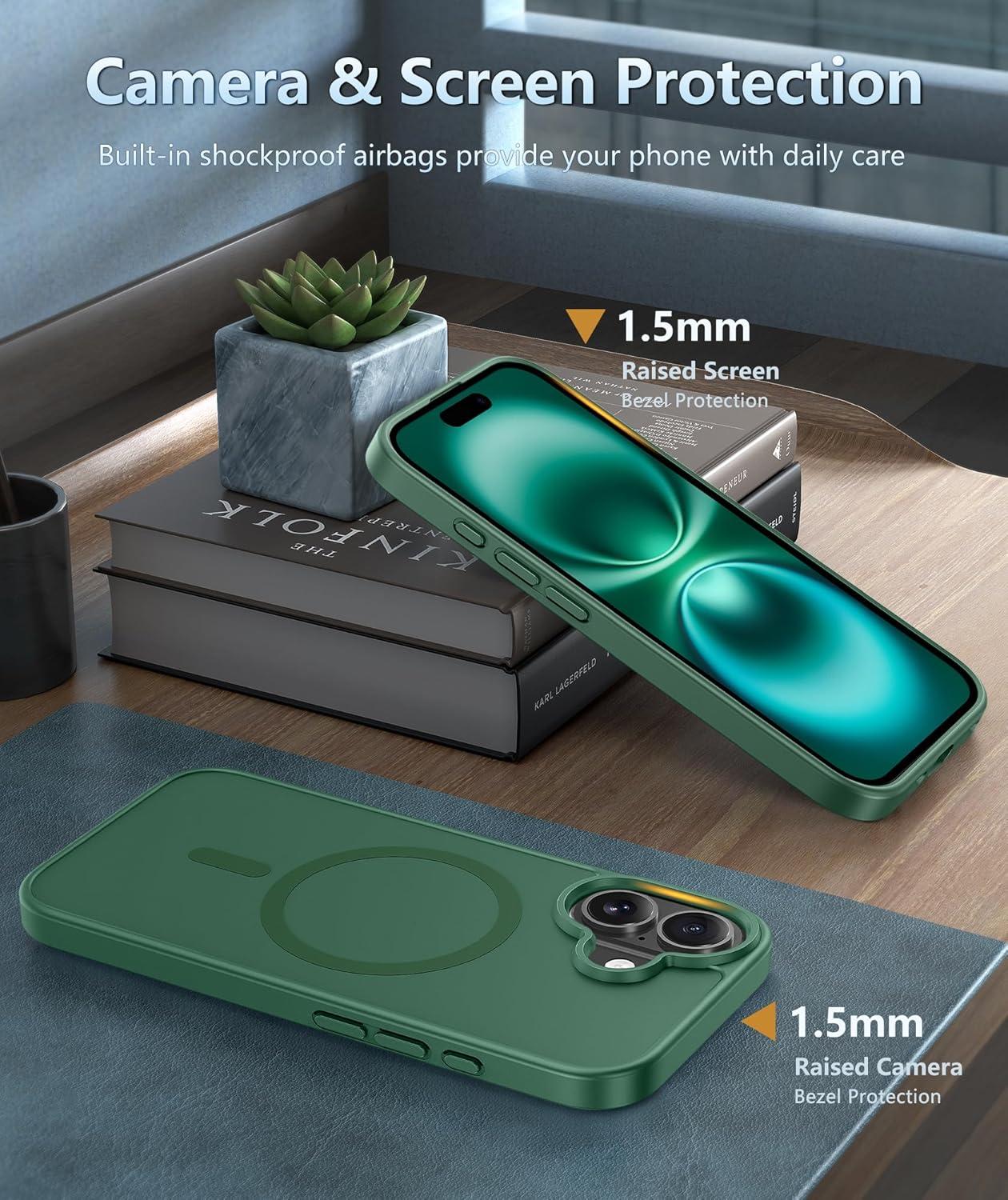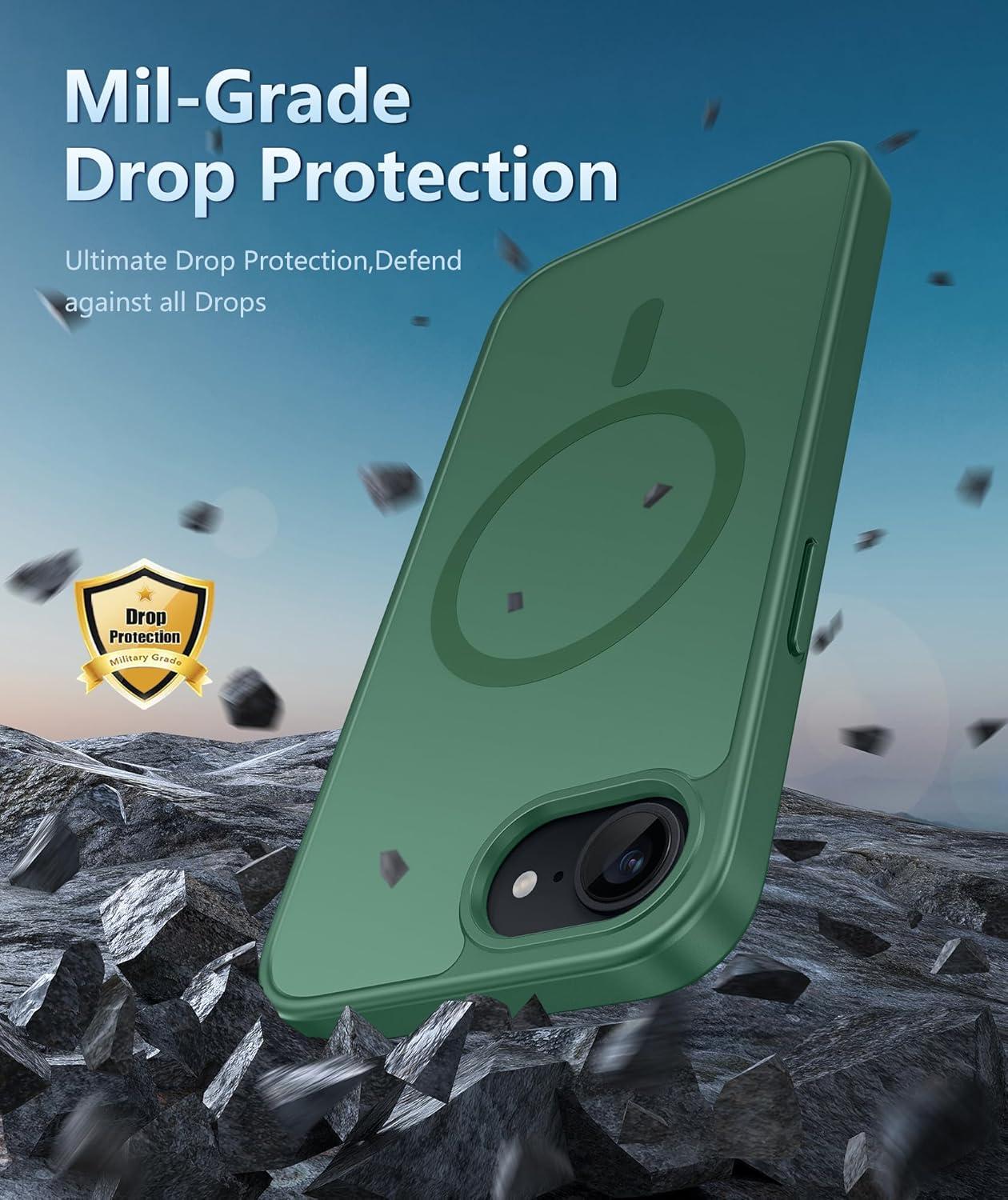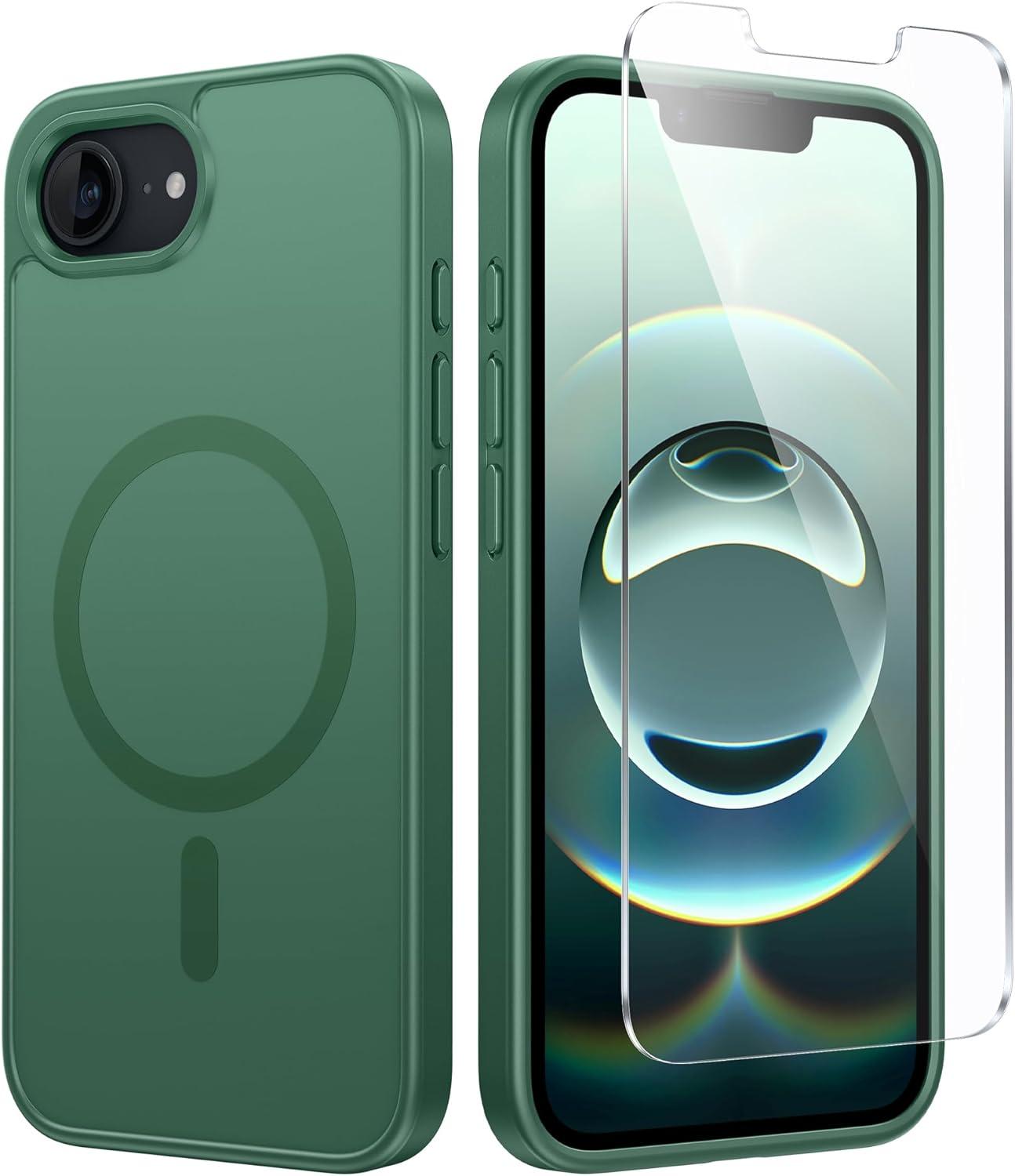FNTCASE for iPhone 16e Phone Case: Magnetic Matte Textured Silicone Shockproof Military Grade Drop Protection Cell Phone Cover | Compatible with Magsafe | Slim Rugged Anti-Slip Protective Bumper(Green)