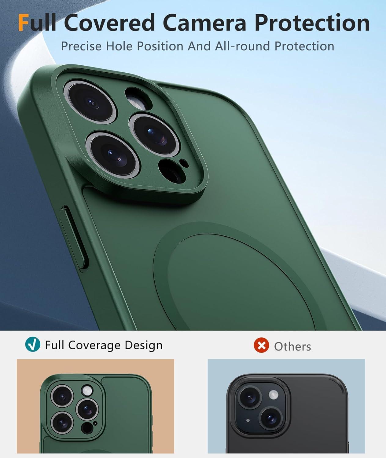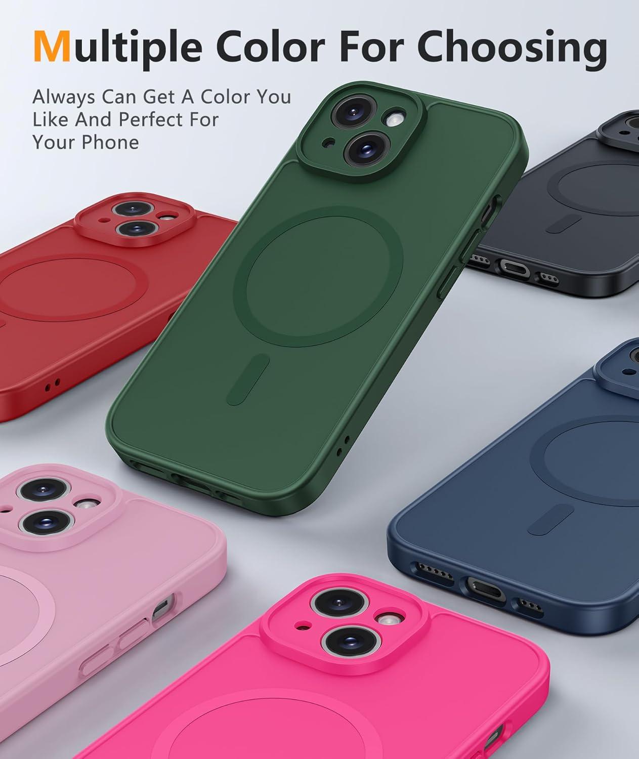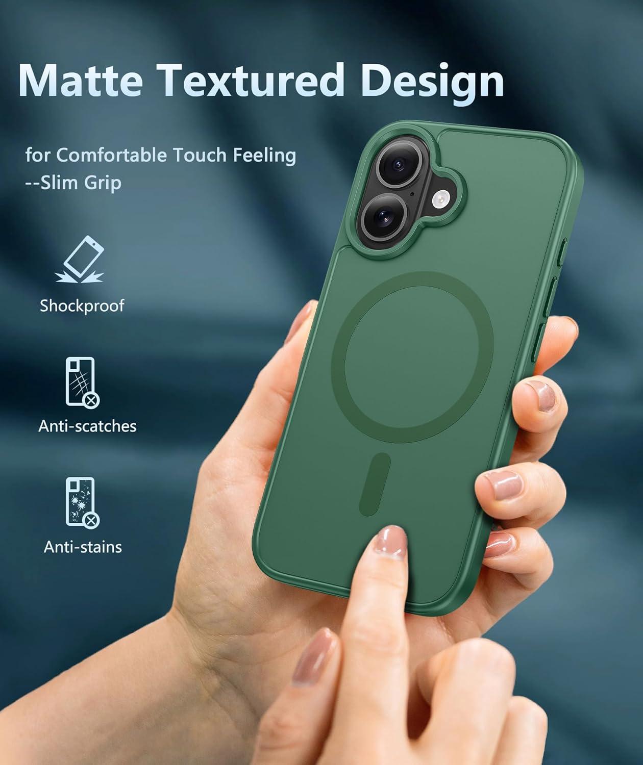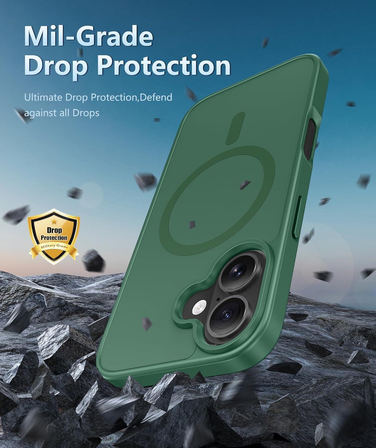FNTCASE for iPhone 16e Phone Case: Magnetic Matte Textured Silicone Shockproof Military Grade Drop Protection Cell Phone Cover | Compatible with Magsafe | Slim Rugged Anti-Slip Protective Bumper(Green)