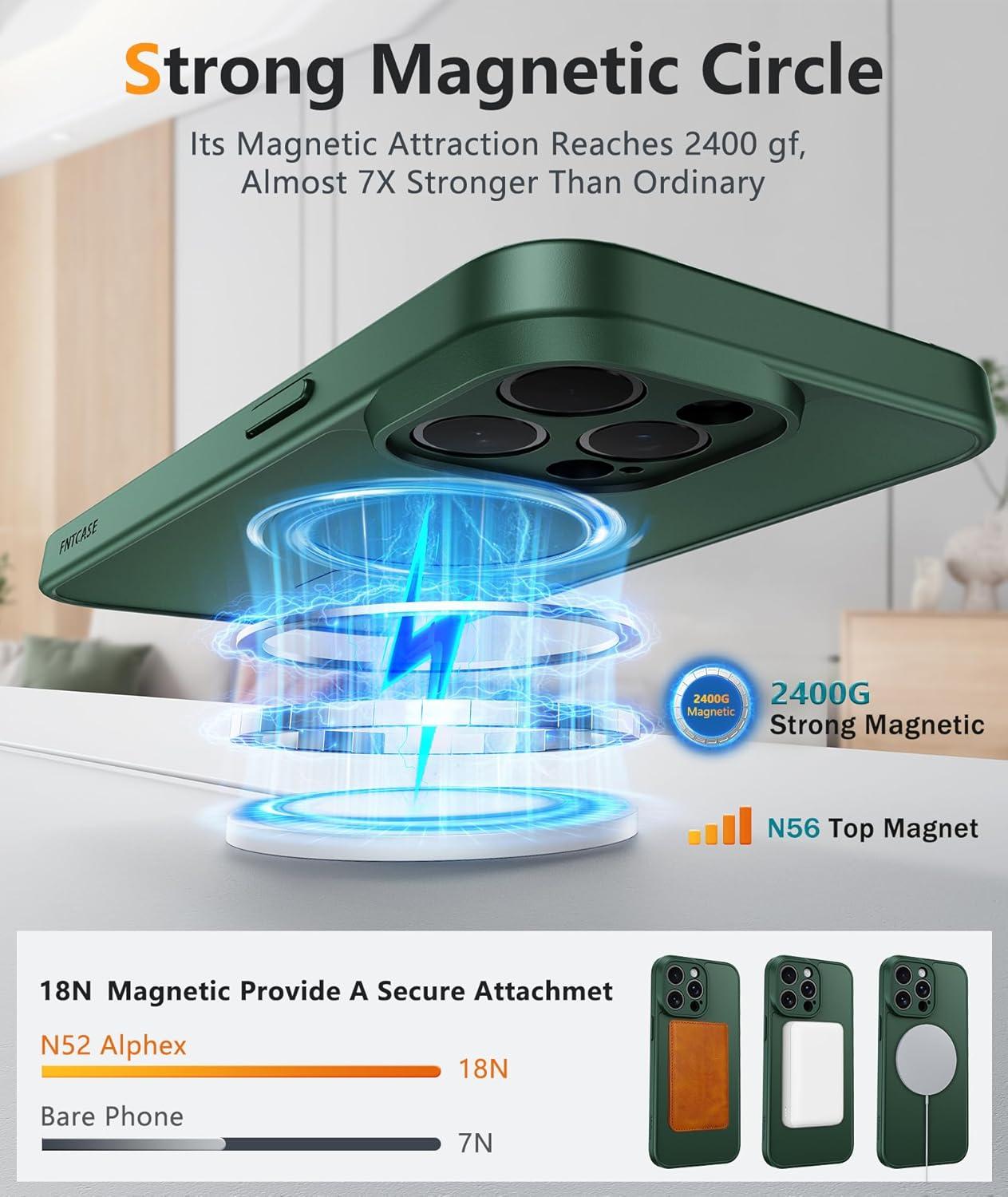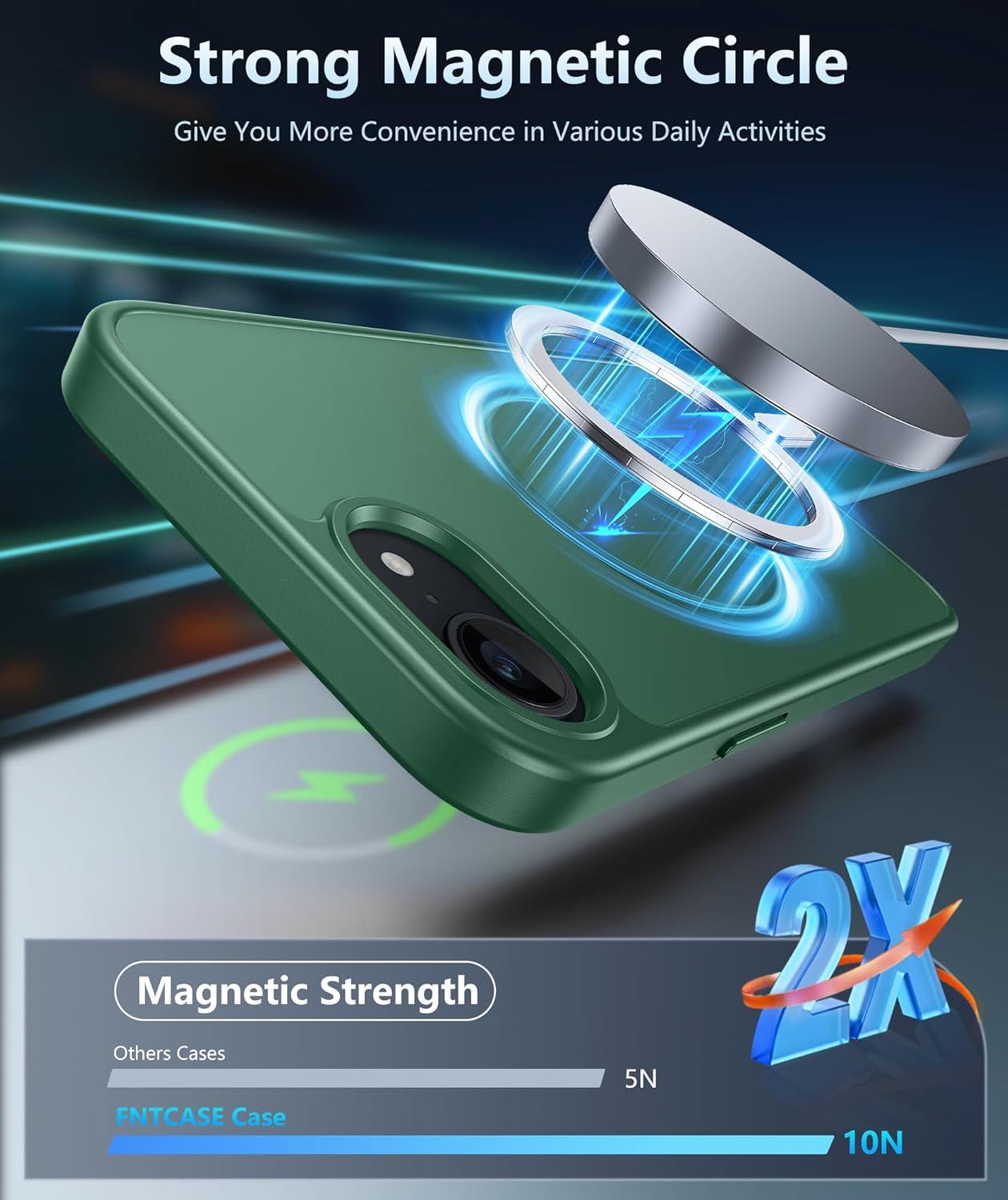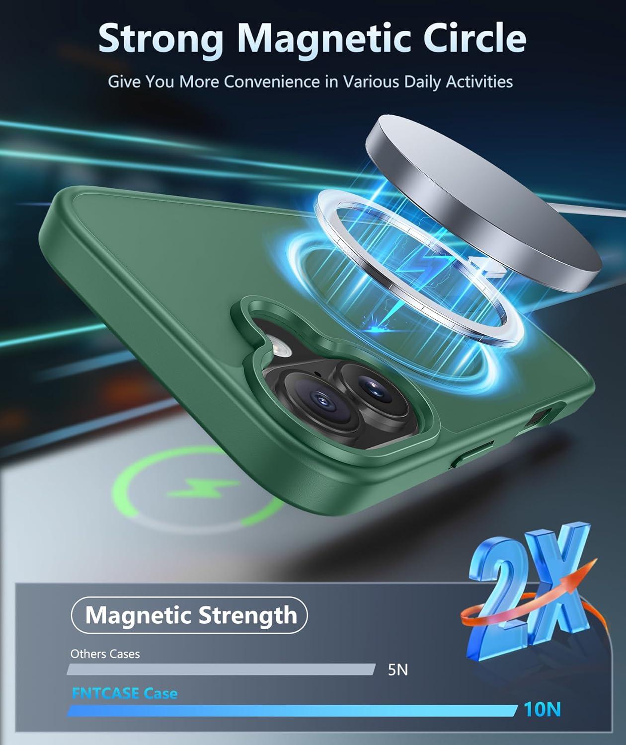 Strong Magnetic Attraction: Compatible for Magnetic chargers and other Qi Wireless chargers without signal interference. Our FNTCASE for iPhone 16E case has 38 super N52 magnets built in. Its magnetic attraction reaches 2400 gf, which is almost 7X stronger than ordinary, so it won't fall off no matter how it shakes while charging
