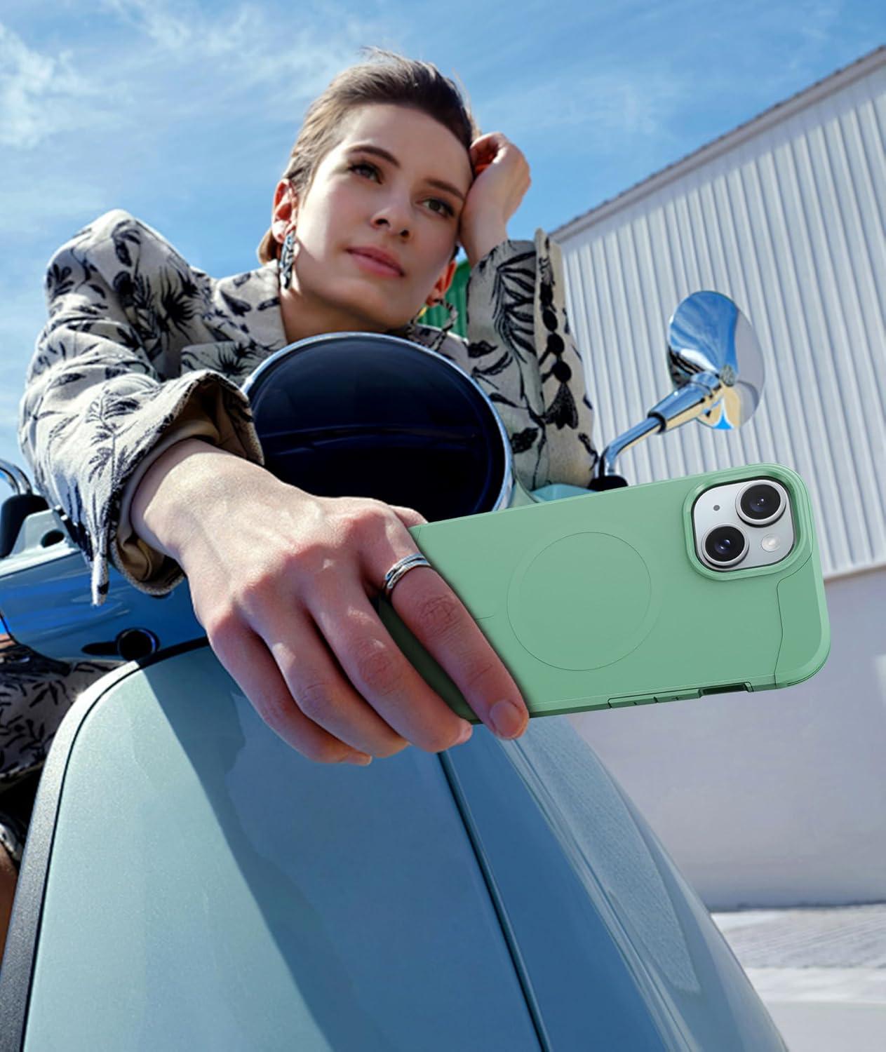 FNTCASE for iPhone 16e Phone Case: Magnetic Matte Textured Silicone Shockproof Military Grade Drop Protection Cell Phone Cover | Compatible with Magsafe | Slim Rugged Anti-Slip Protective Bumper(Matte Green)