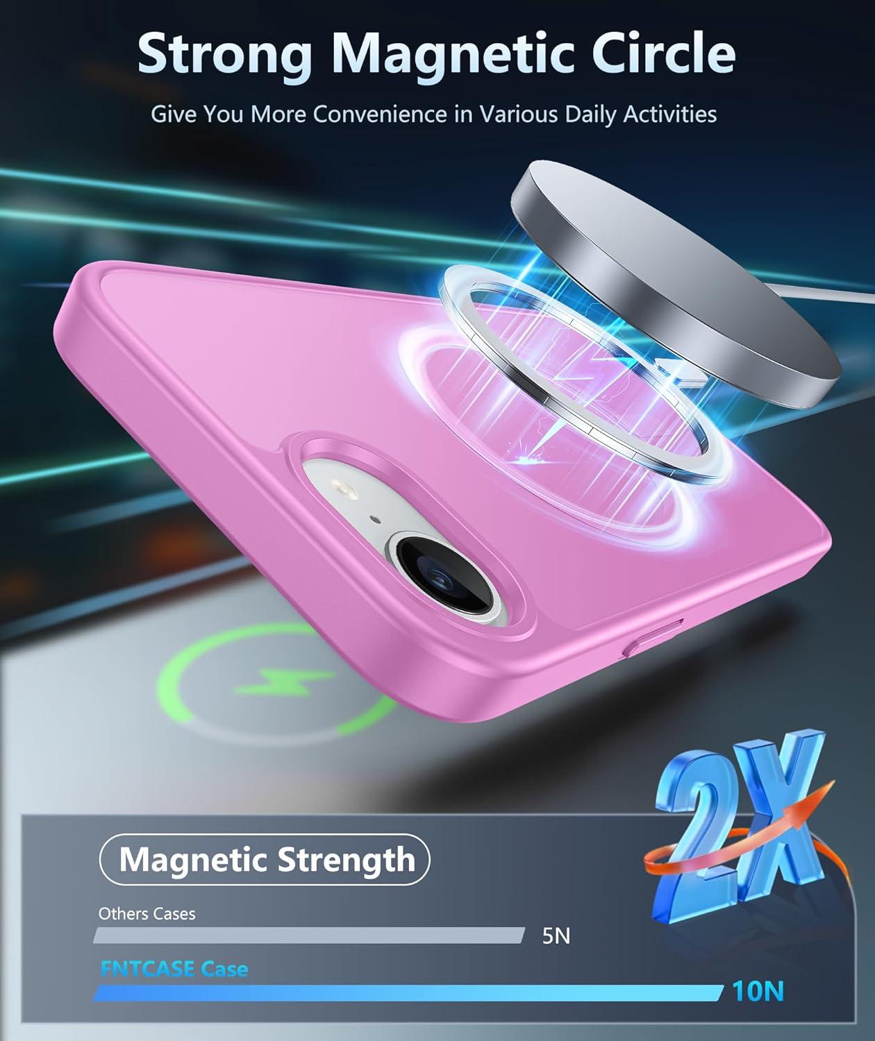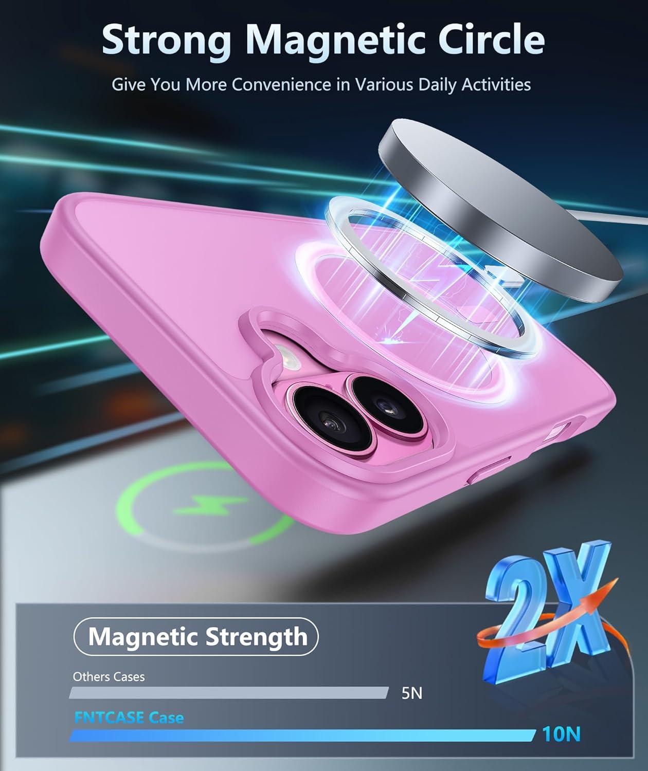 Strong Magnetic Attraction: Compatible for Magnetic chargers and other Qi Wireless chargers without signal interference. Our FNTCASE for iPhone 16E case has 38 super N52 magnets built in. Its magnetic attraction reaches 2400 gf, which is almost 7X stronger than ordinary, so it won't fall off no matter how it shakes while charging