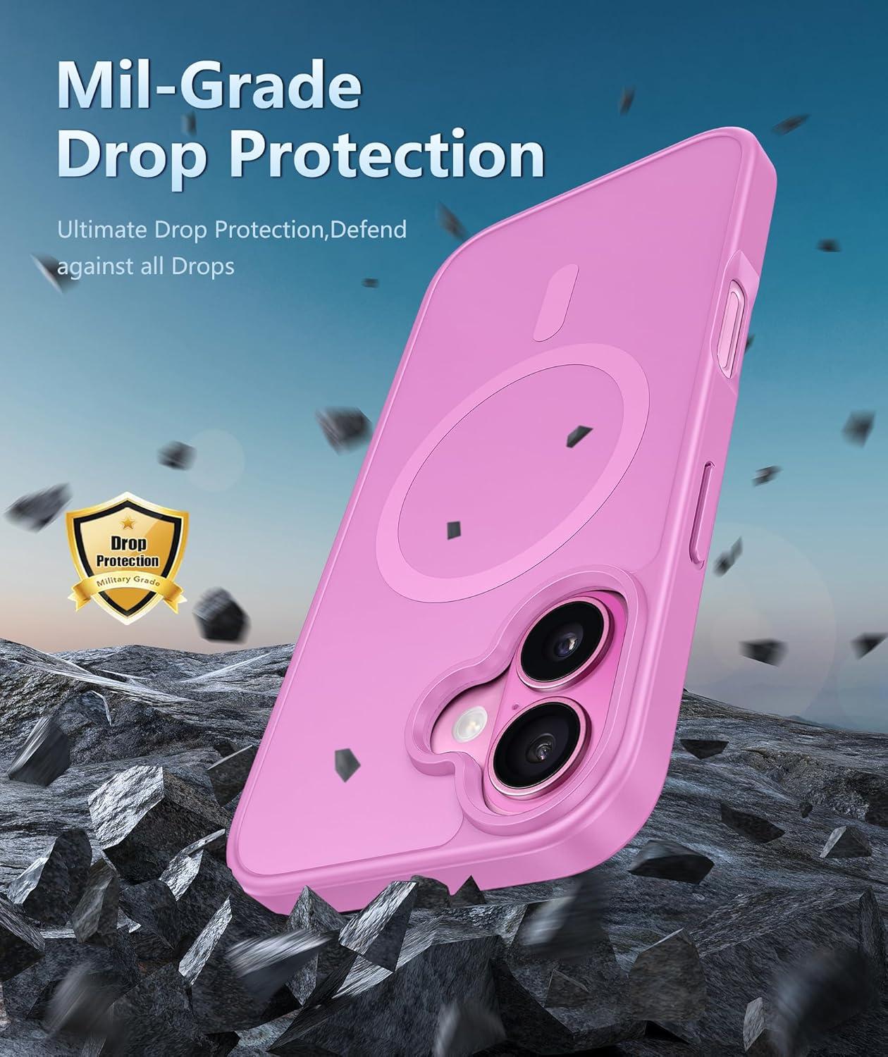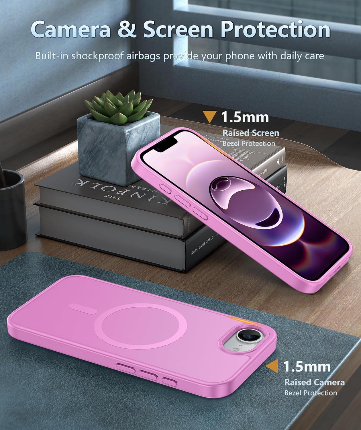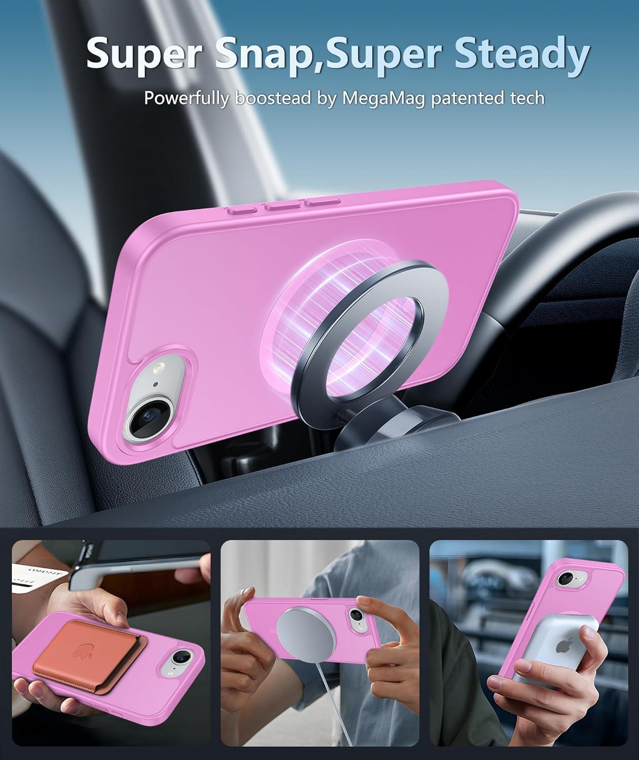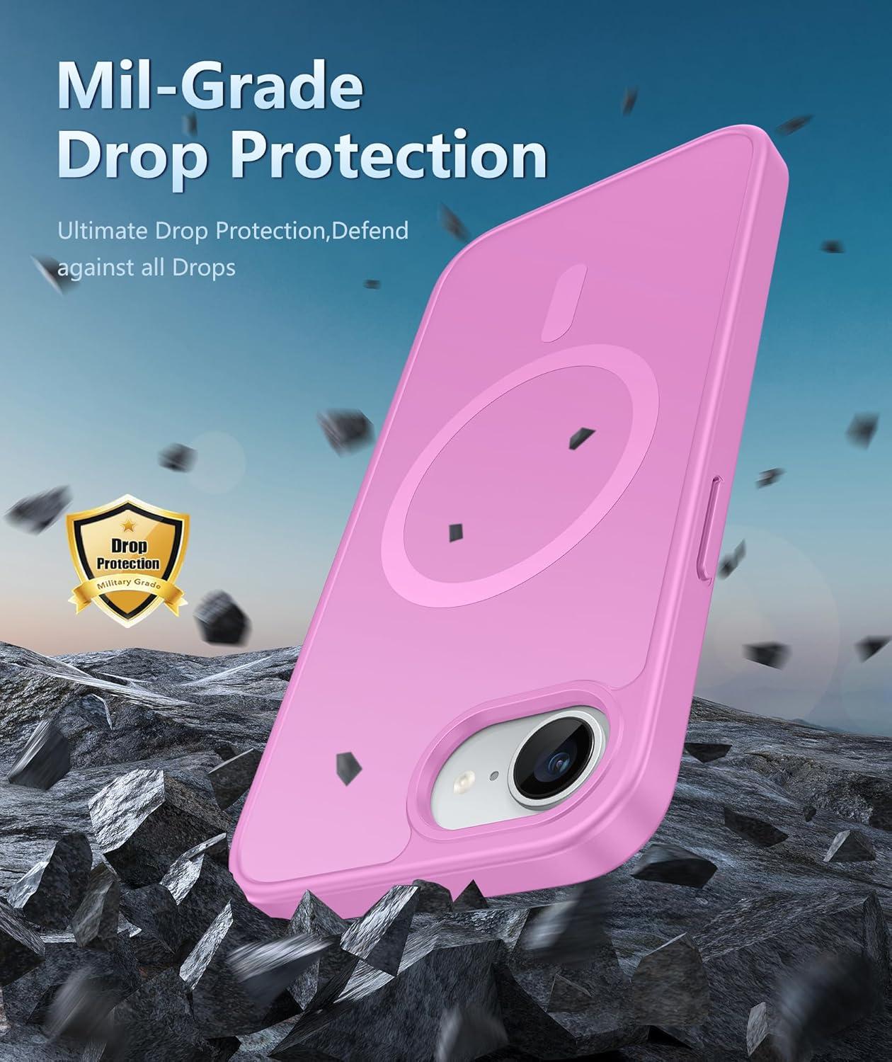 FNTCASE for iPhone 16e Phone Case: Magnetic Matte Textured Silicone Shockproof Military Grade Drop Protection Cell Phone Cover | Compatible with Magsafe | Slim Rugged Anti-Slip Protective Bumper(Pink)