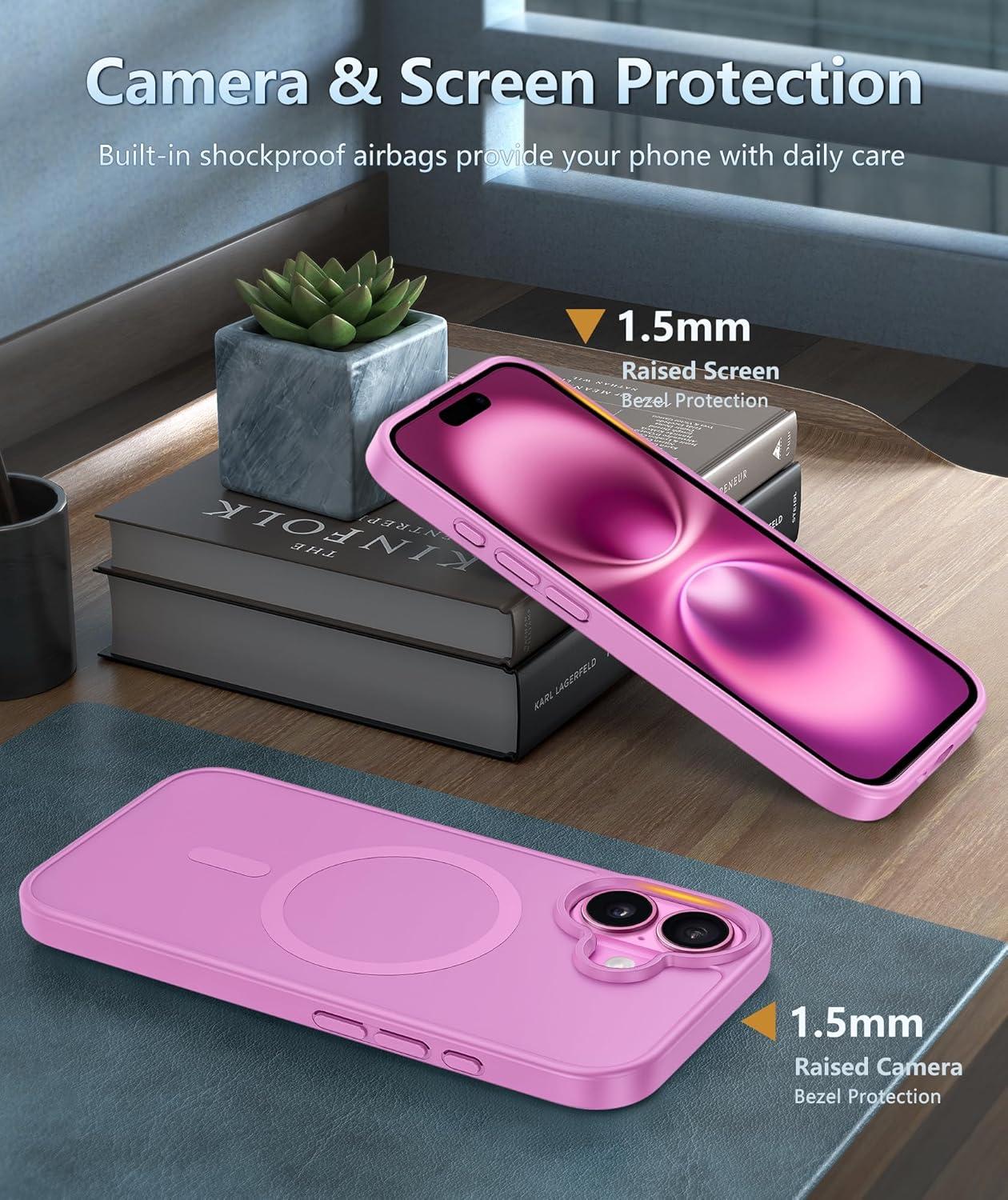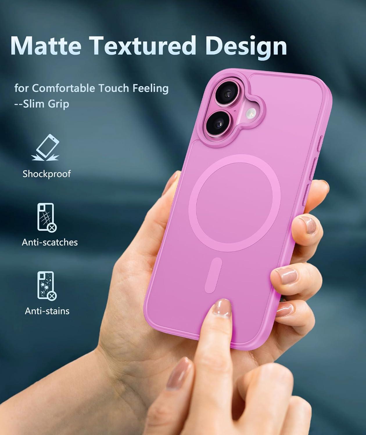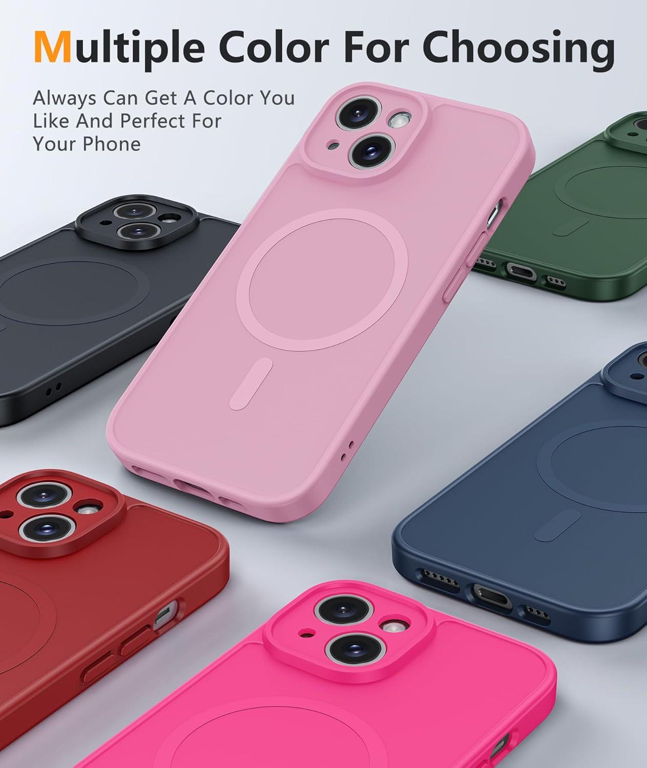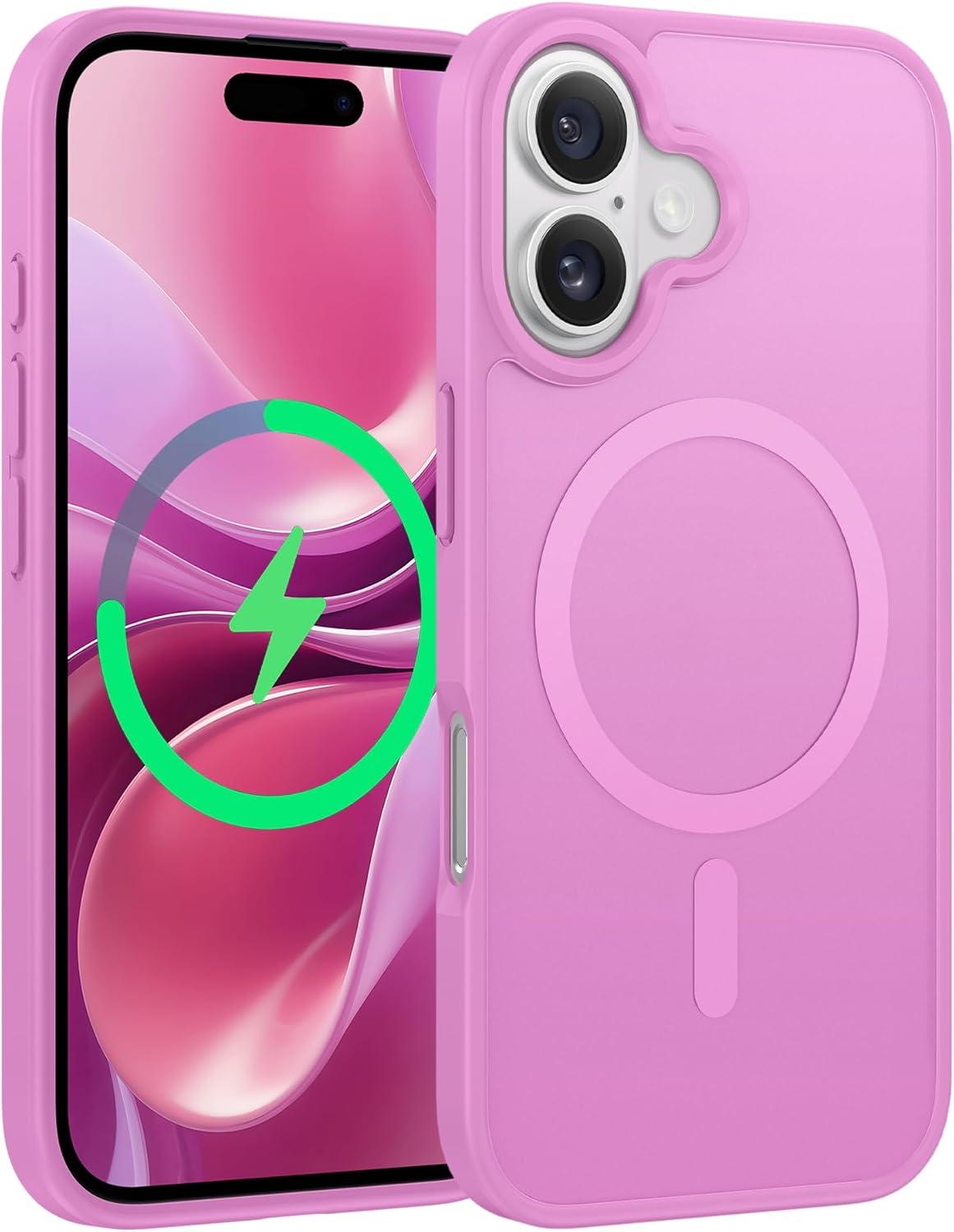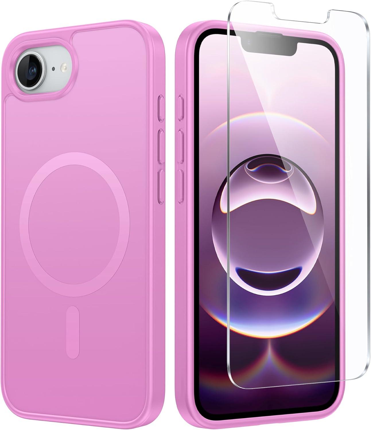 FNTCASE for iPhone 16e Phone Case: Magnetic Matte Textured Silicone Shockproof Military Grade Drop Protection Cell Phone Cover | Compatible with Magsafe | Slim Rugged Anti-Slip Protective Bumper(Pink)