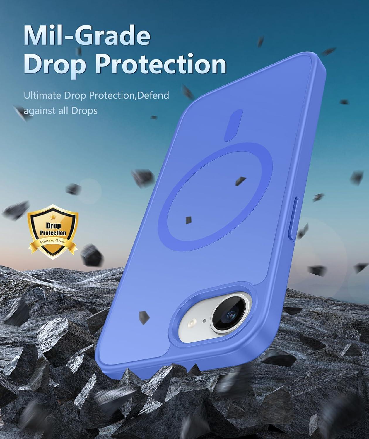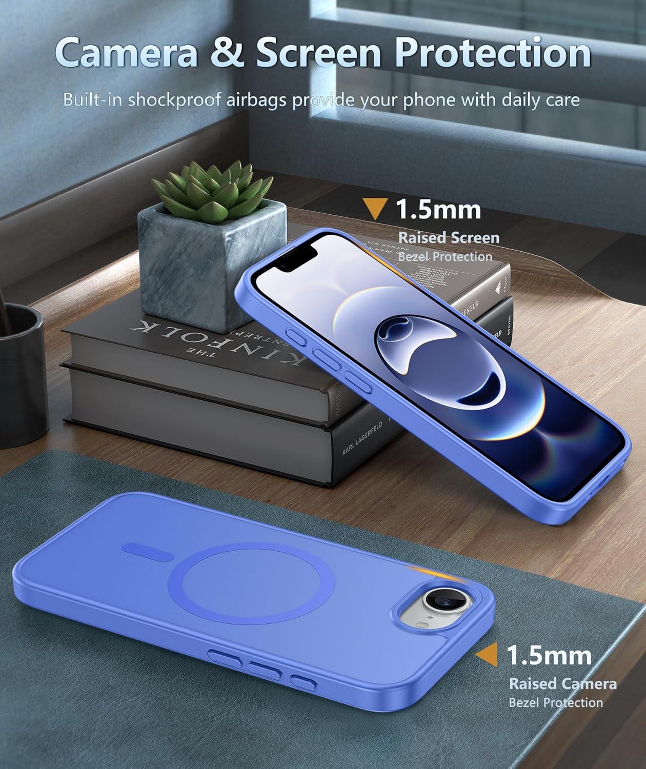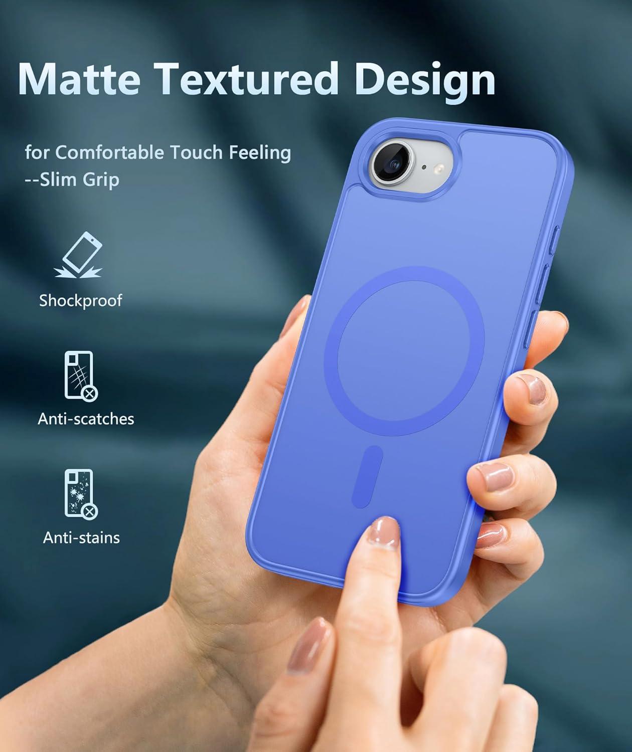 FNTCASE for iPhone 16e Phone Case: Magnetic Matte Textured Silicone Shockproof Military Grade Drop Protection Cell Phone Cover | Compatible with Magsafe | Slim Rugged Anti-Slip Protective Bumper(Ultramarine)