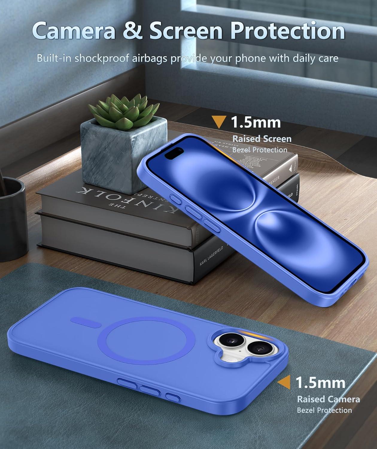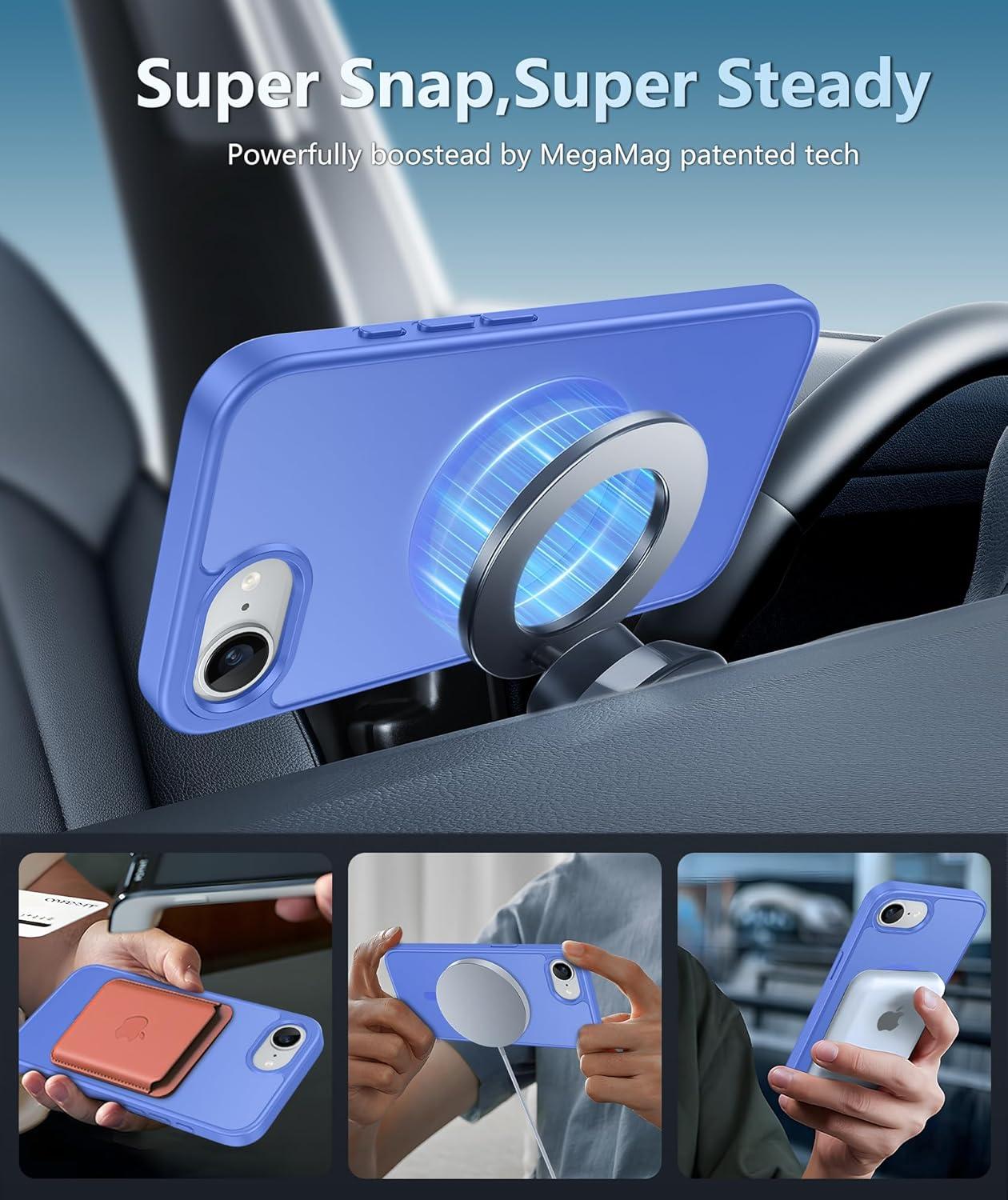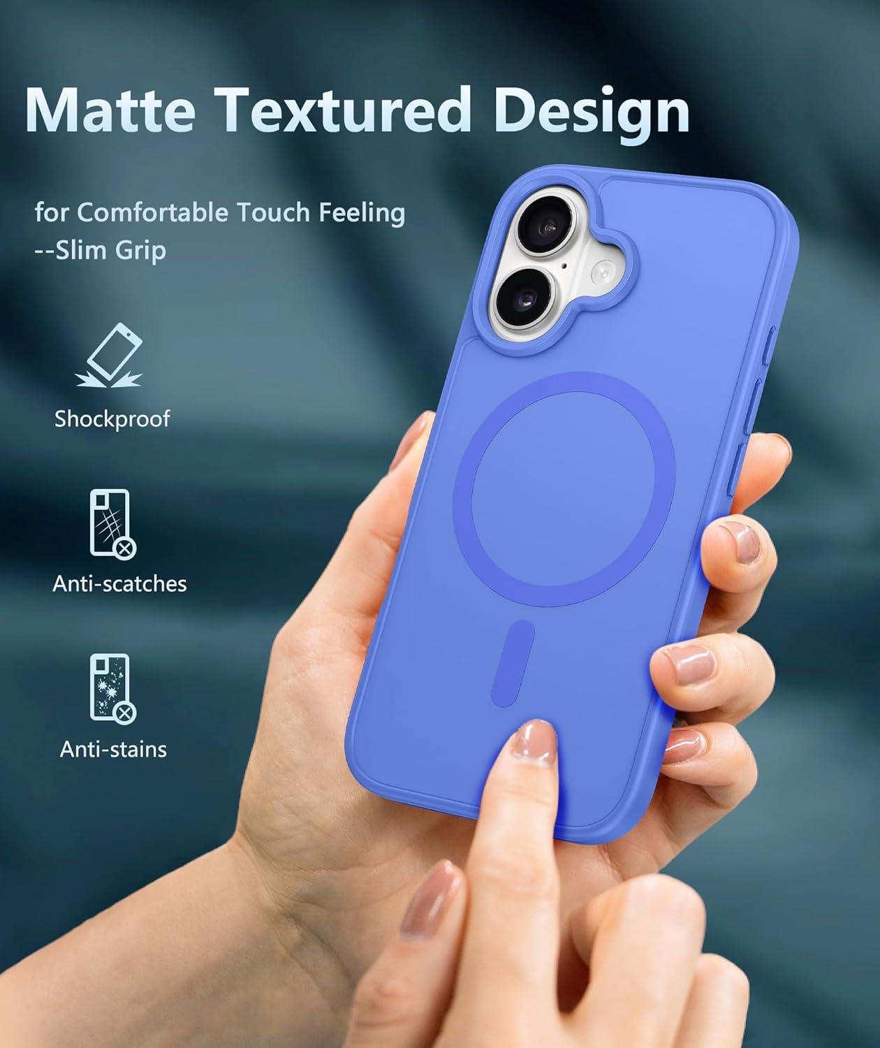 FNTCASE for iPhone 16e Phone Case: Magnetic Matte Textured Silicone Shockproof Military Grade Drop Protection Cell Phone Cover | Compatible with Magsafe | Slim Rugged Anti-Slip Protective Bumper(Ultramarine)