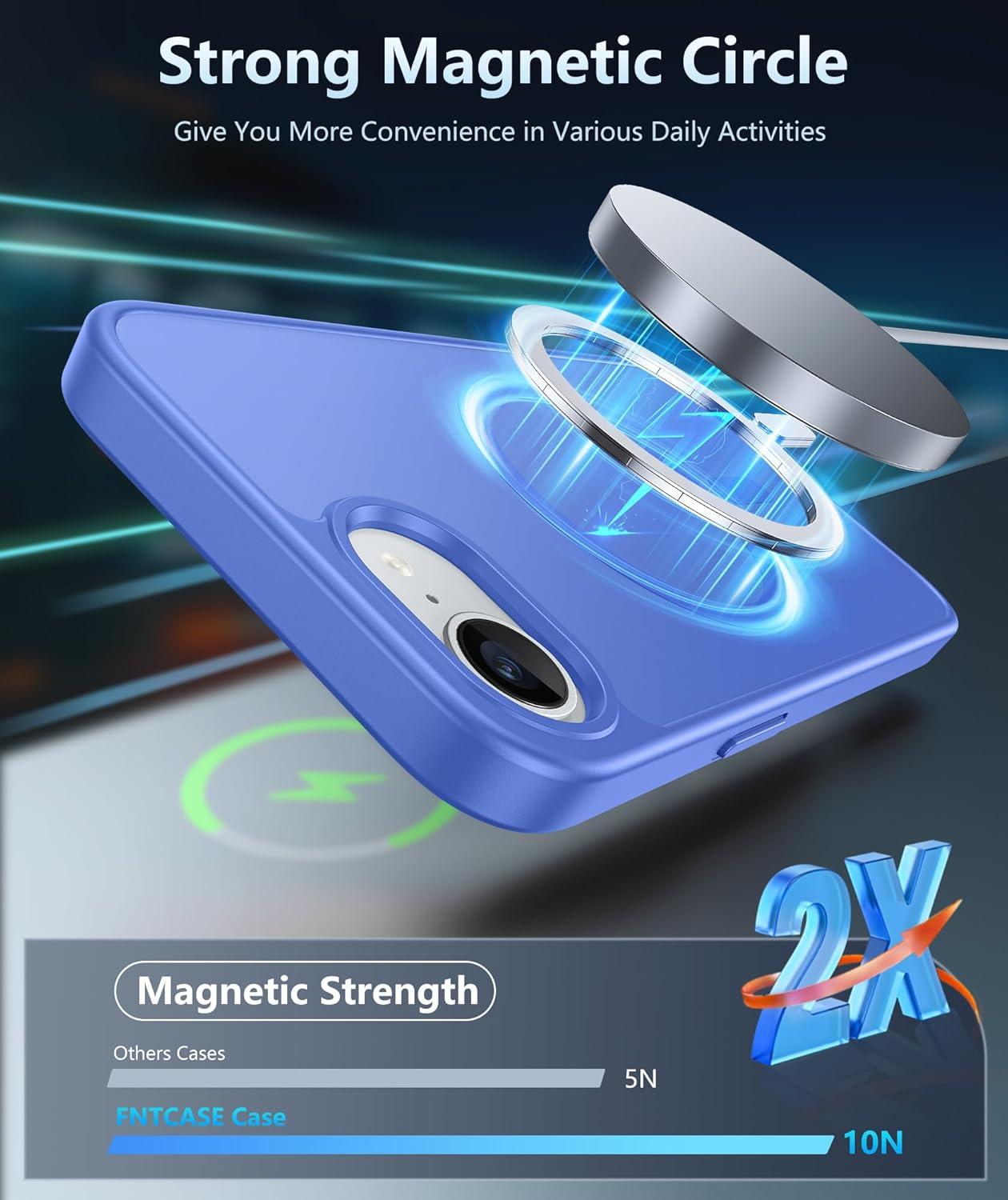 Strong Magnetic Attraction: Compatible for Magnetic chargers and other Qi Wireless chargers without signal interference. Our FNTCASE for iPhone 16E case has 38 super N52 magnets built in. Its magnetic attraction reaches 2400 gf, which is almost 7X stronger than ordinary, so it won't fall off no matter how it shakes while charging